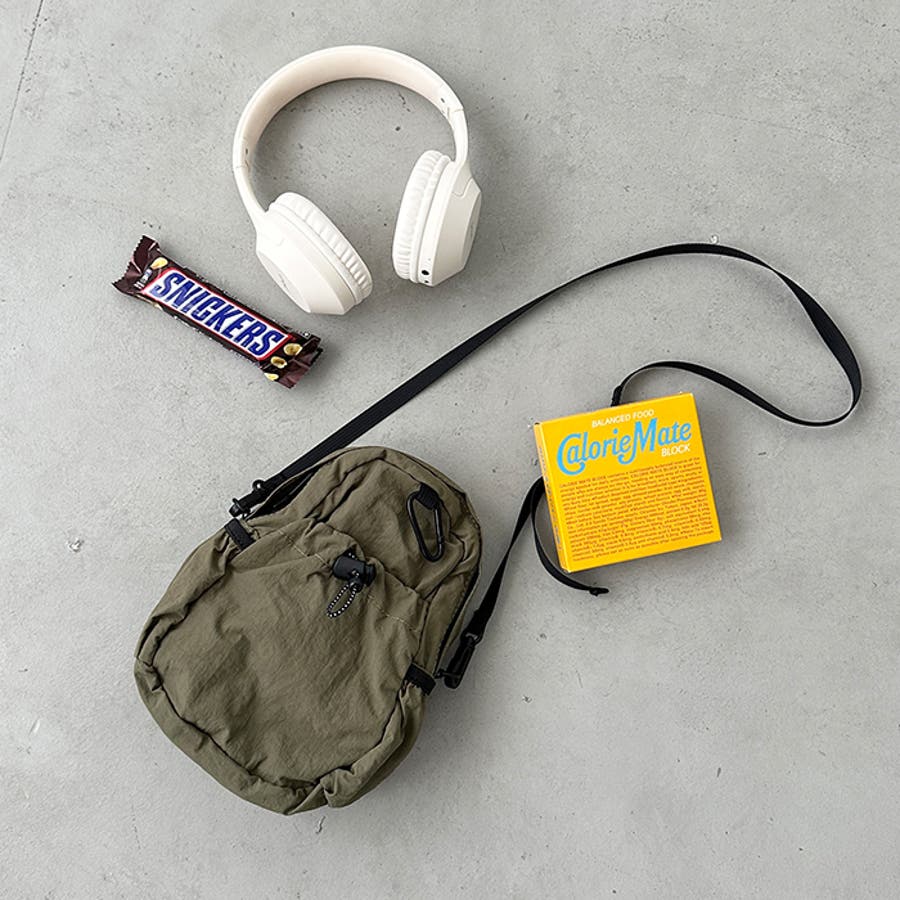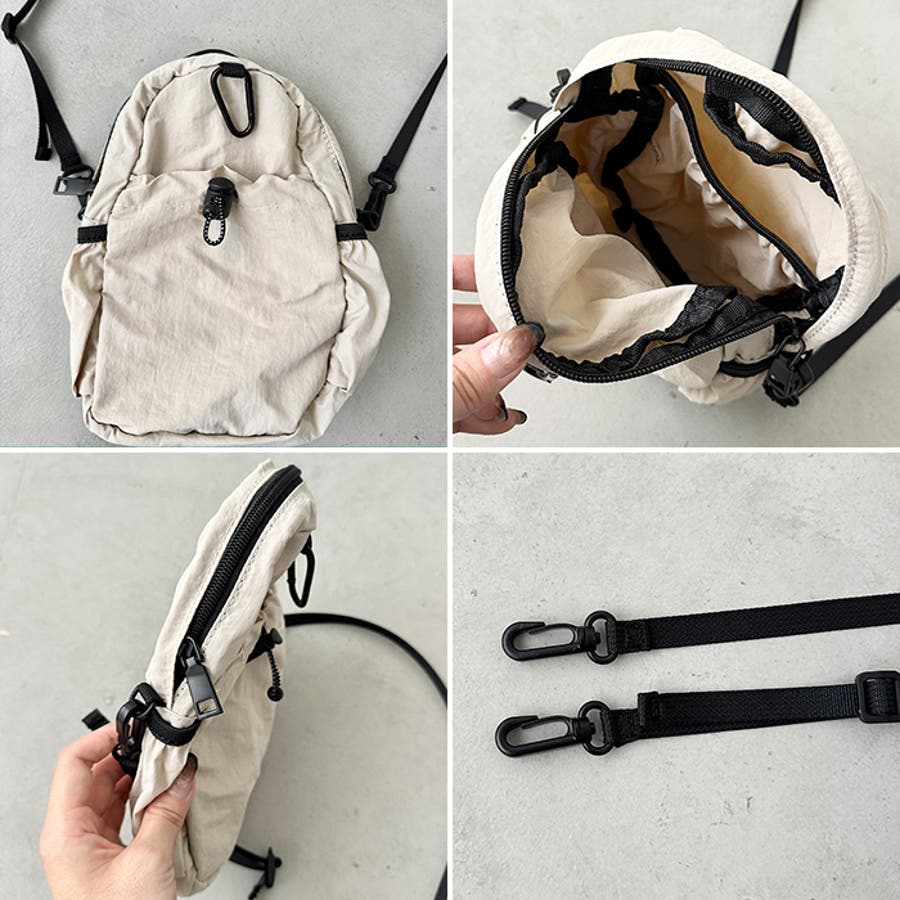 ショルダー紐はアジャスター付きで長さ調節が可能なので、肩掛けも斜め掛けもできます。