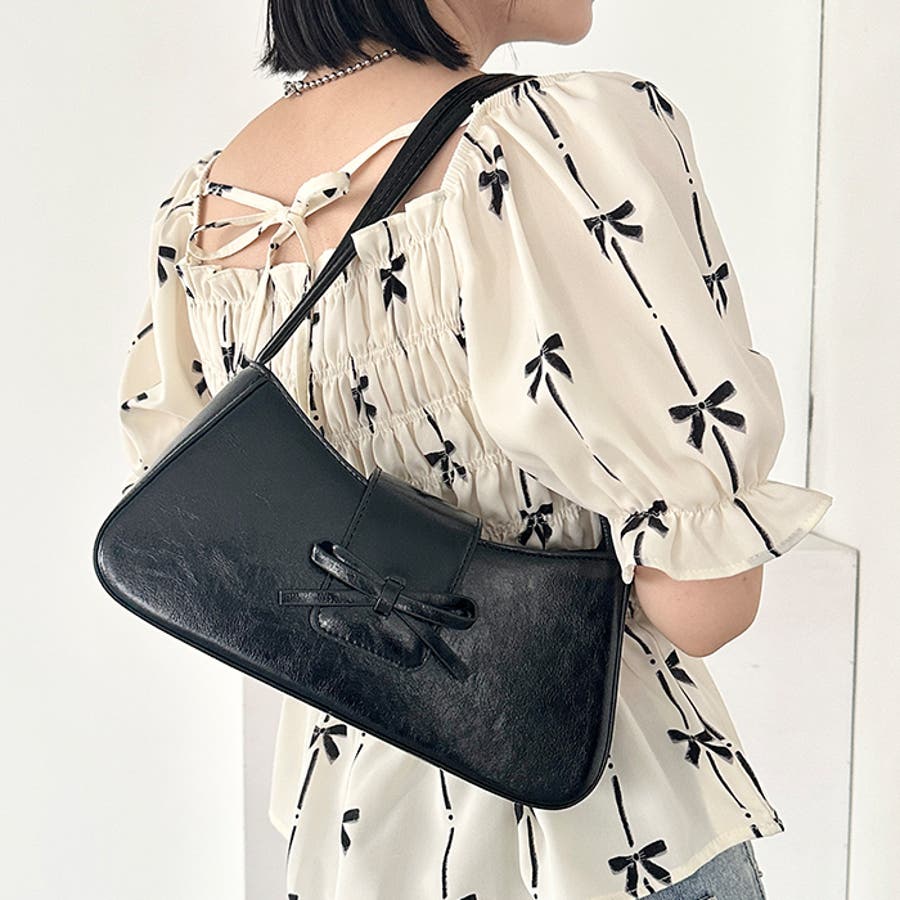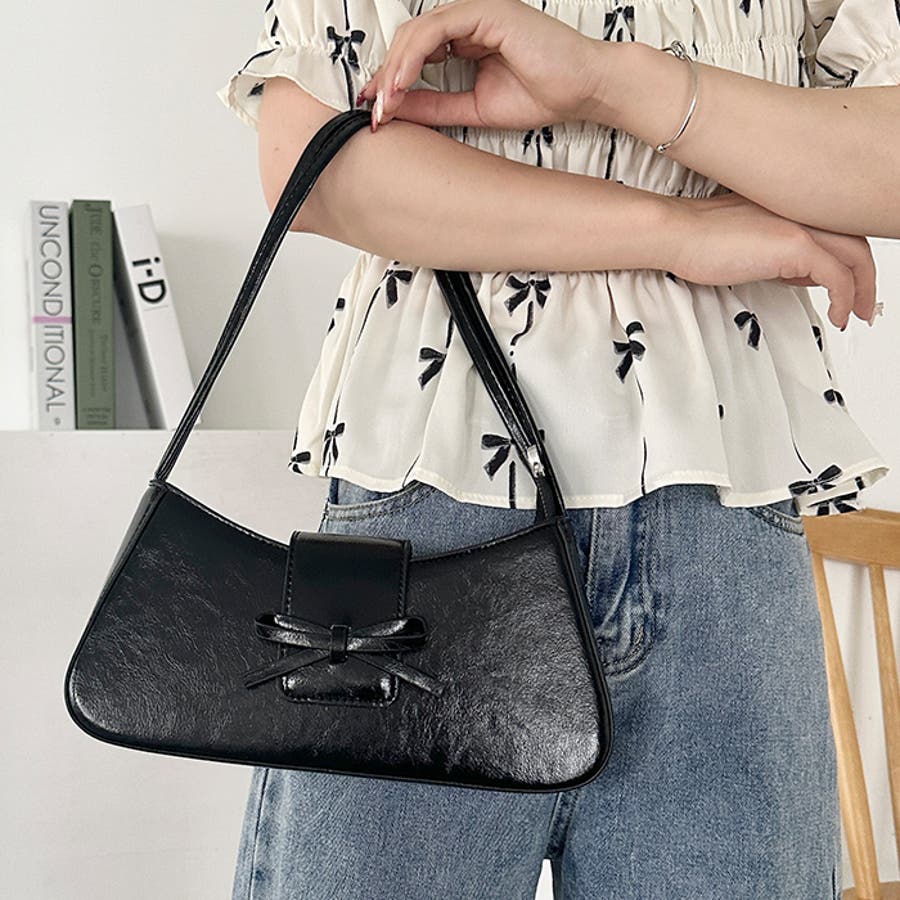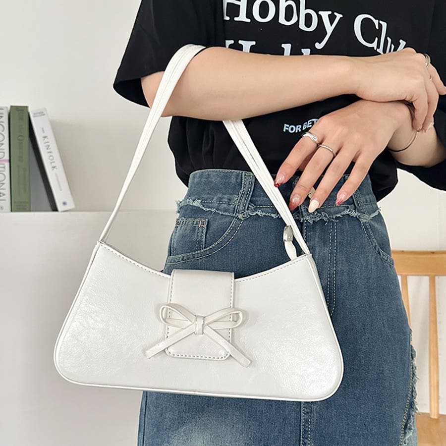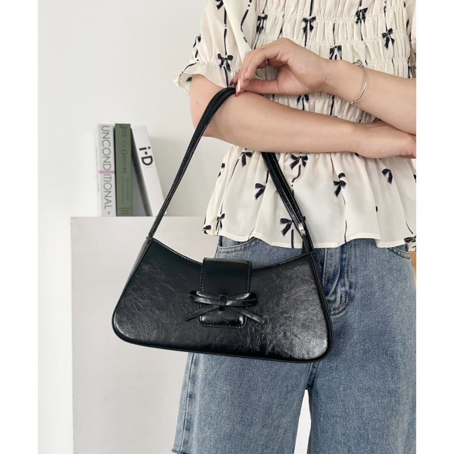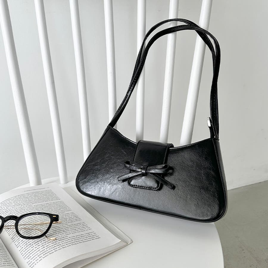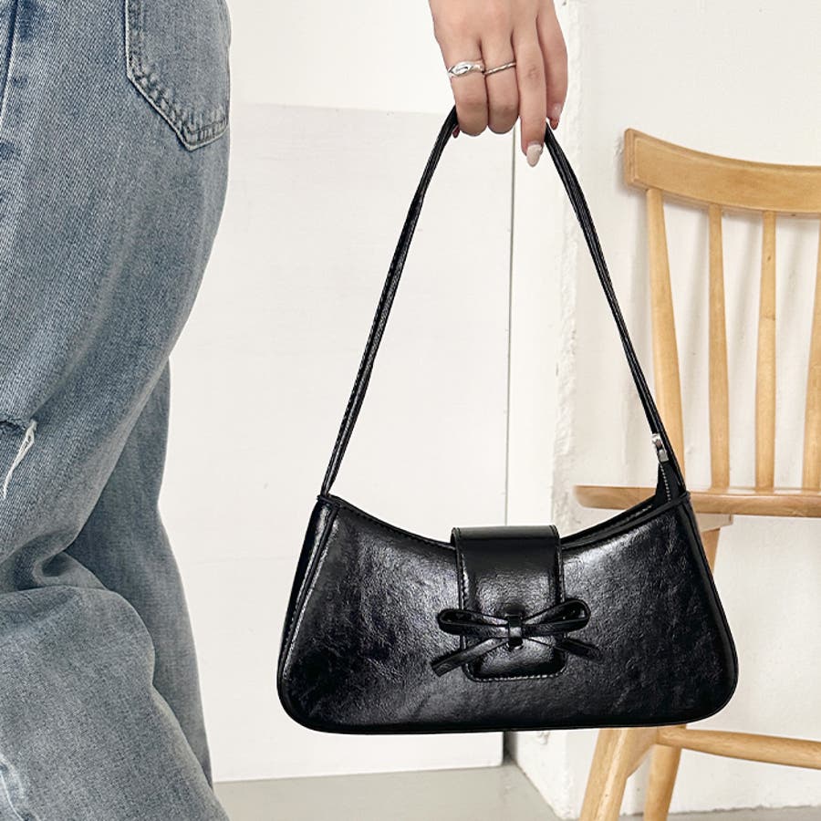 フラップ部分のリボンモチーフが今年っぽいPUバッグ◎