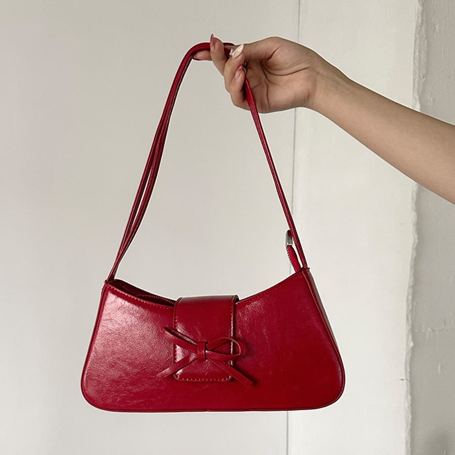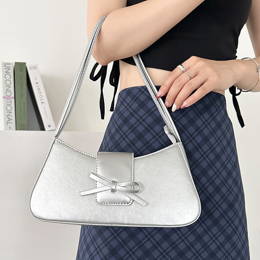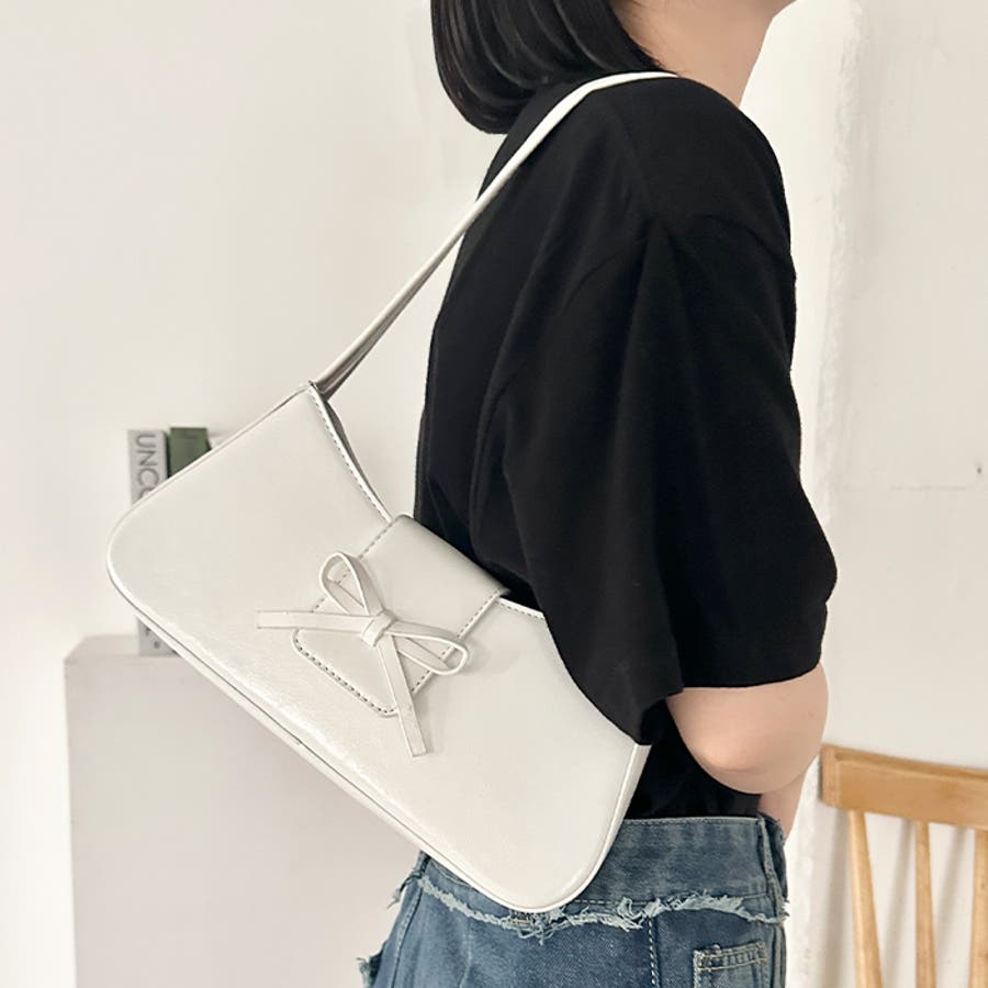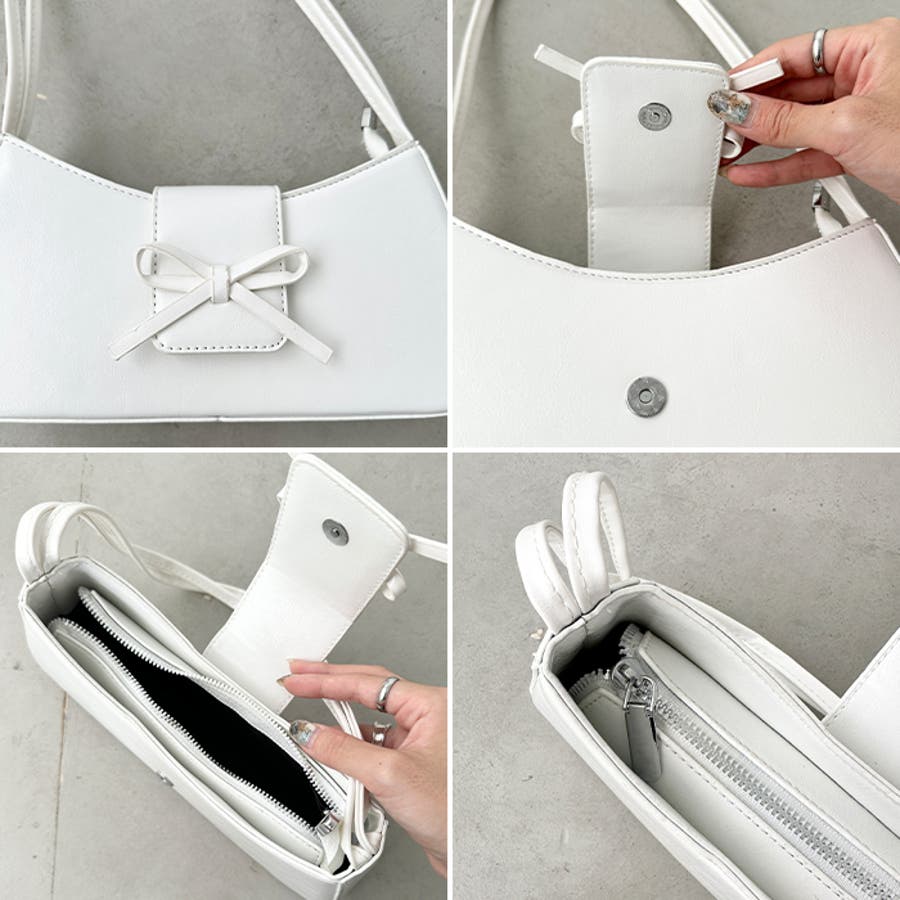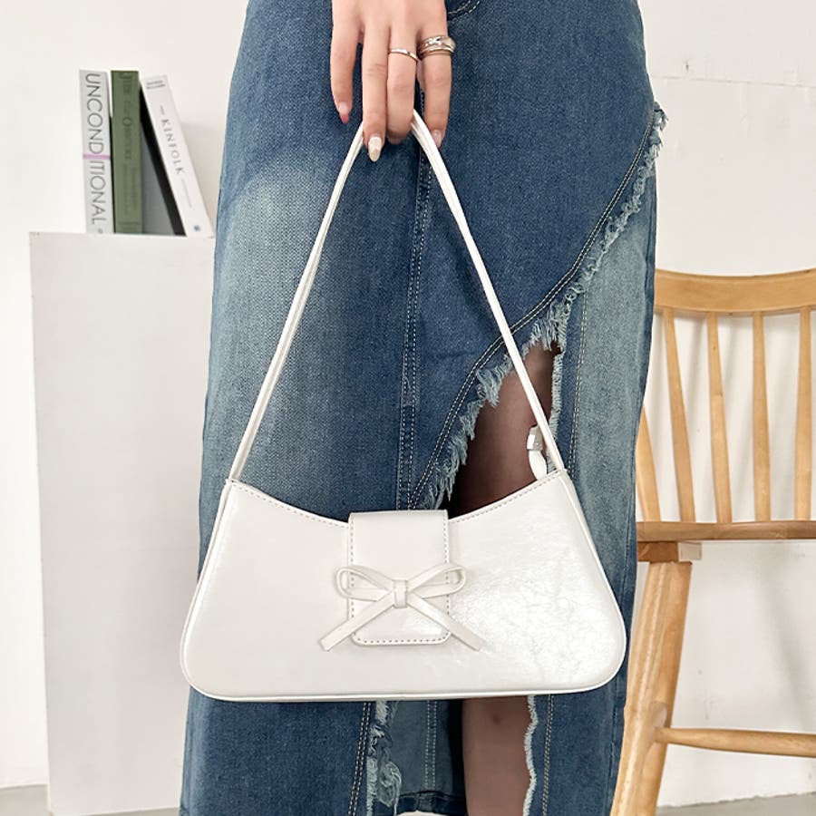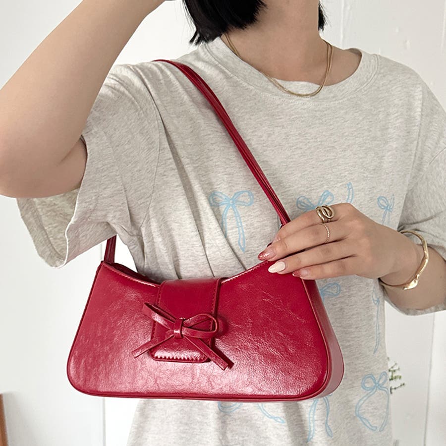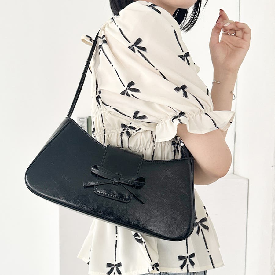 フラップ部分のリボンモチーフが今年っぽいPUバッグ◎