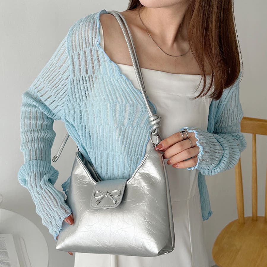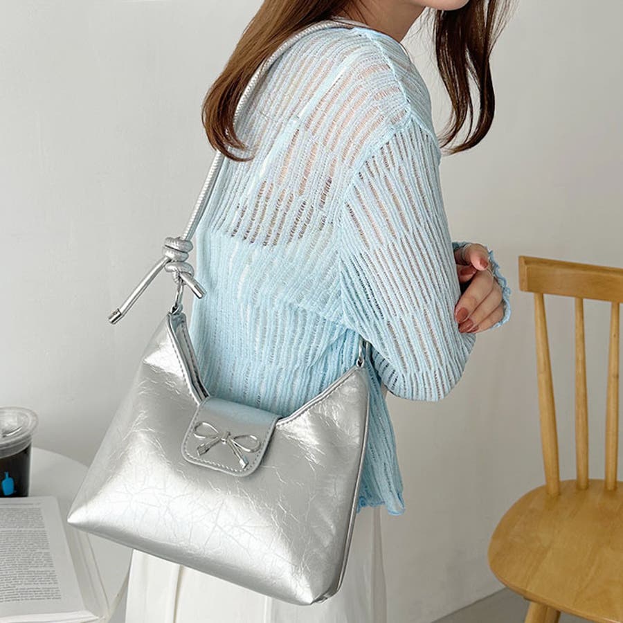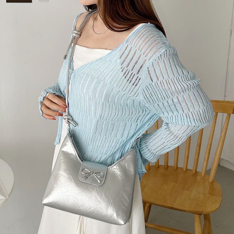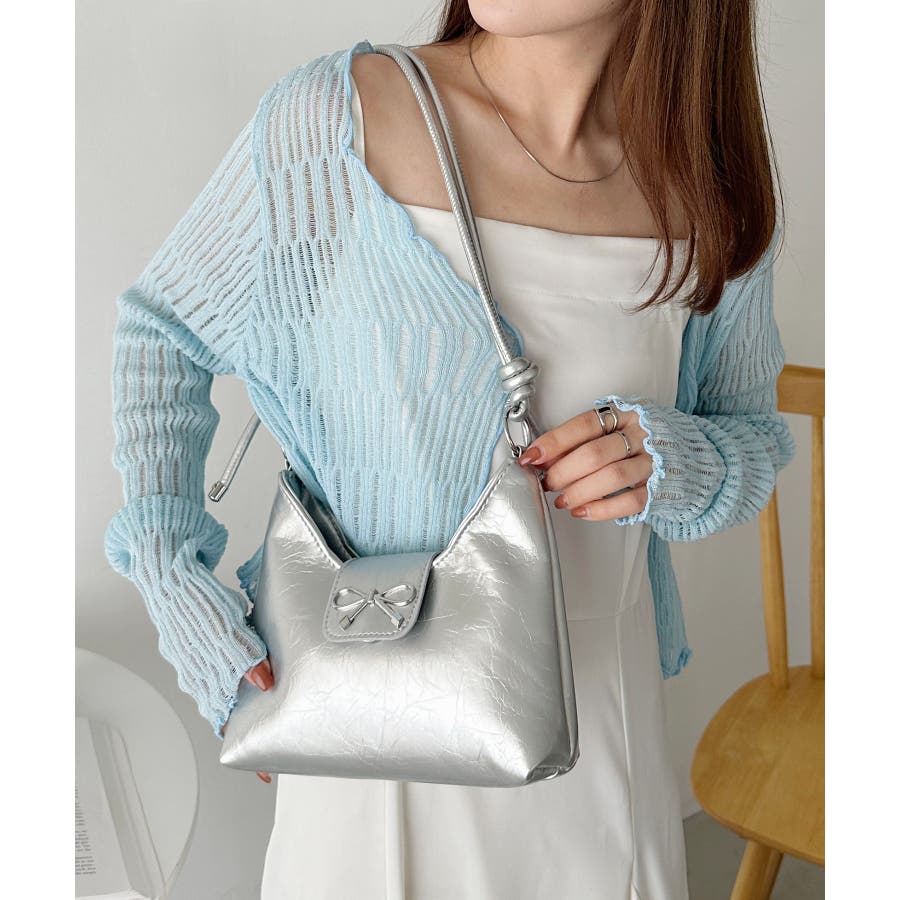 シルバーのリボンモチーフが目を惹くショルダーバッグ!