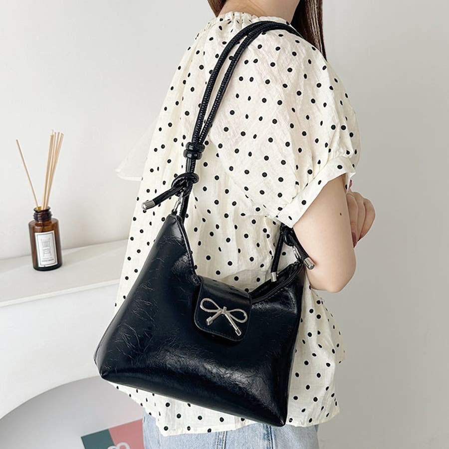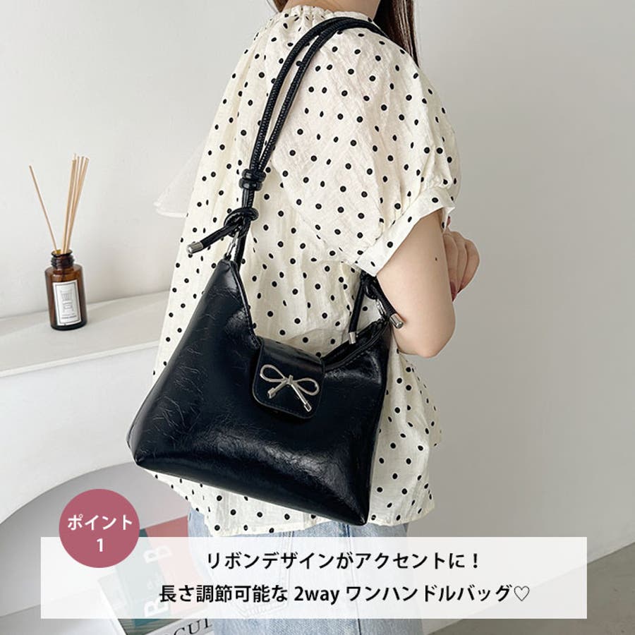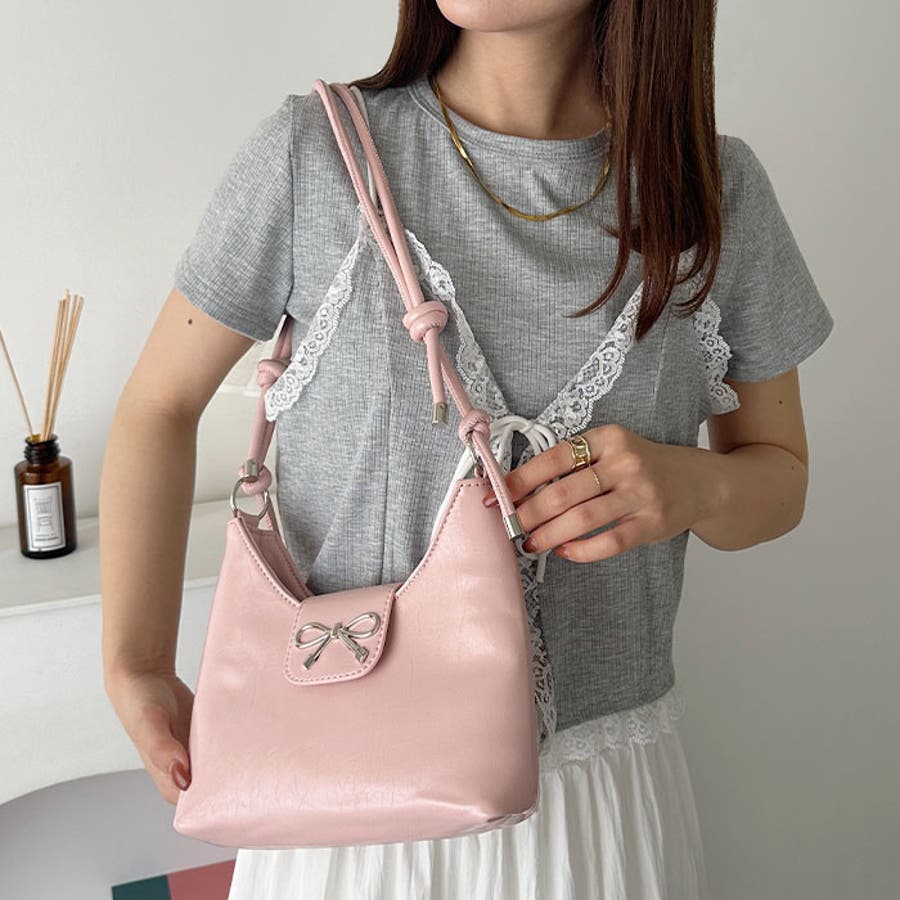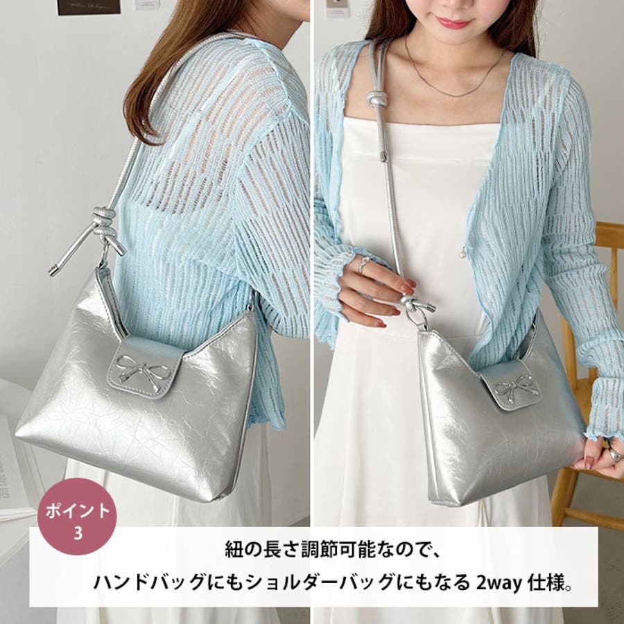 シルバーのリボンモチーフが目を惹くショルダーバッグ!