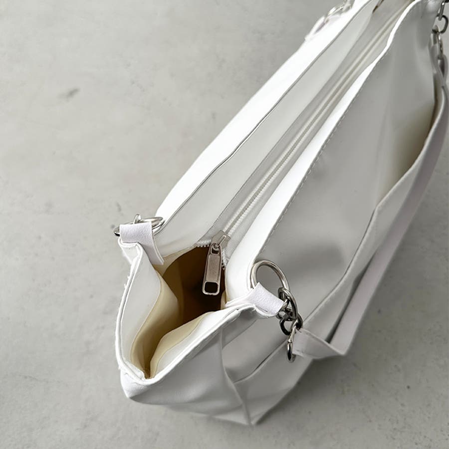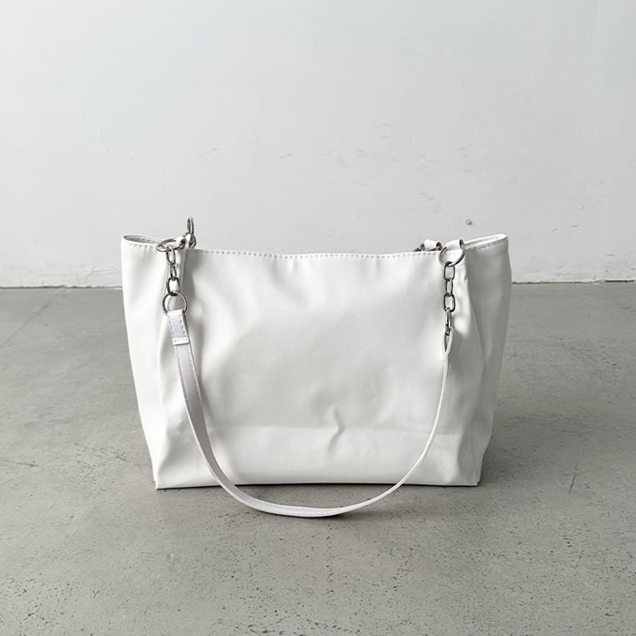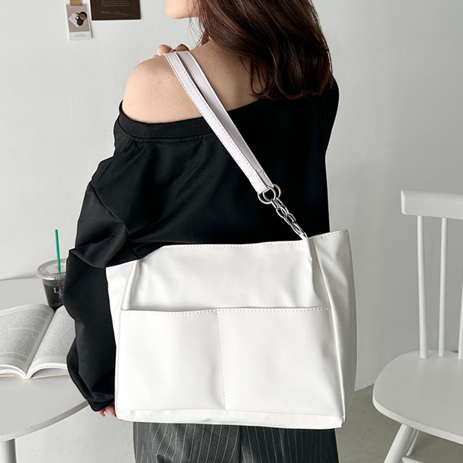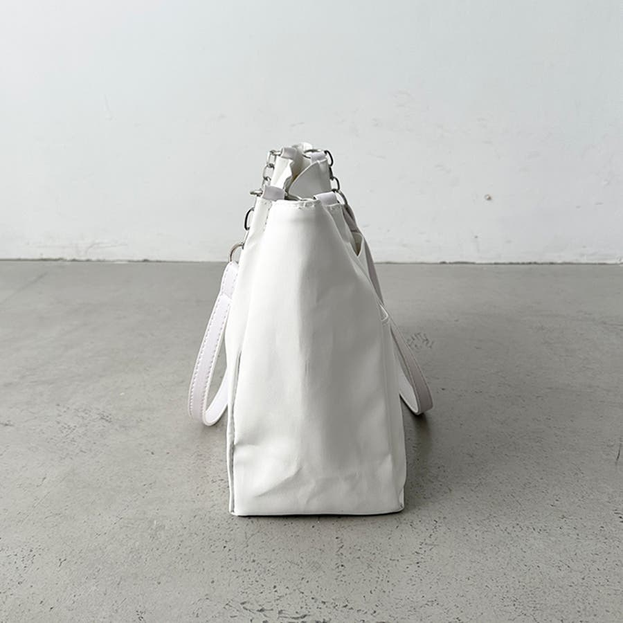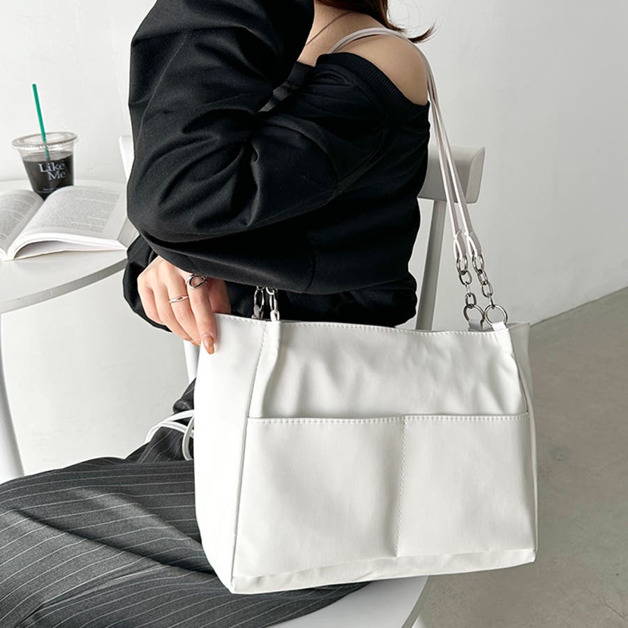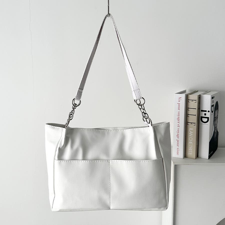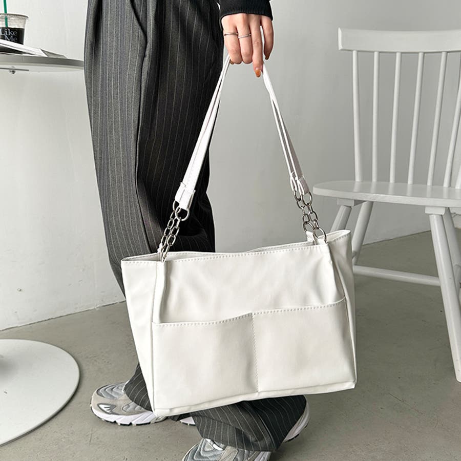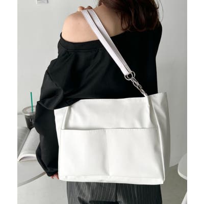 外ポケットが2つ付いた、オンオフ使いやすいPU素材のトートバッグ。