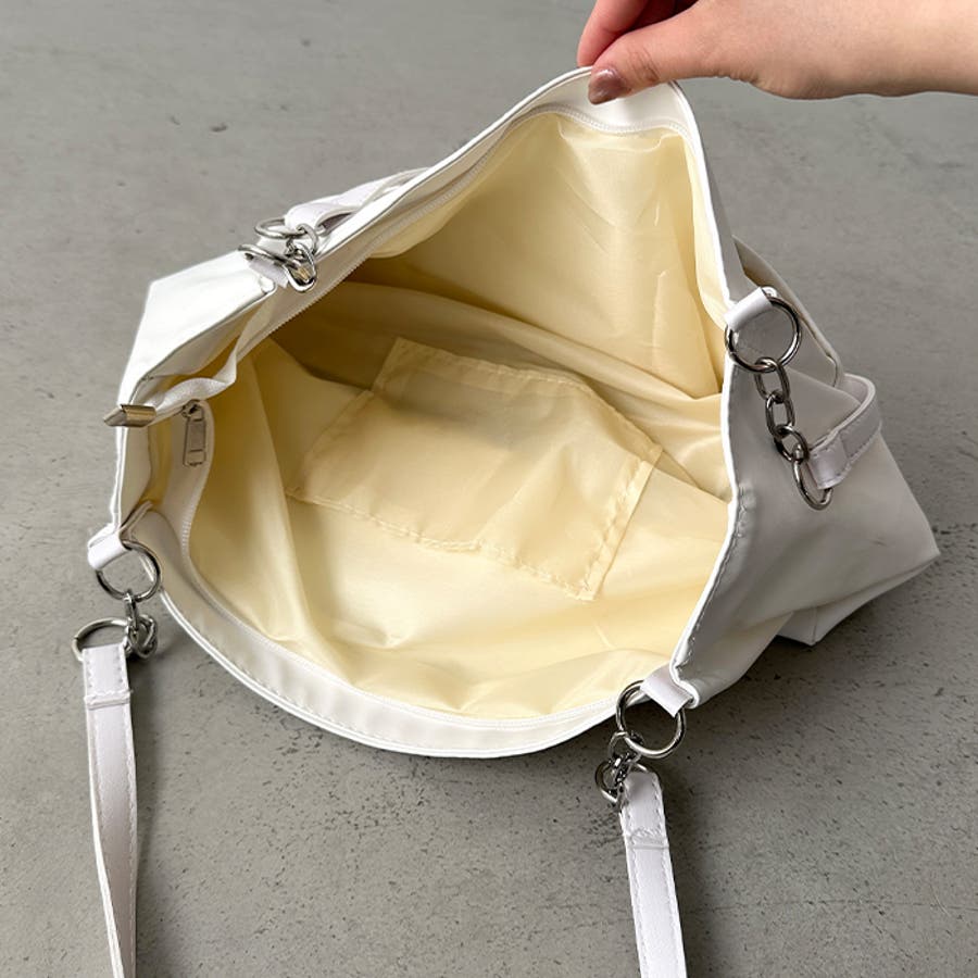 内側には大きなポケット付きなので、小物なども分けて収納できるのも嬉しいPOINT◎