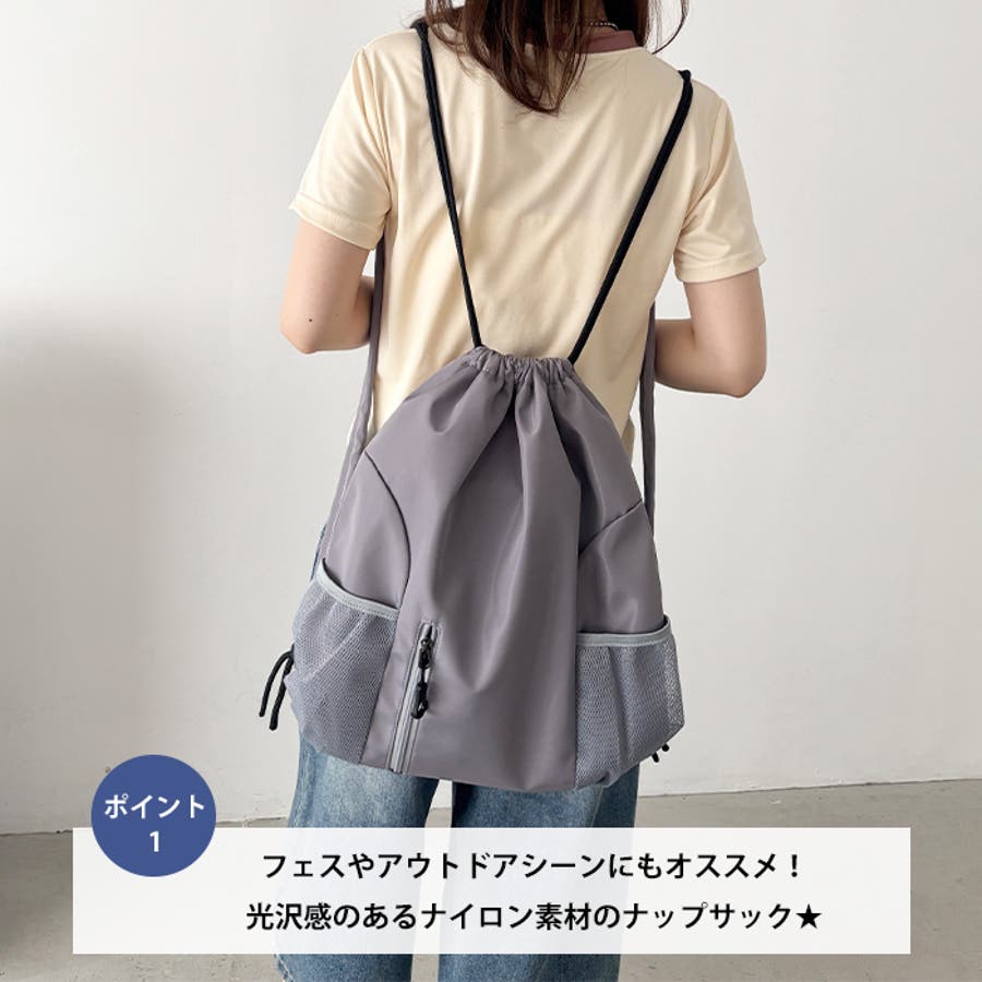 光沢感のある素材が特徴の大人カジュアルなナップサック。