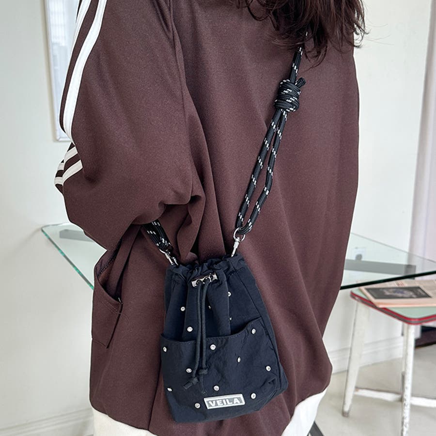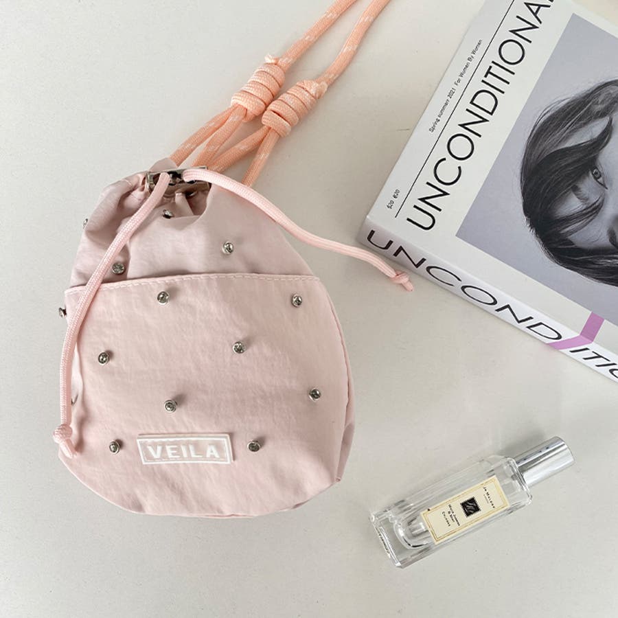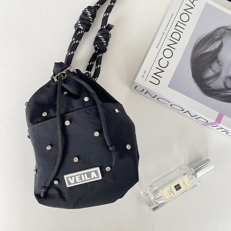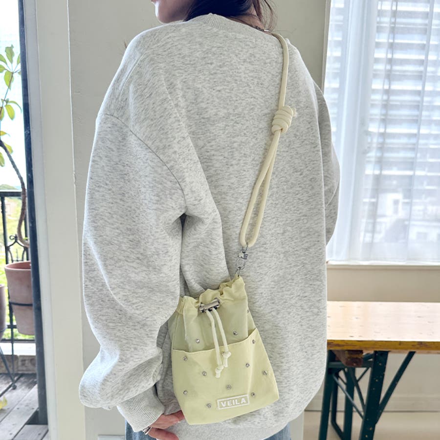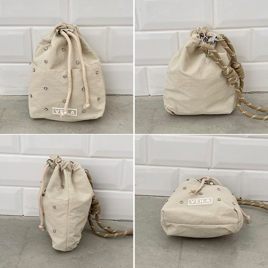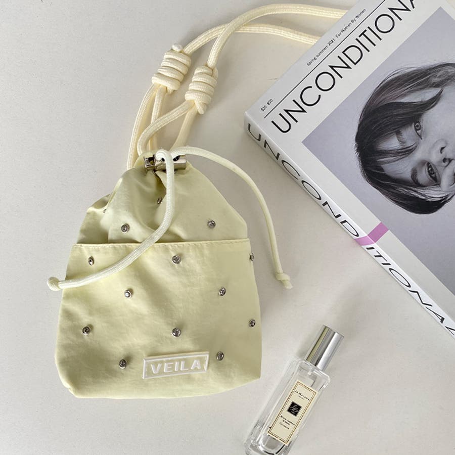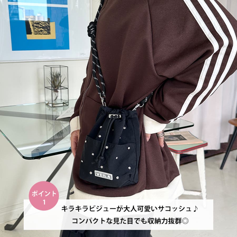 ビジューの散りばめられたデザインがトレンドライクな巾着型のミニバッグ♪