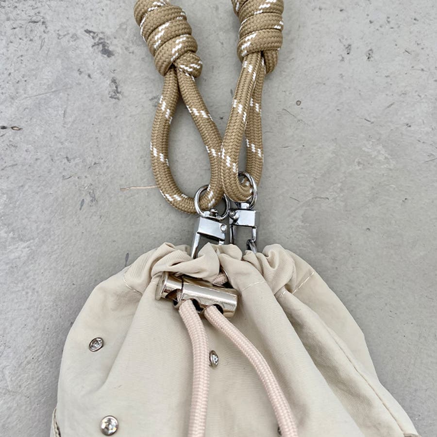 ショルダー紐は結び目を変えれば長さ調節が可能なので、肩掛けも斜め掛けもできます。