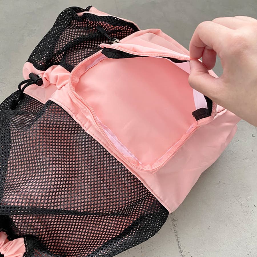 前方にはペットボトルや小物が入るポケット、後方にもさりげなく小さなポケットがあり機能性抜群!