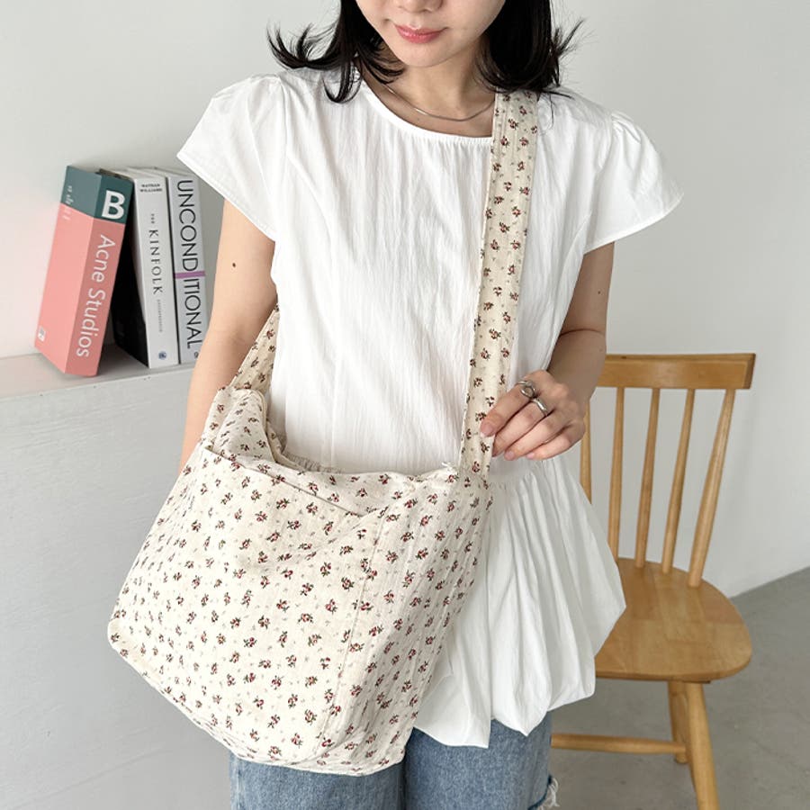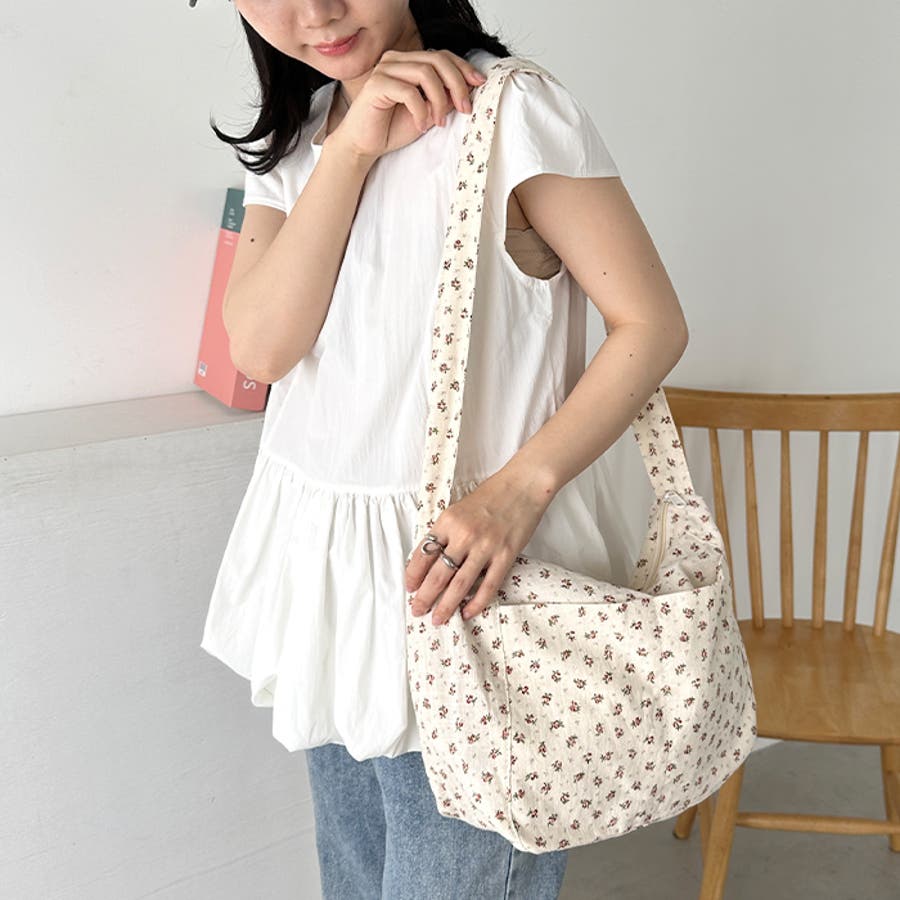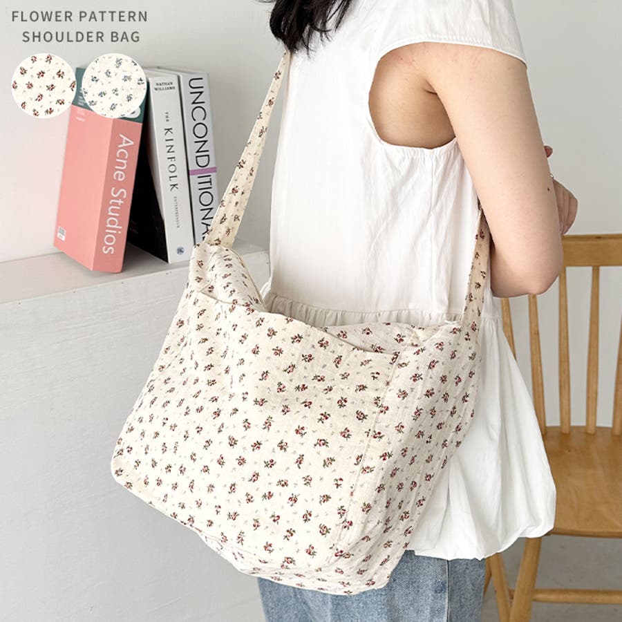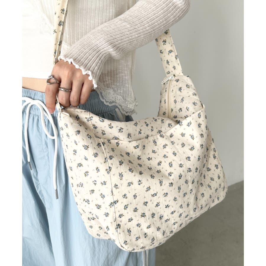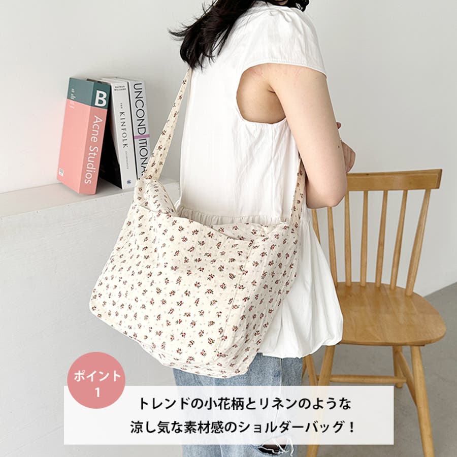 トレンドの小花柄とリネンのような涼し気な素材感のショルダーバッグ!