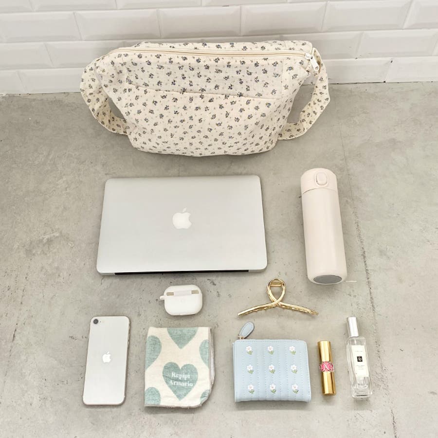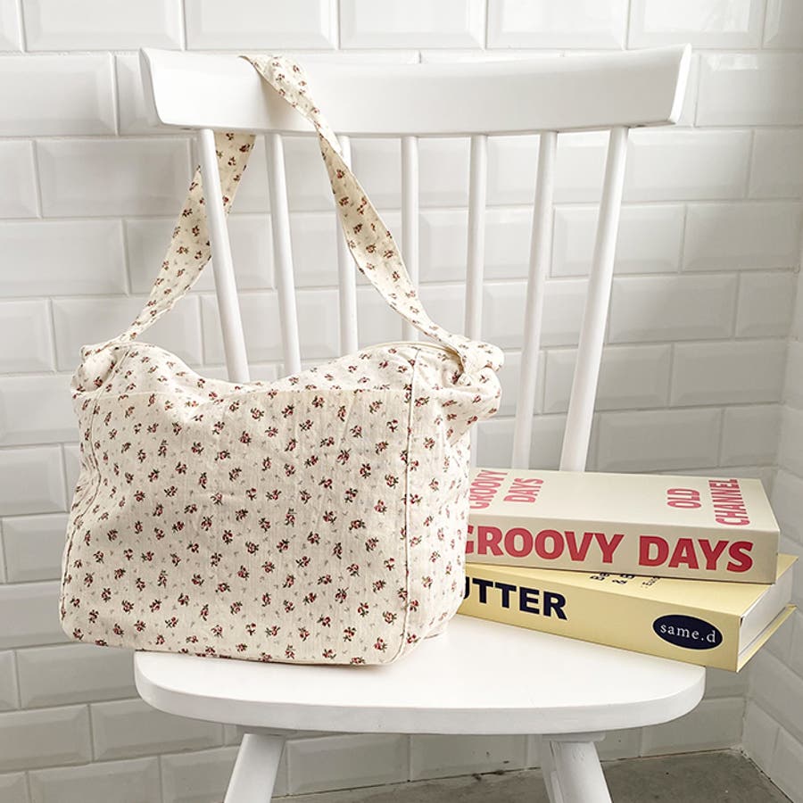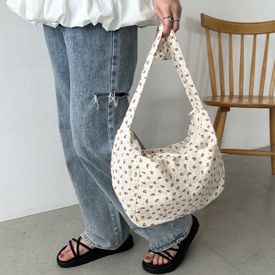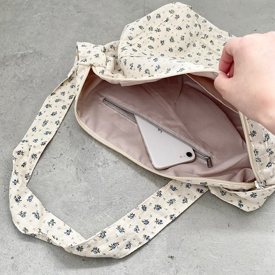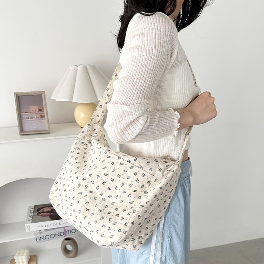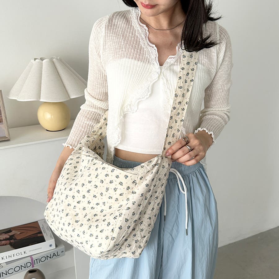 トレンドの小花柄とリネンのような涼し気な素材感のショルダーバッグ!