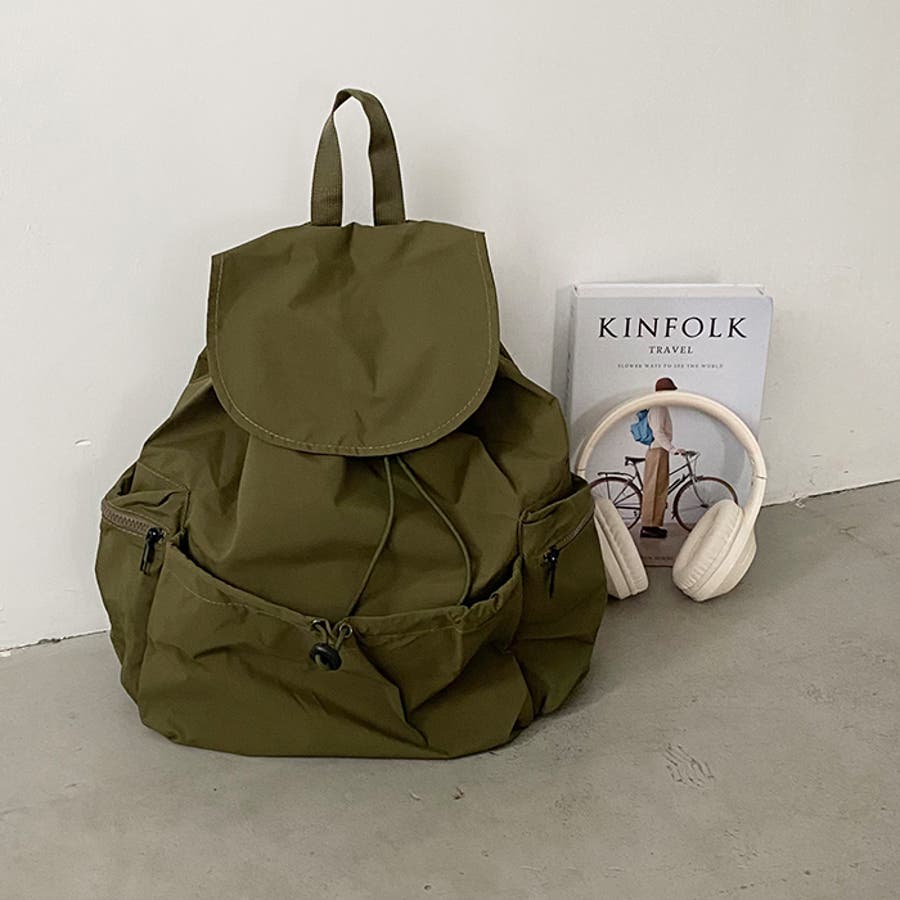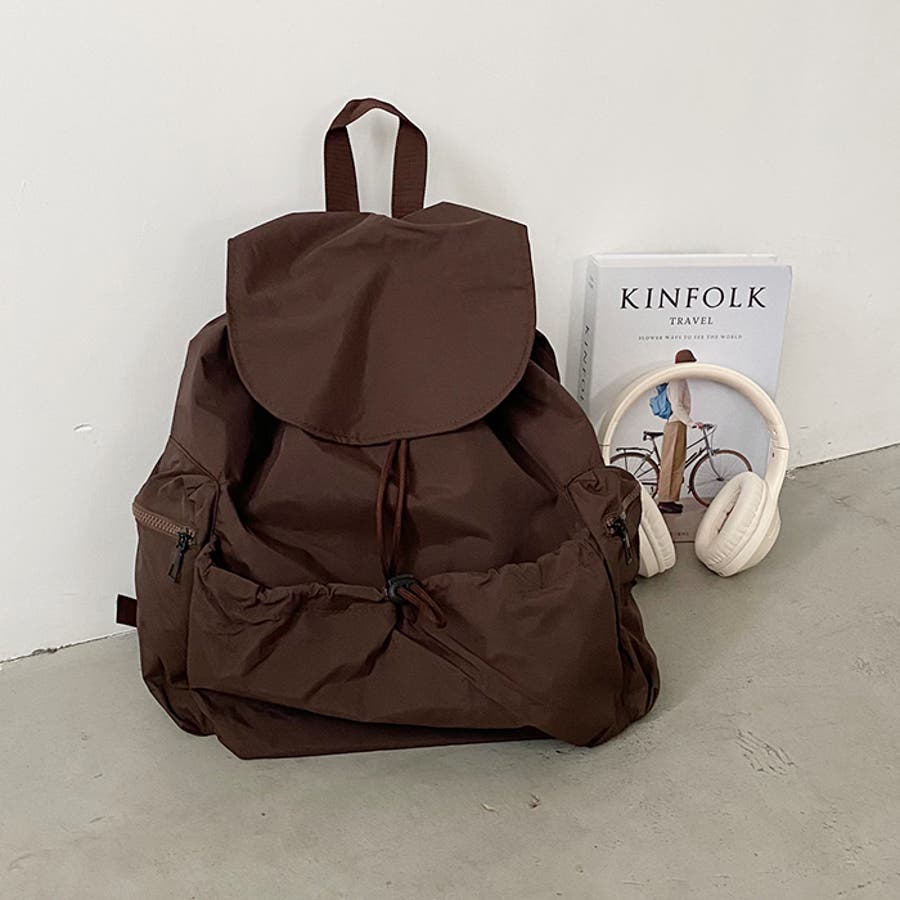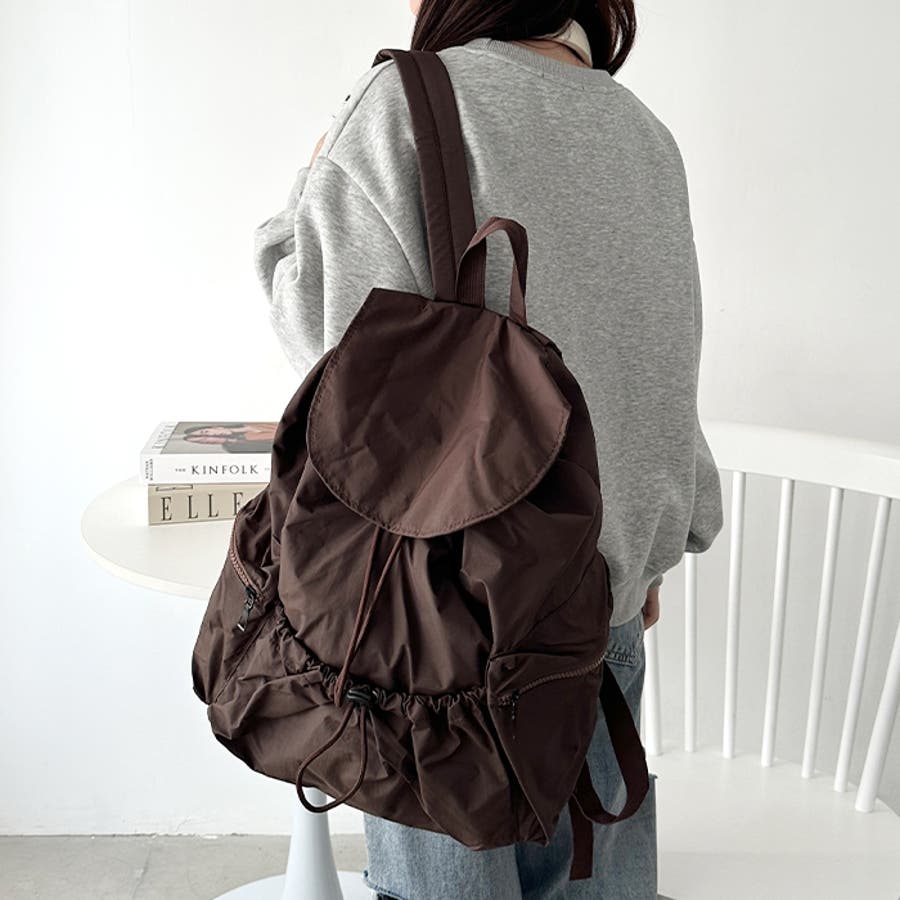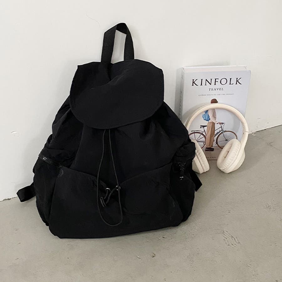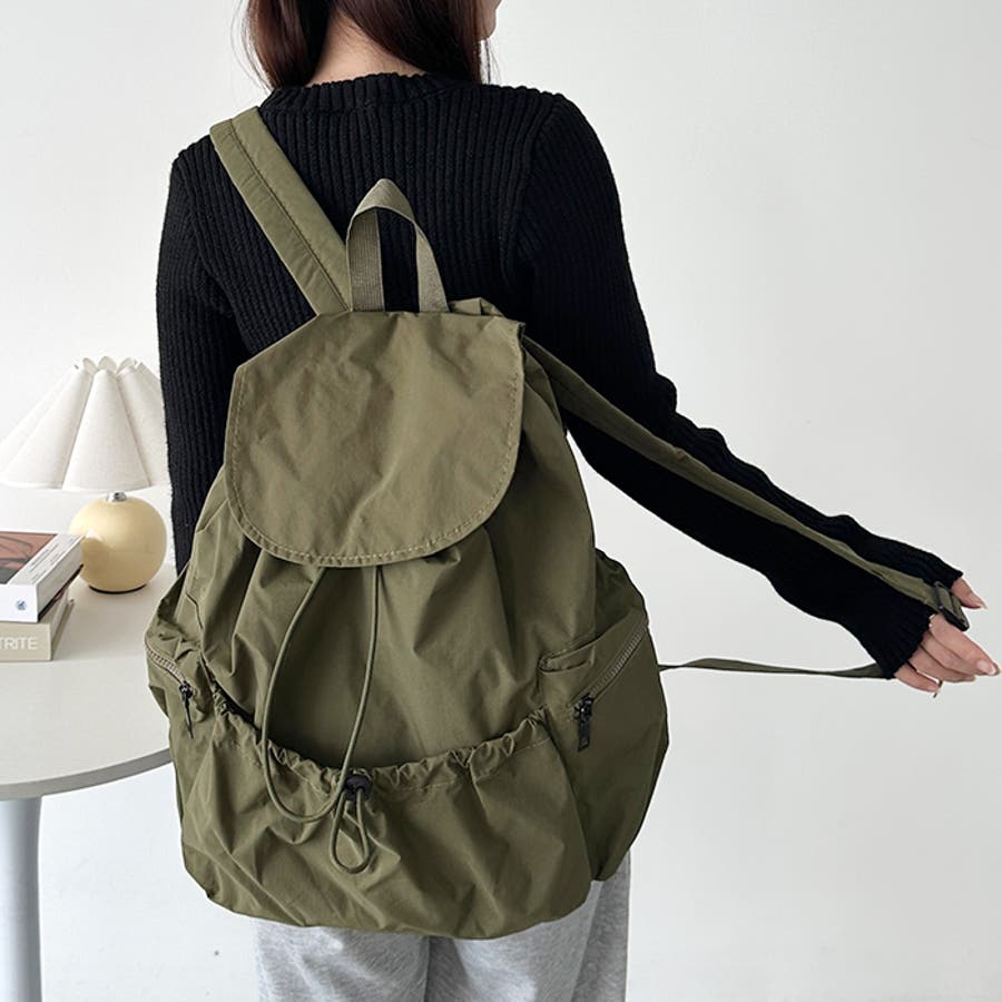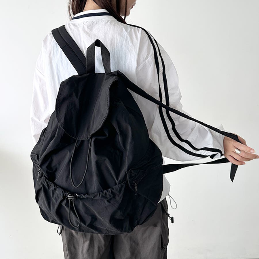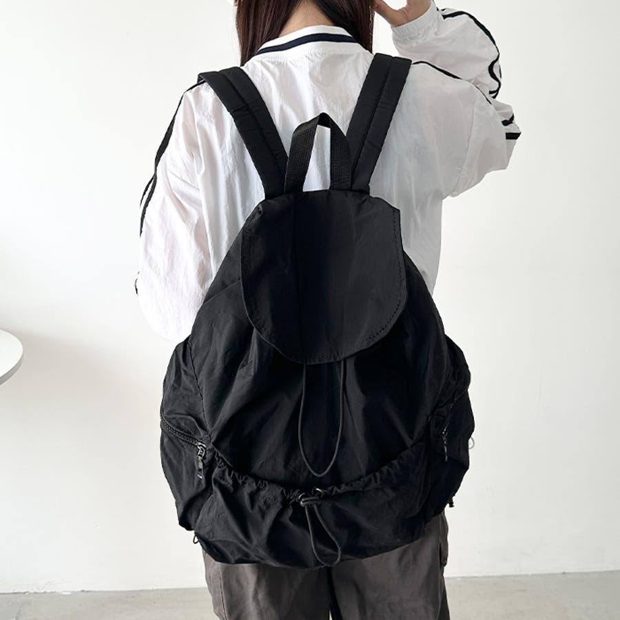 軽量で耐久性のあるナイロン素材を使用した、大容量ドロストバックパック。