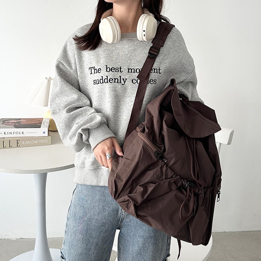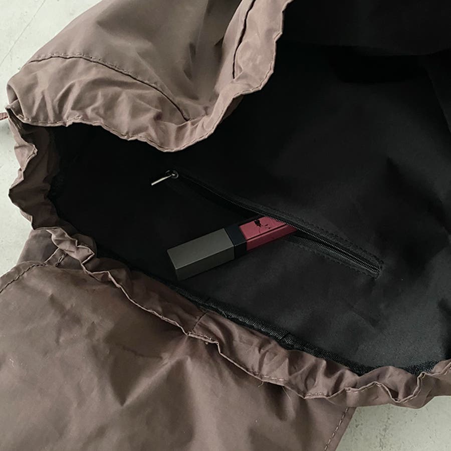 ドローストリングで開閉も簡単、荷物の出し入れもスムーズです。
