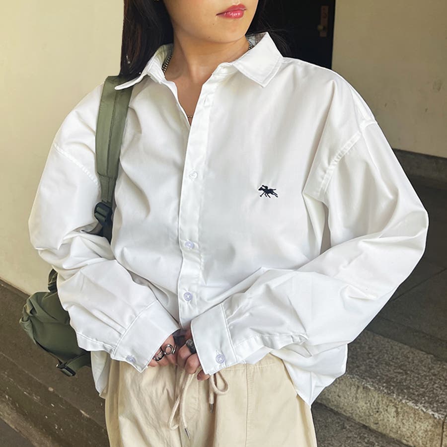 ブランドモチーフのワンポイント刺繍がアクセントになるオーバーカジュアルシャツ◎
