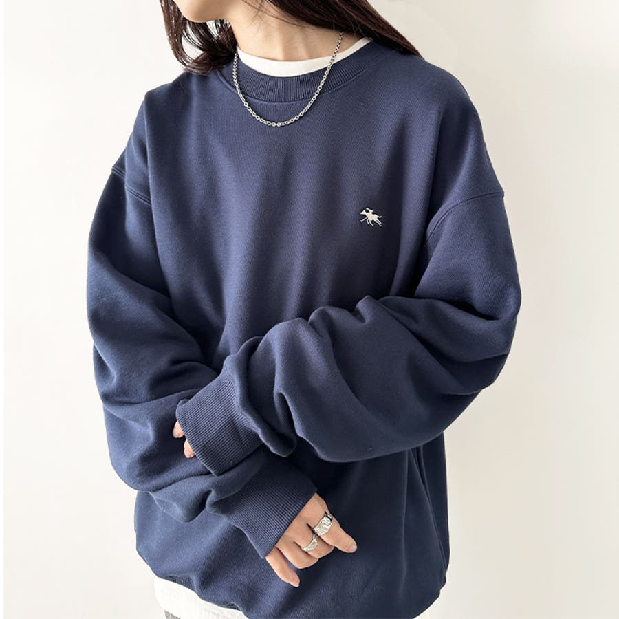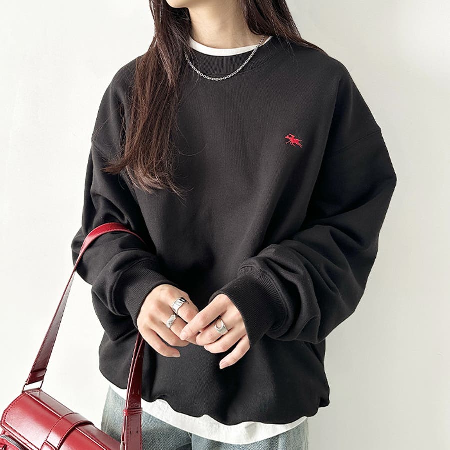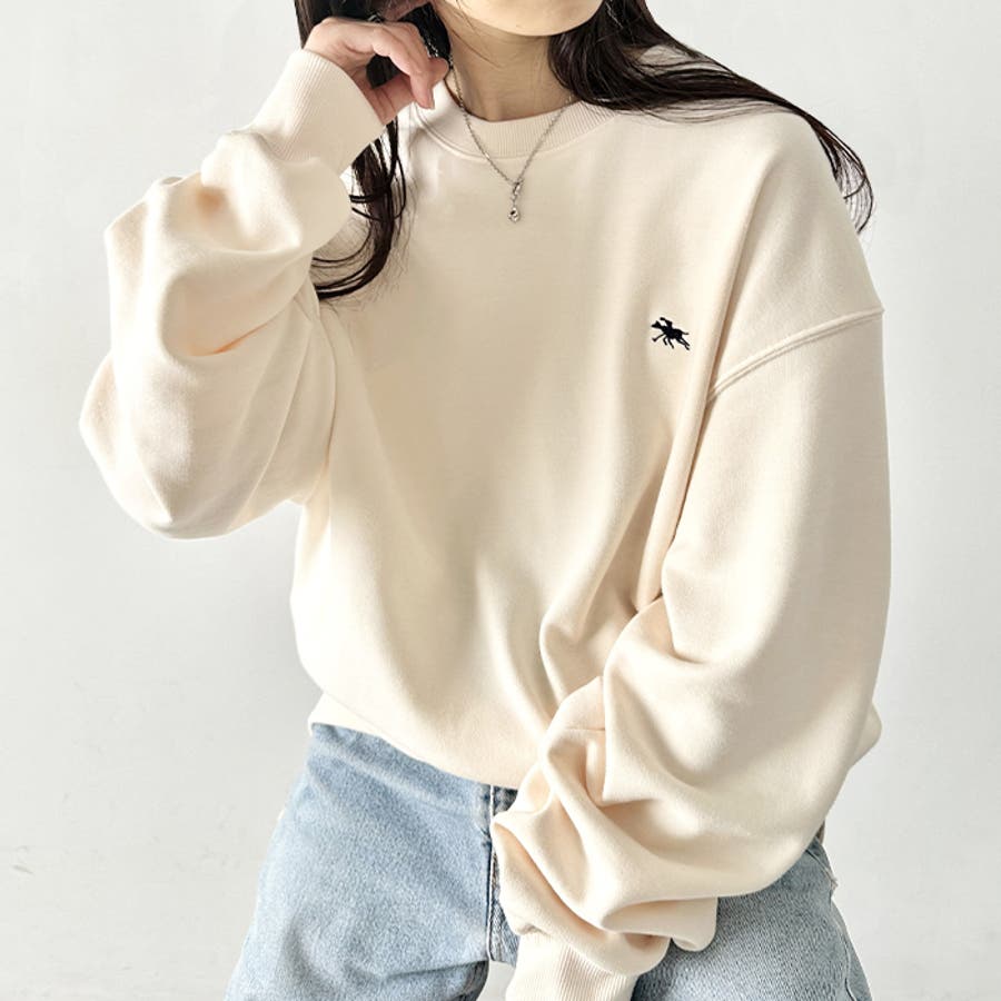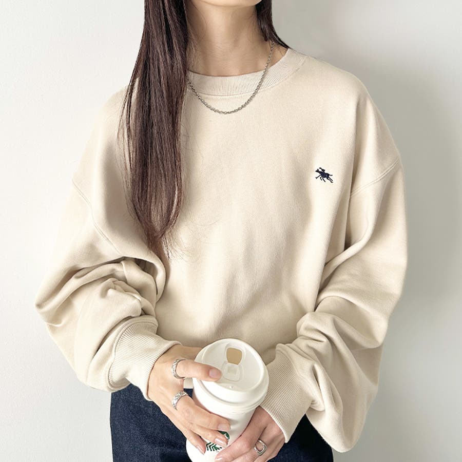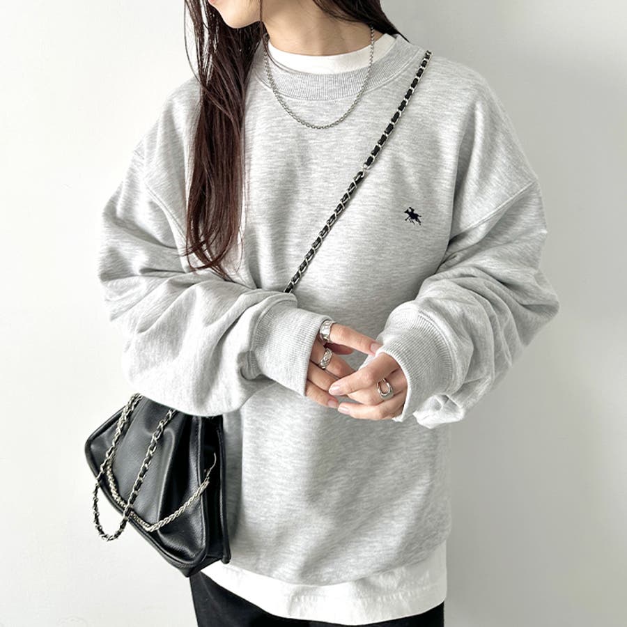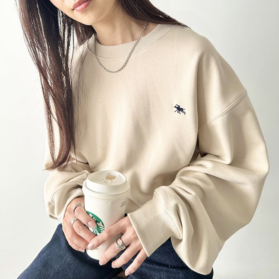 ブランドモチーフのワンポイント刺繍がアクセントになる裏毛トレーナー◎