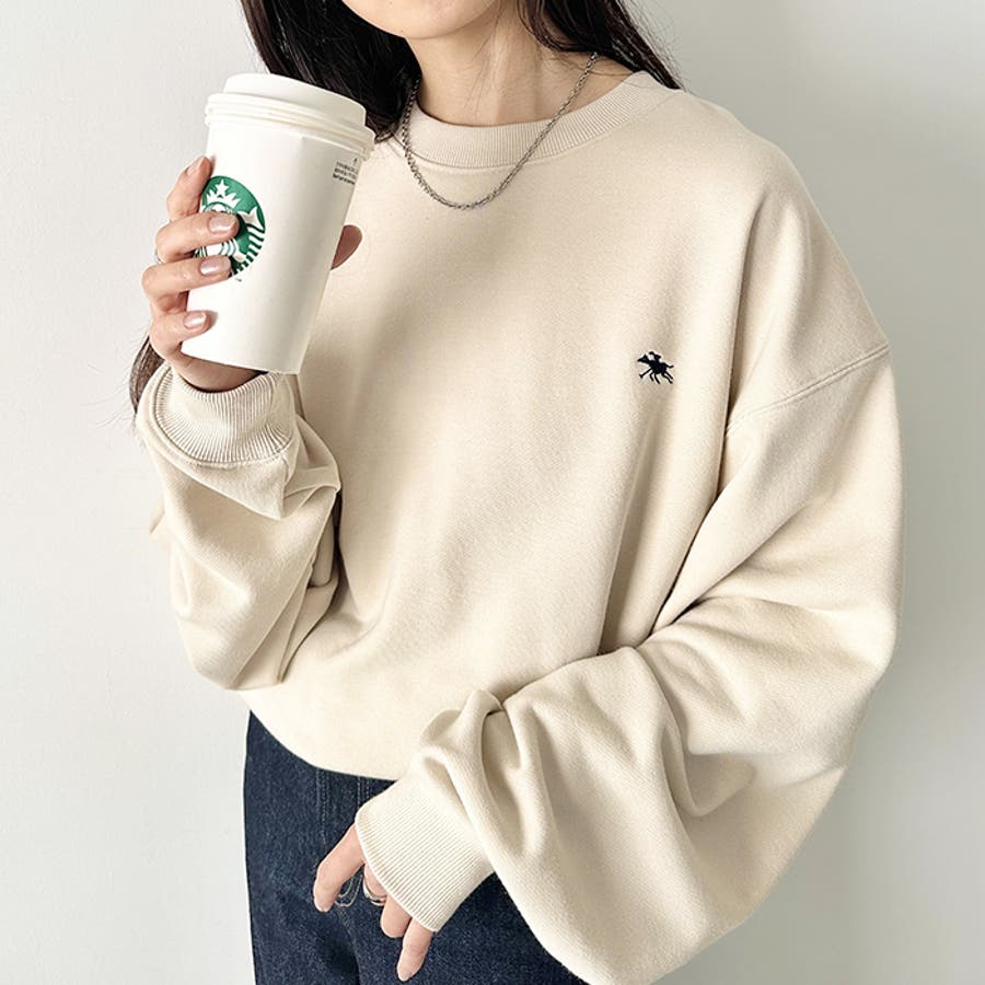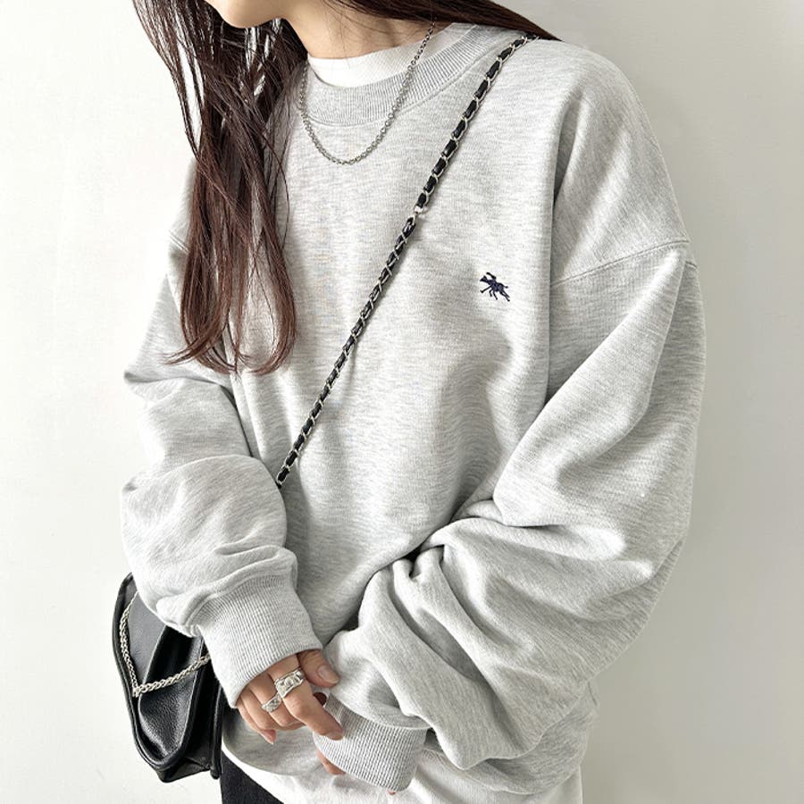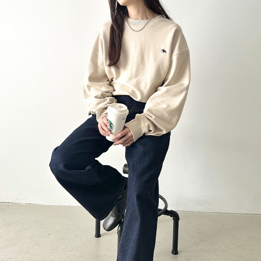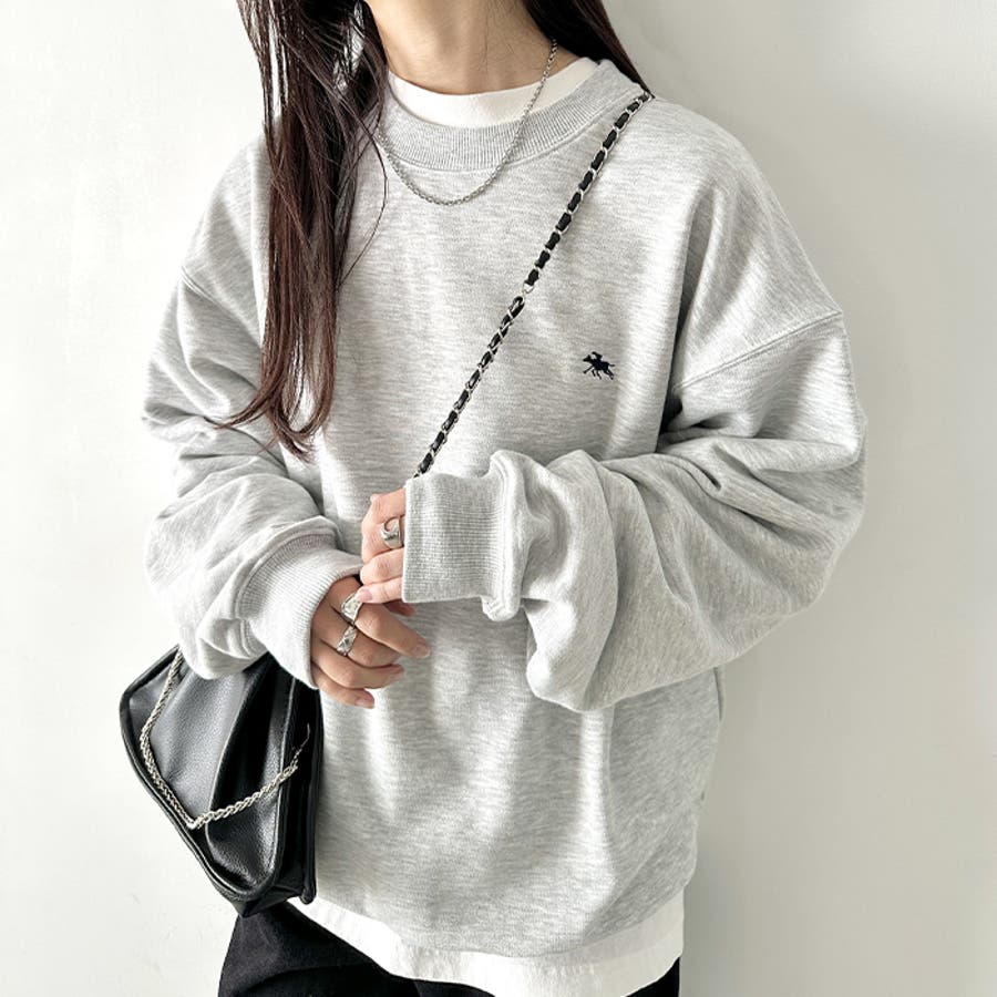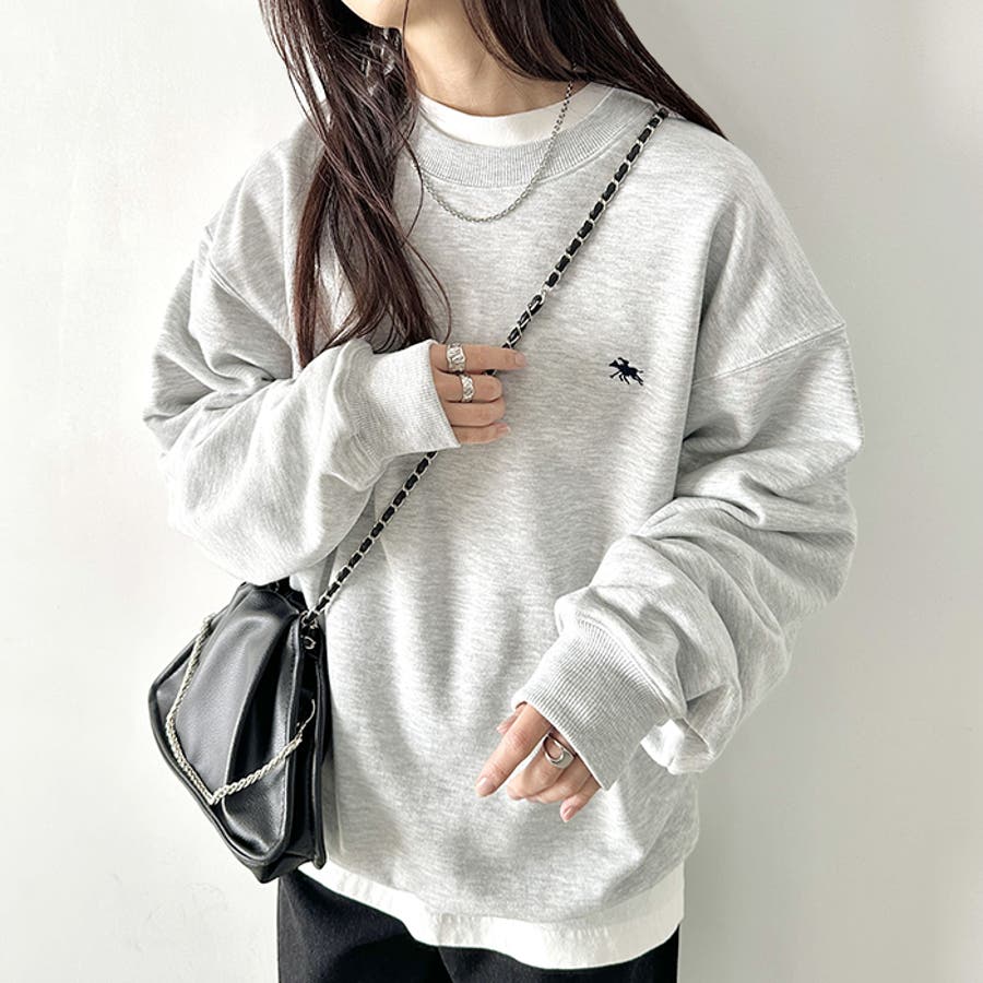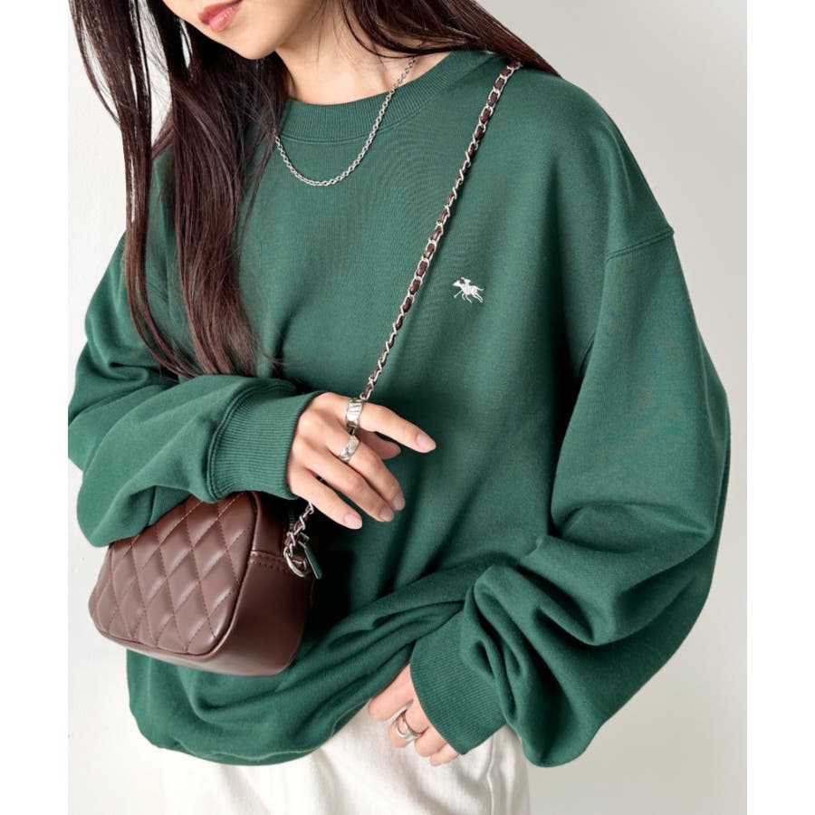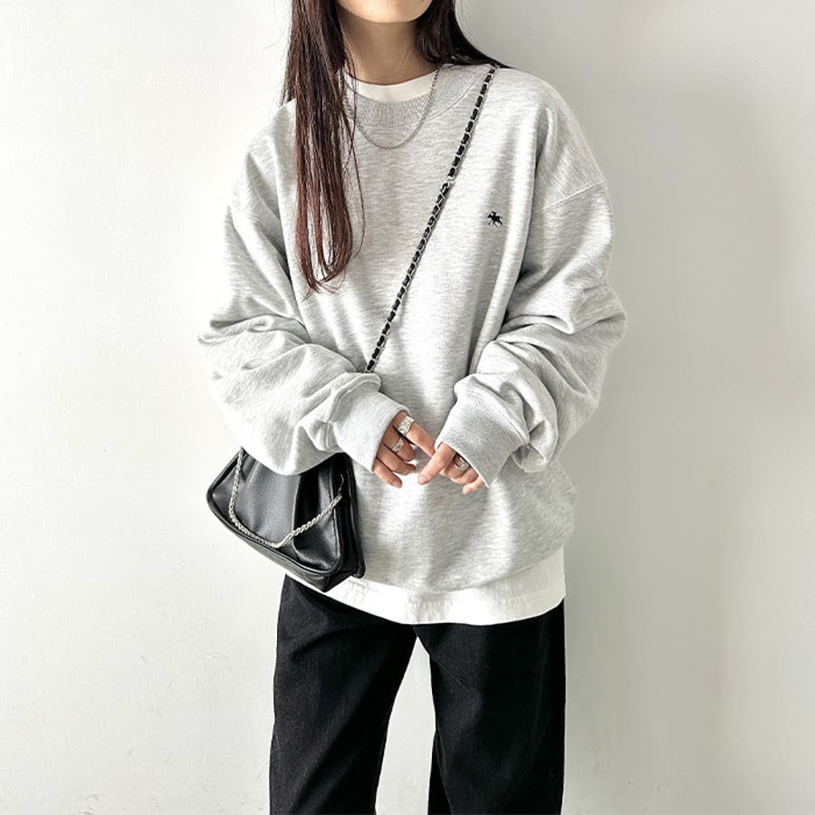 ブランドモチーフのワンポイント刺繍がアクセントになる裏毛トレーナー◎