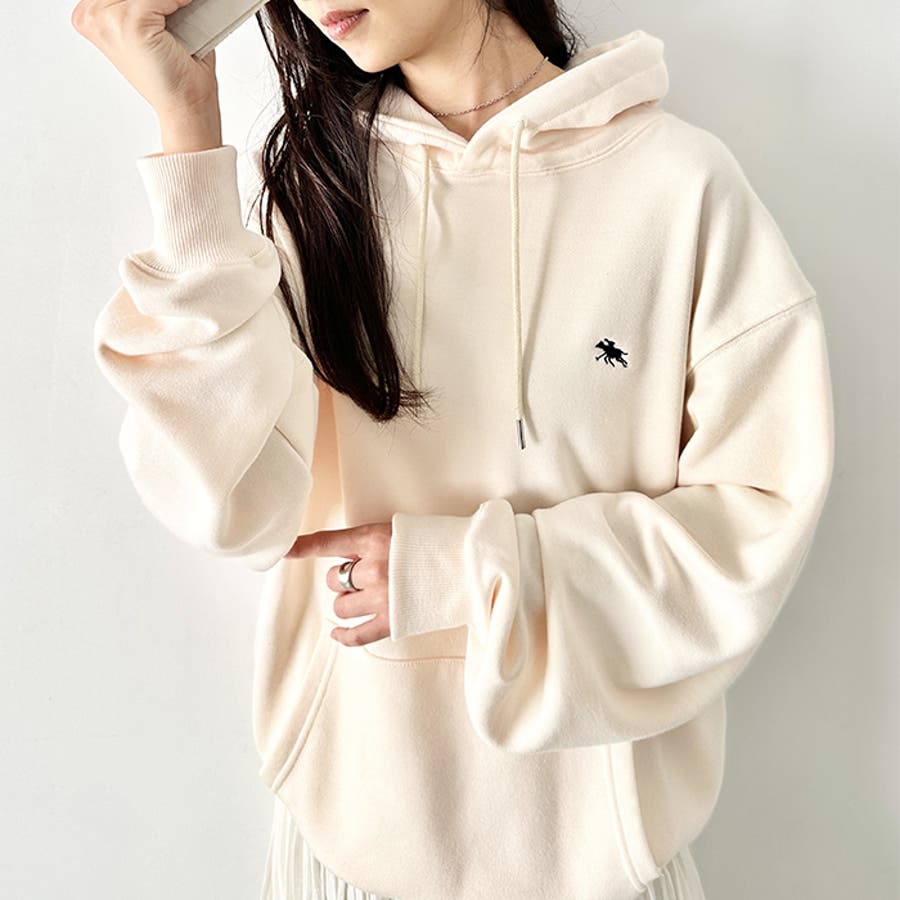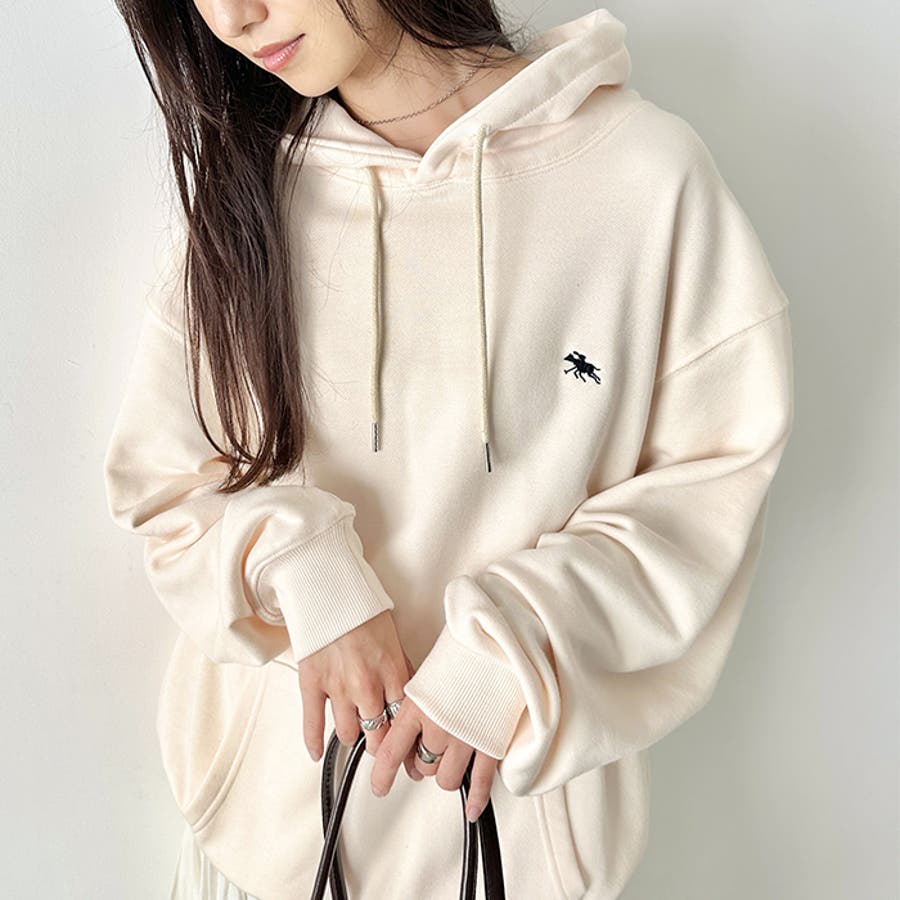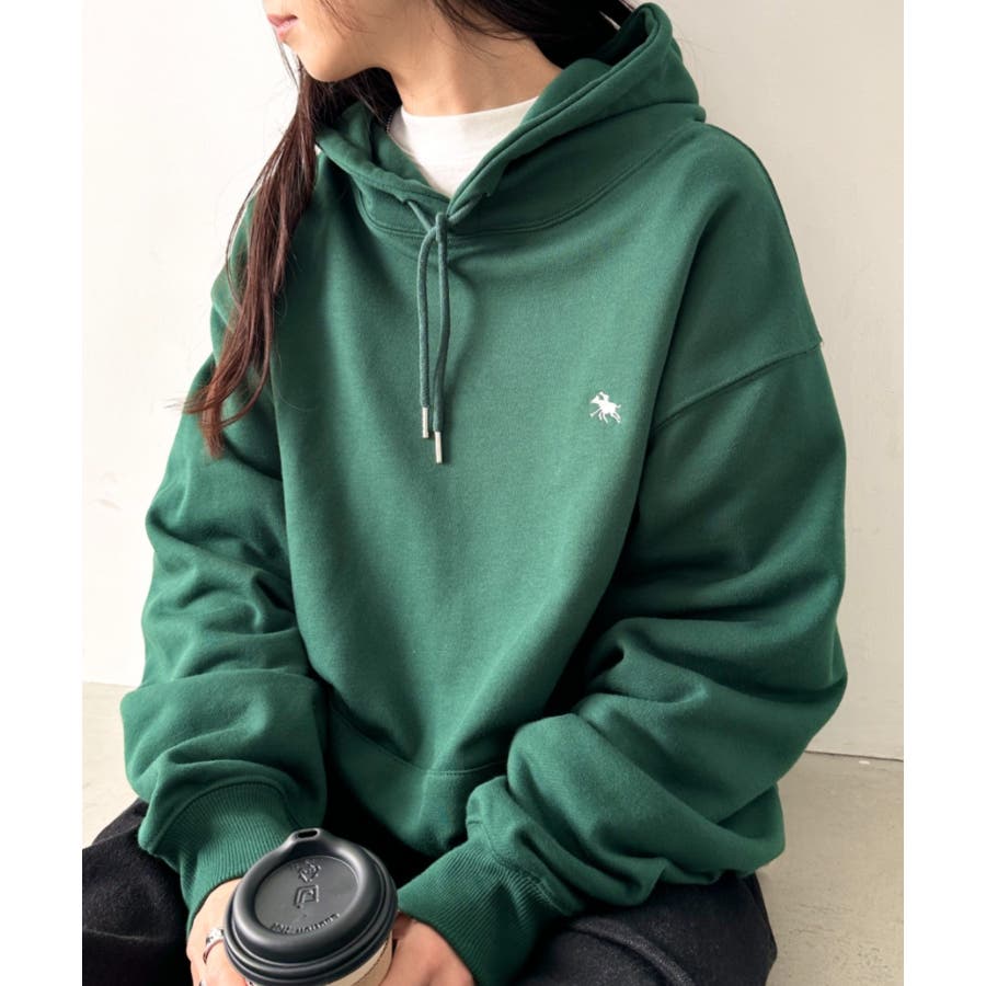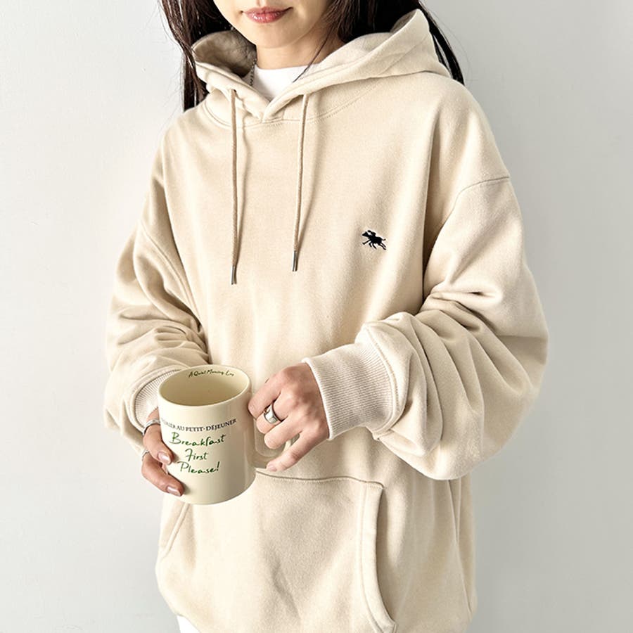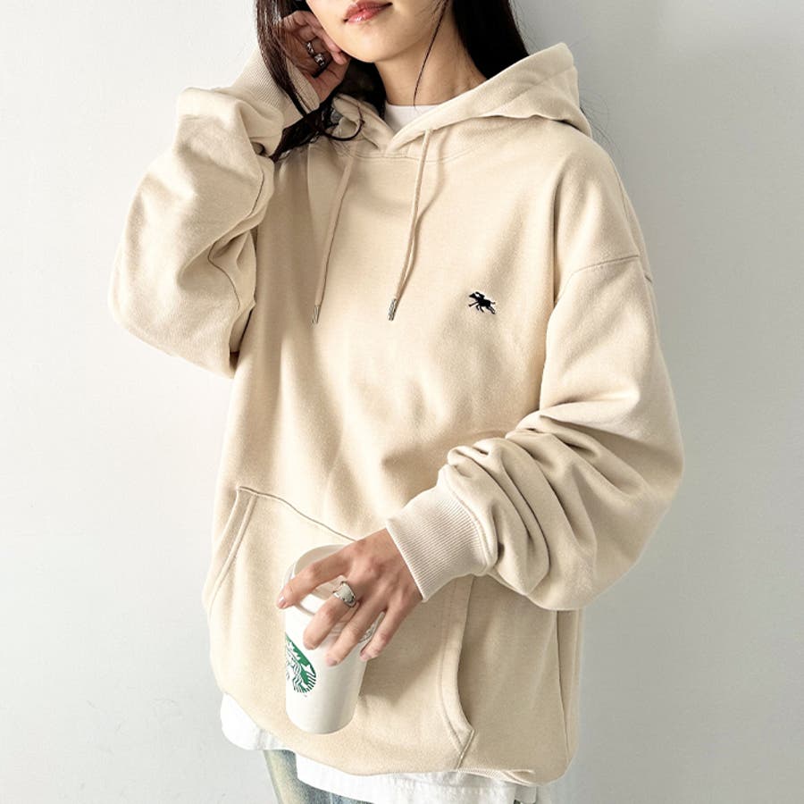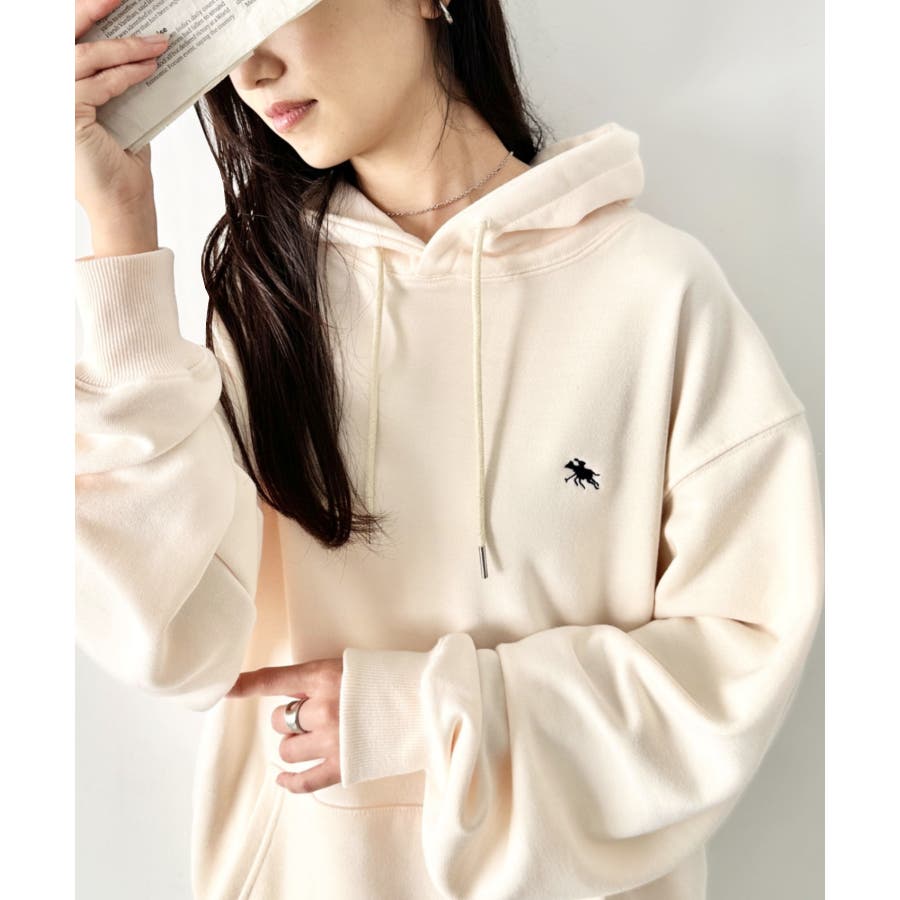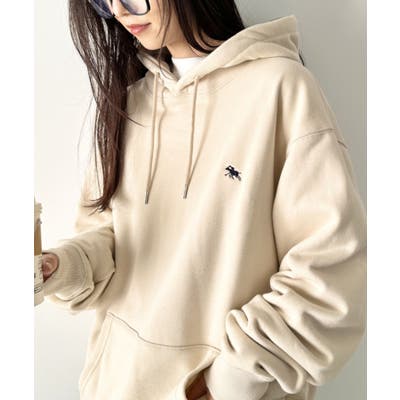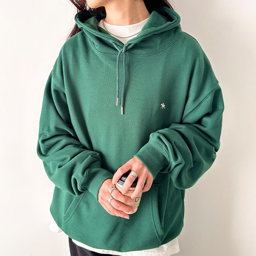 ブランドモチーフのワンポイント刺繍がアクセントになる裏毛フードパーカー◎