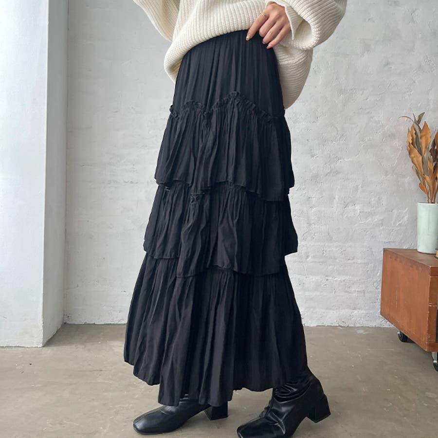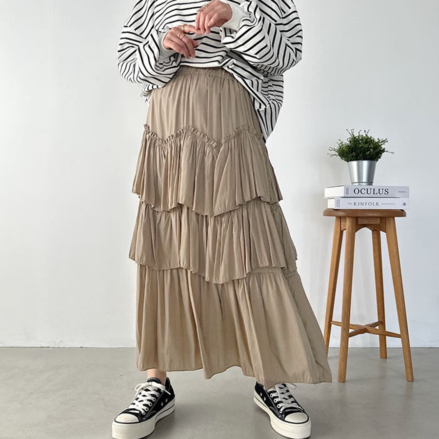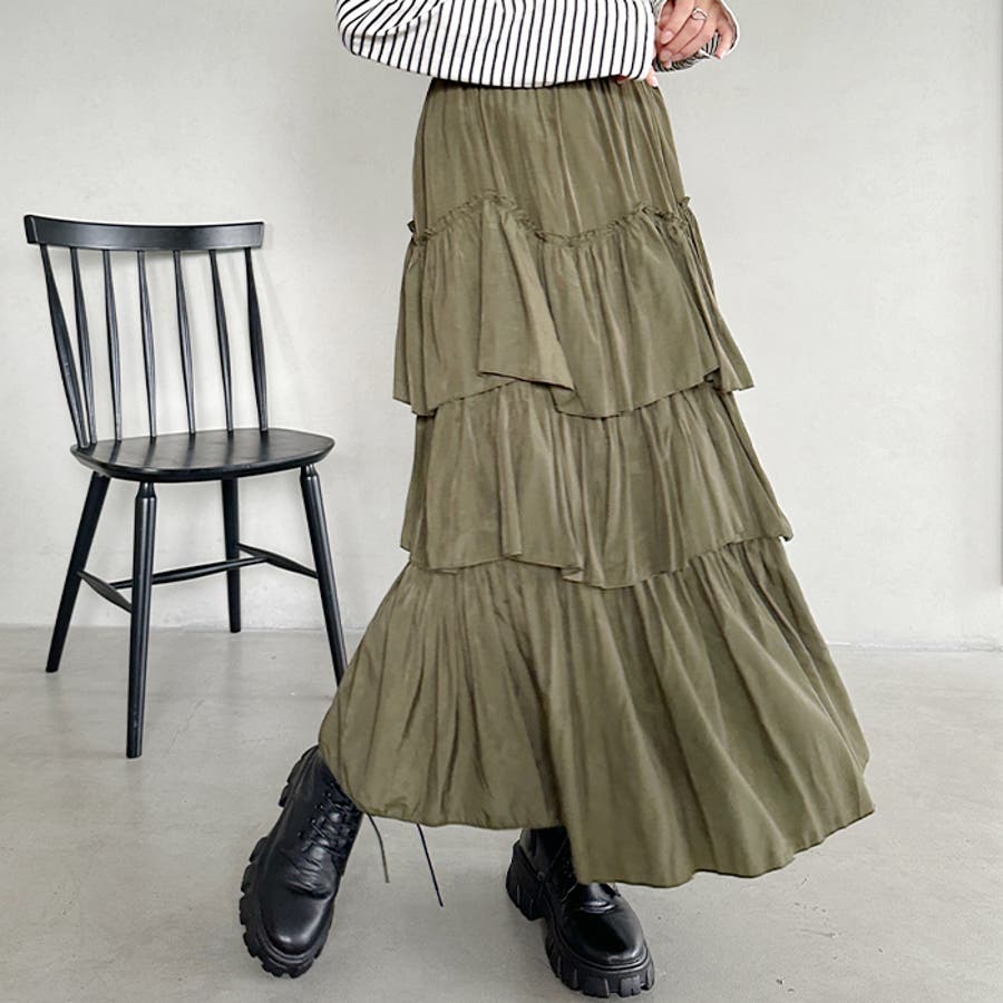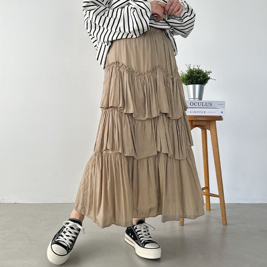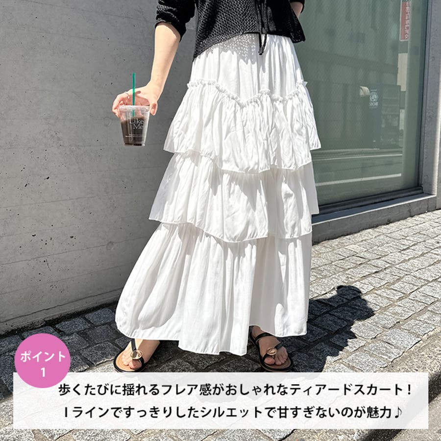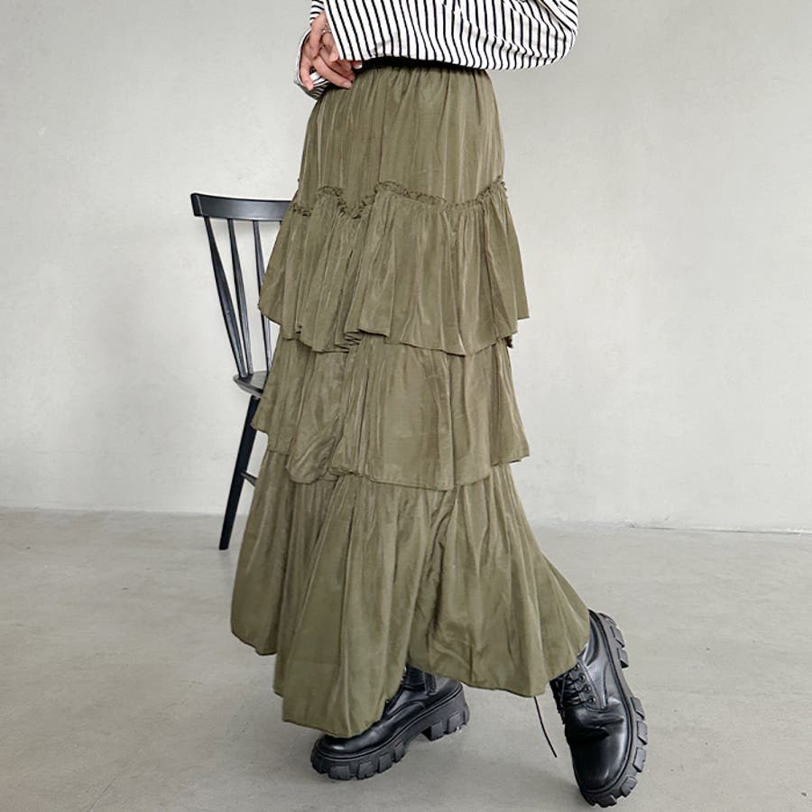 歩くたびに揺れるフレア感がおしゃれなティアードスカート。
