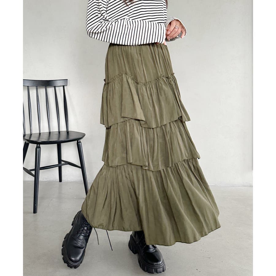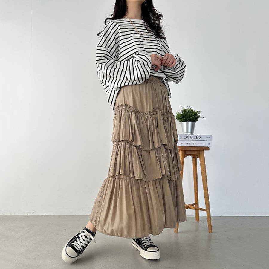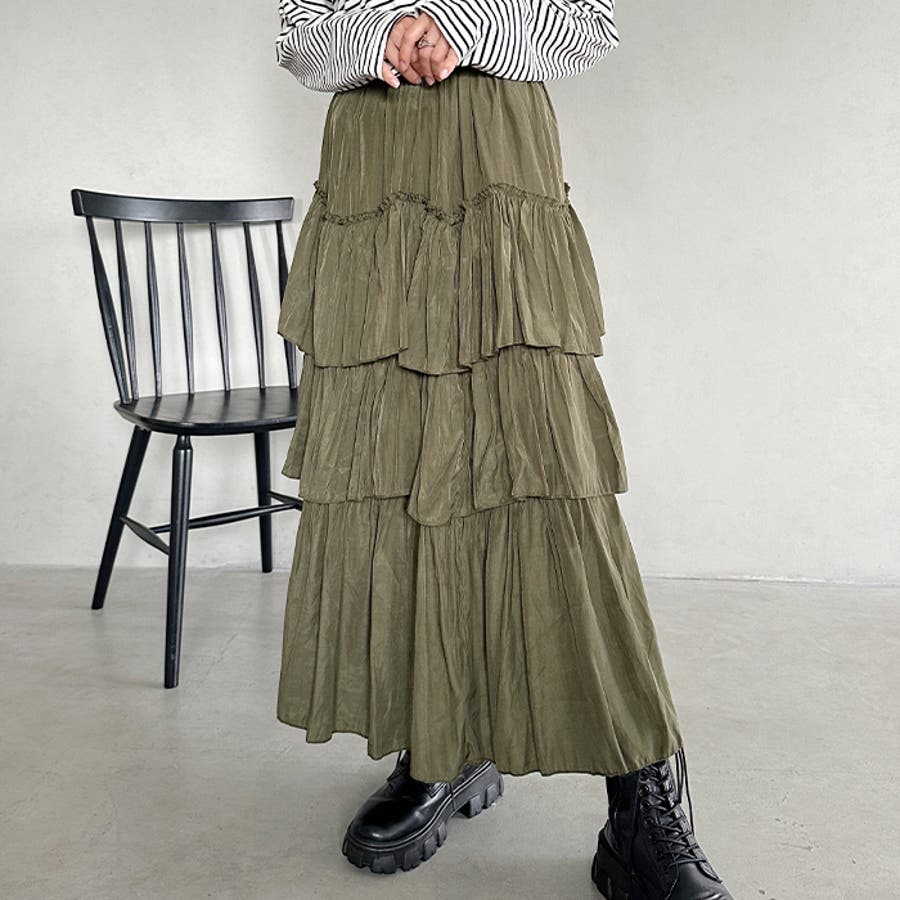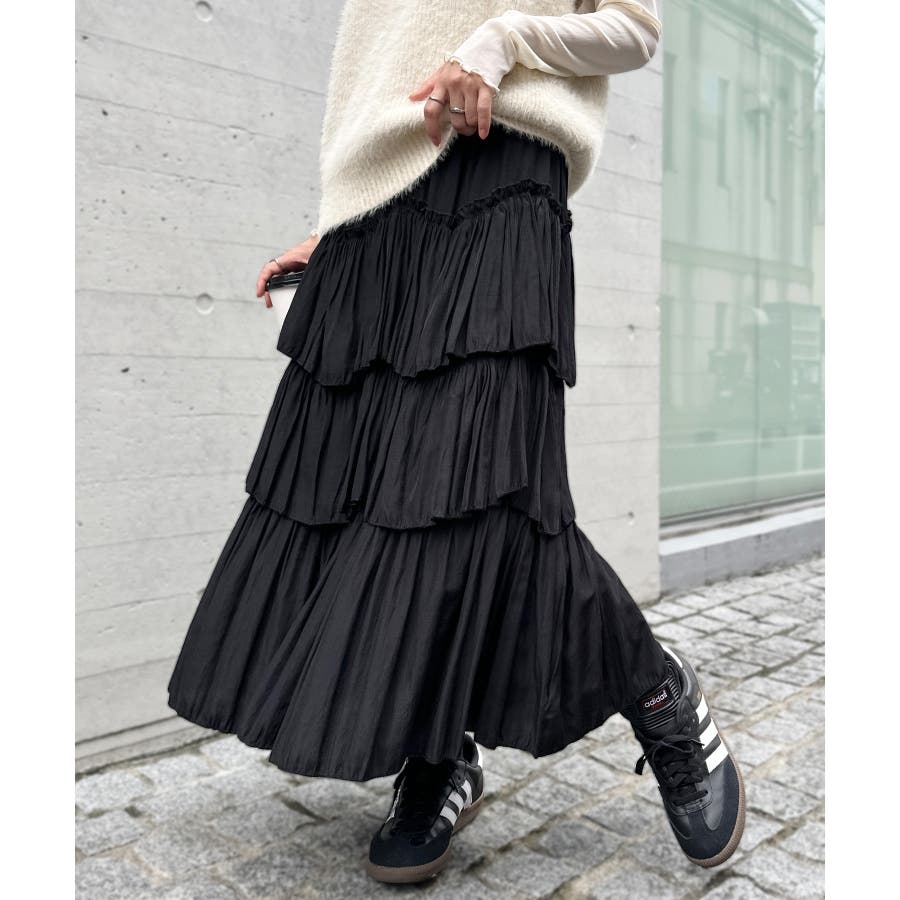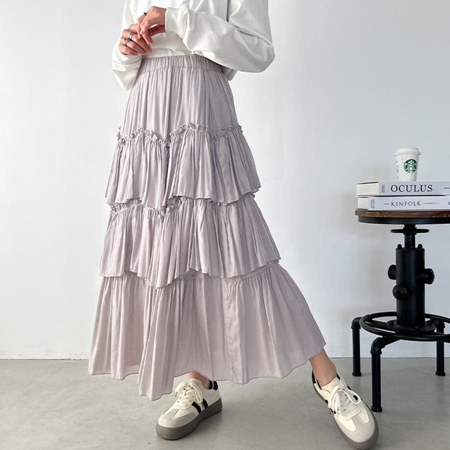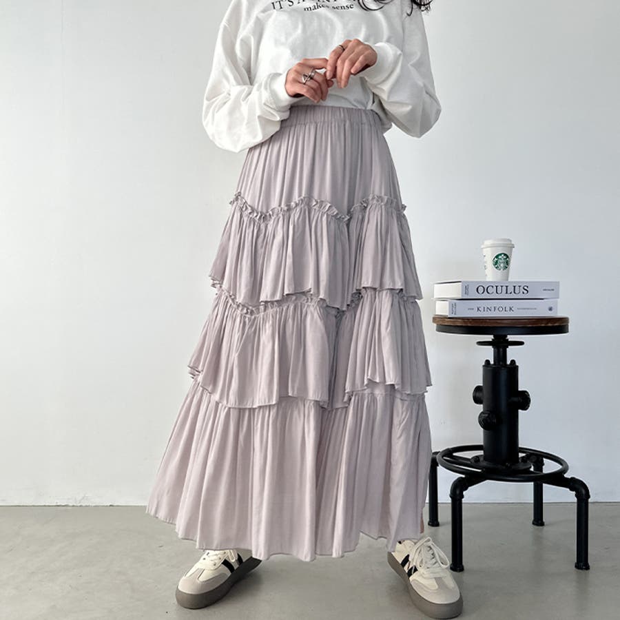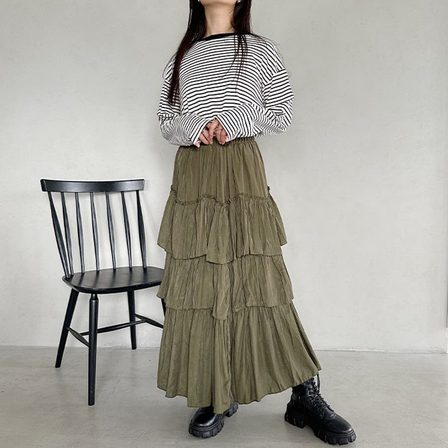 歩くたびに揺れるフレア感がおしゃれなティアードスカート。
