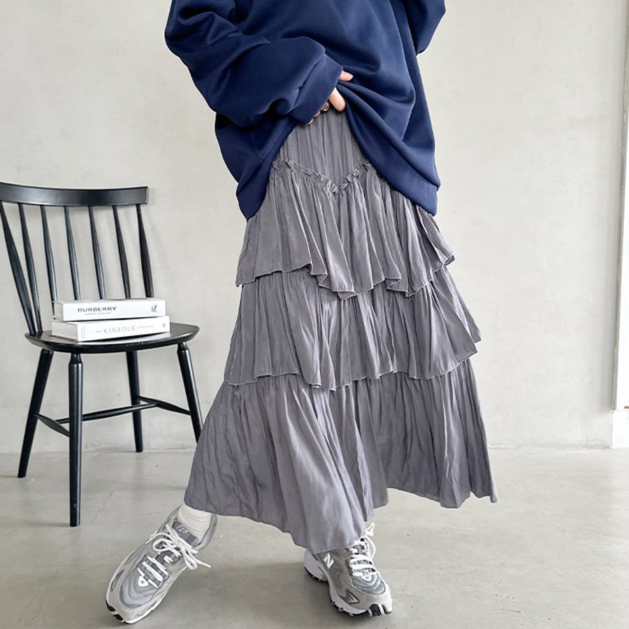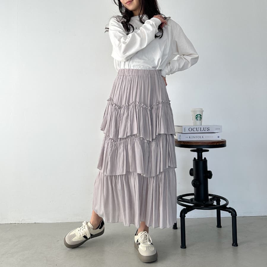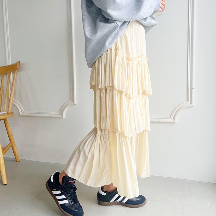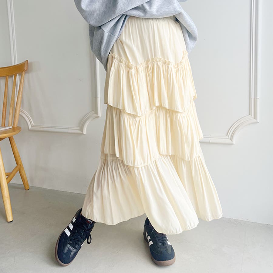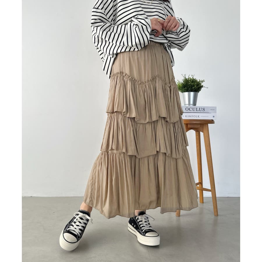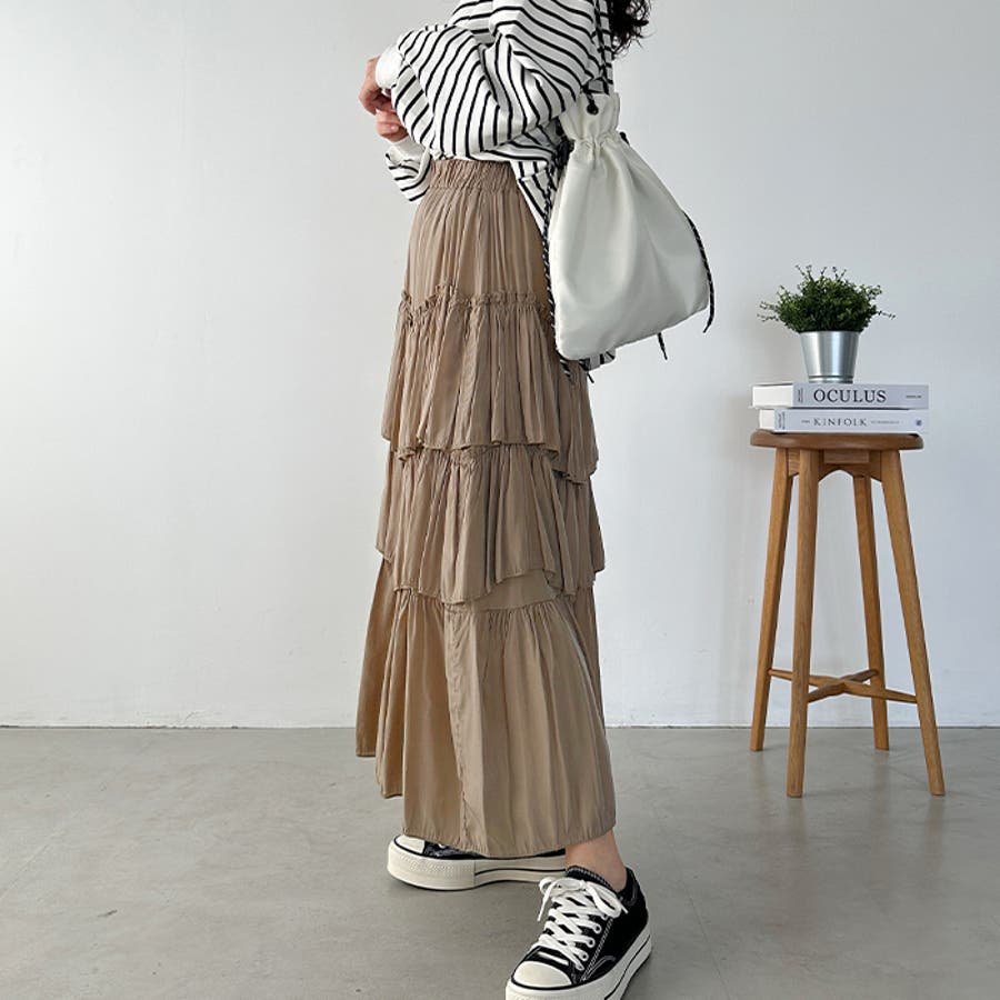 歩くたびに揺れるフレア感がおしゃれなティアードスカート。