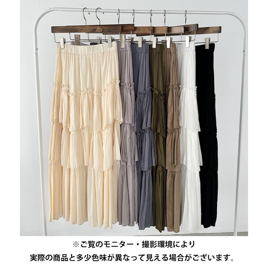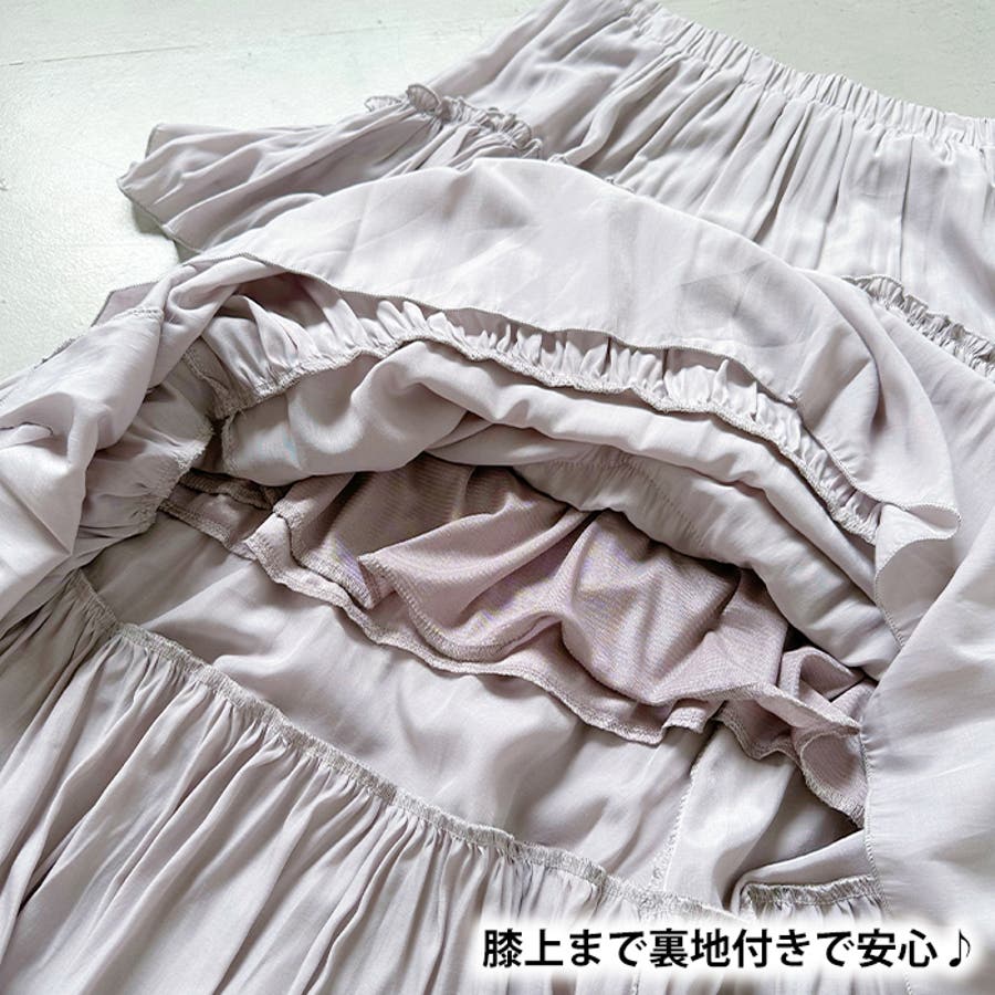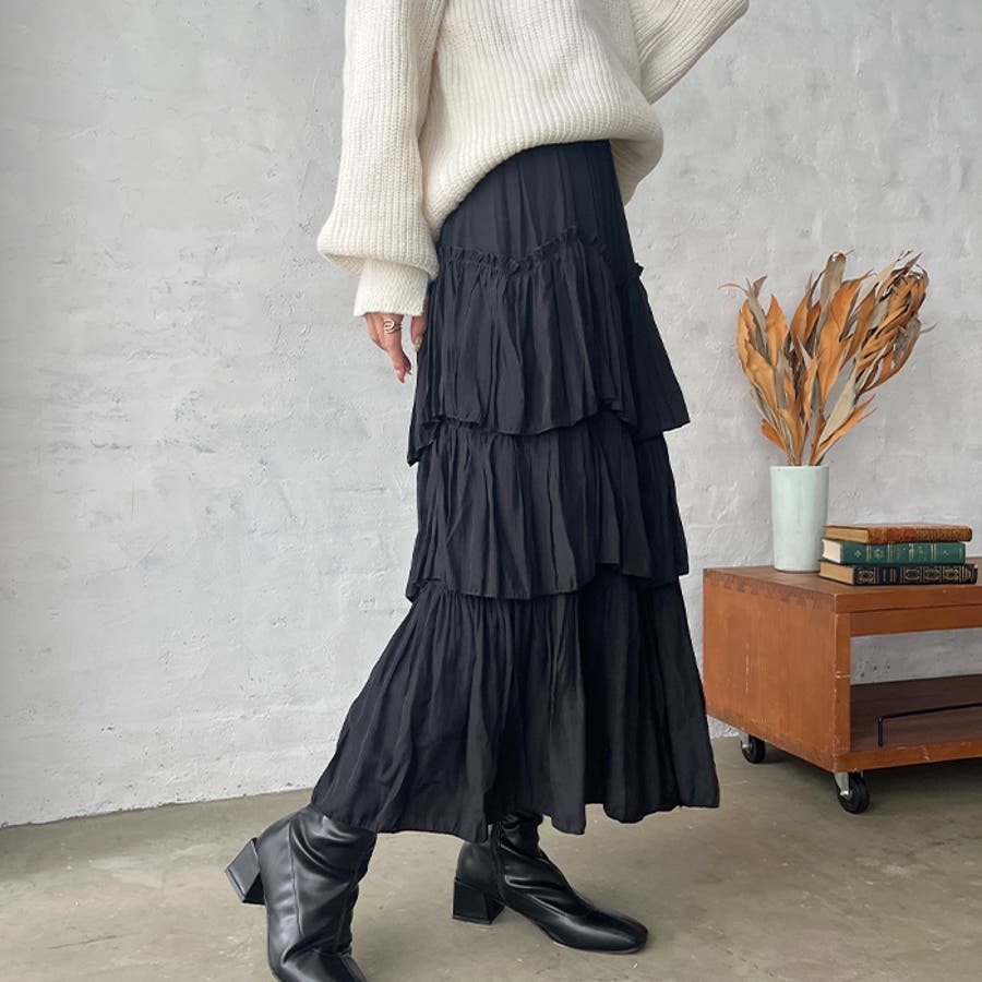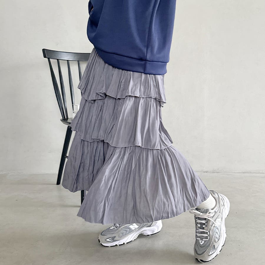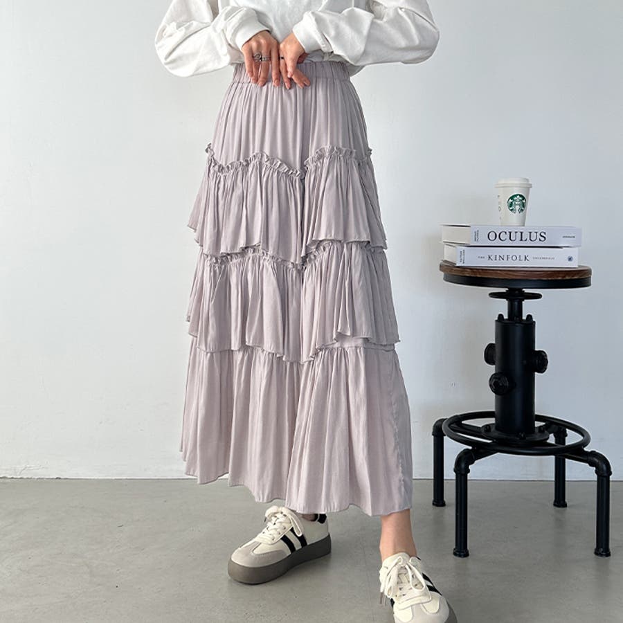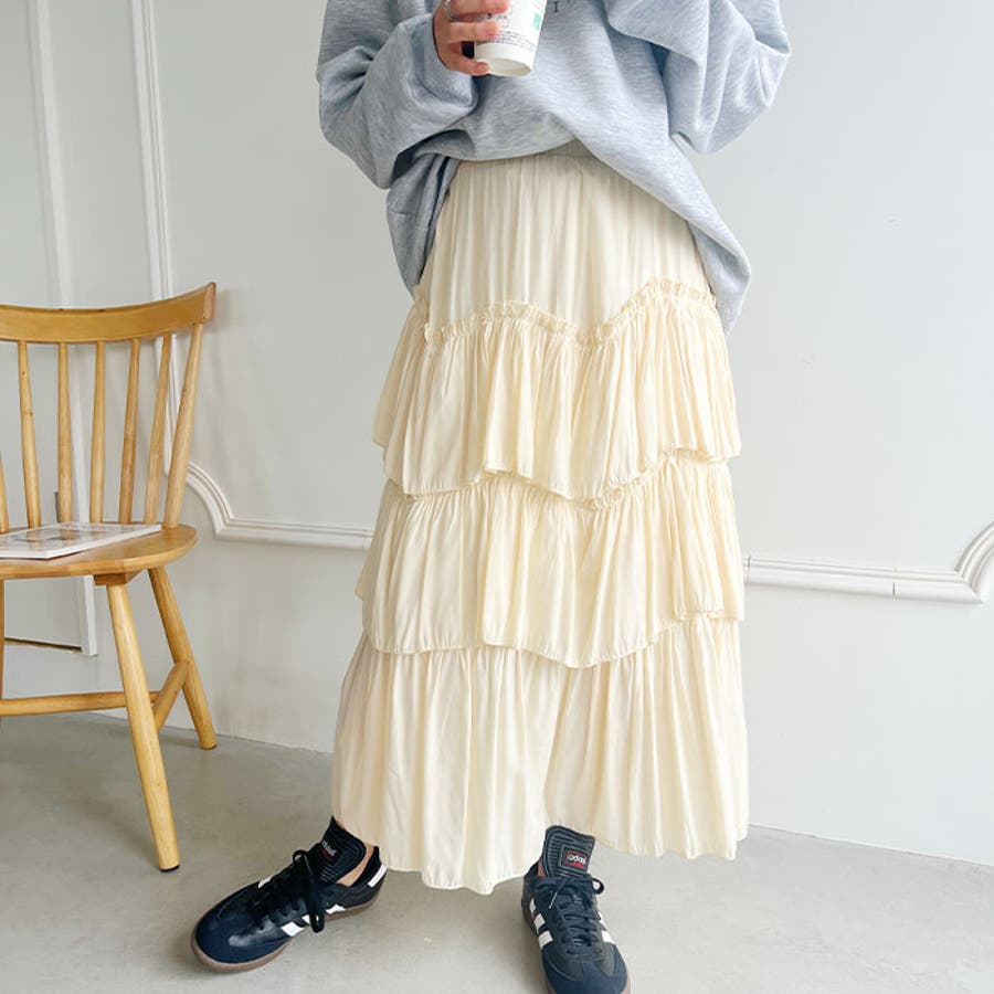 歩くたびに揺れるフレア感がおしゃれなティアードスカート。
