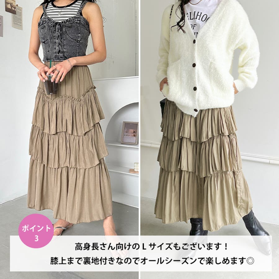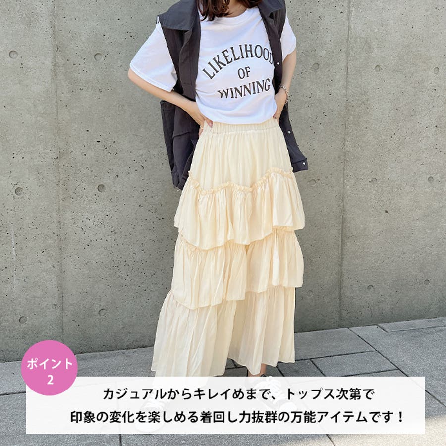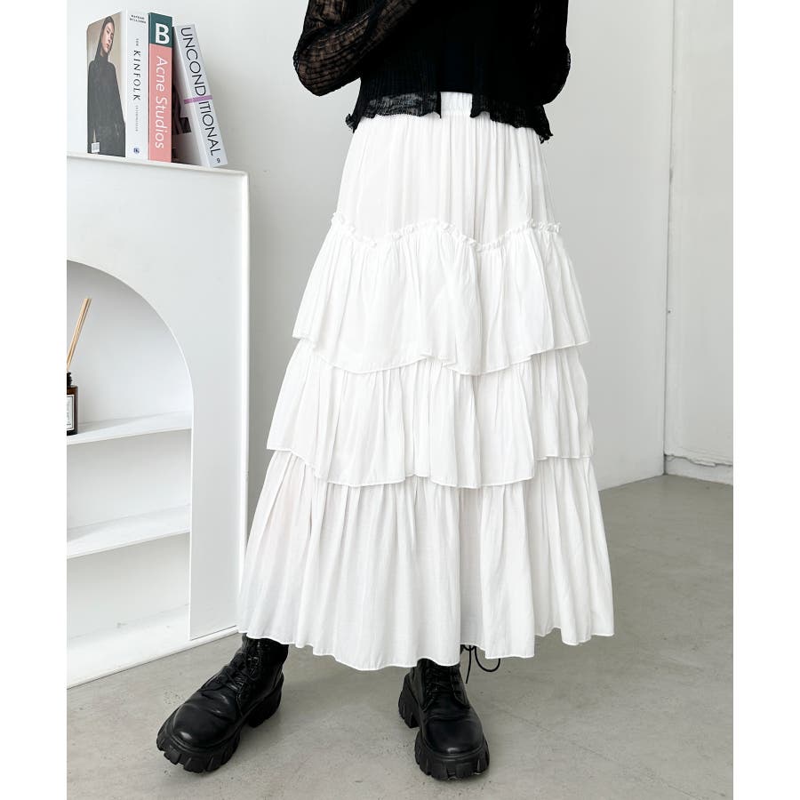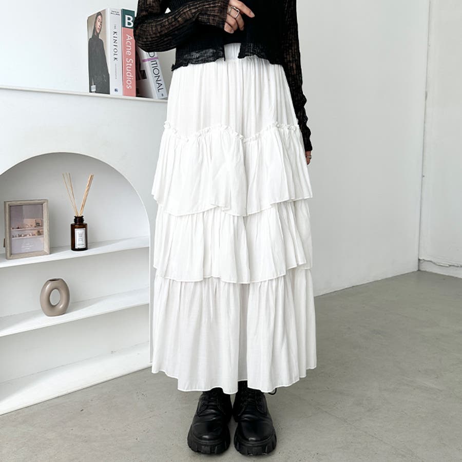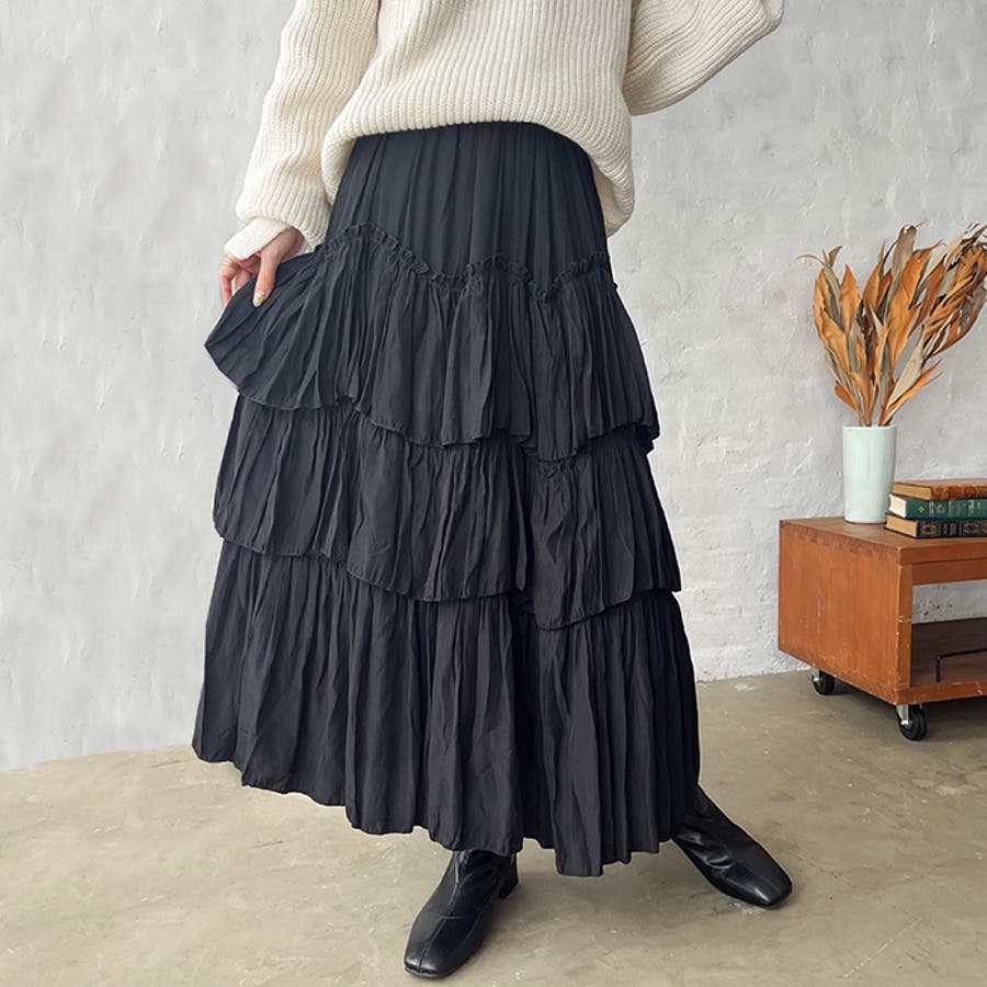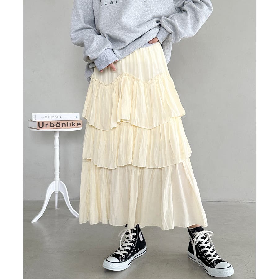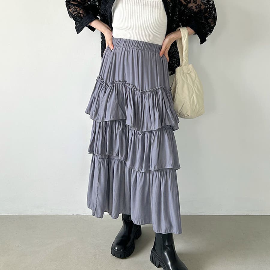 歩くたびに揺れるフレア感がおしゃれなティアードスカート。