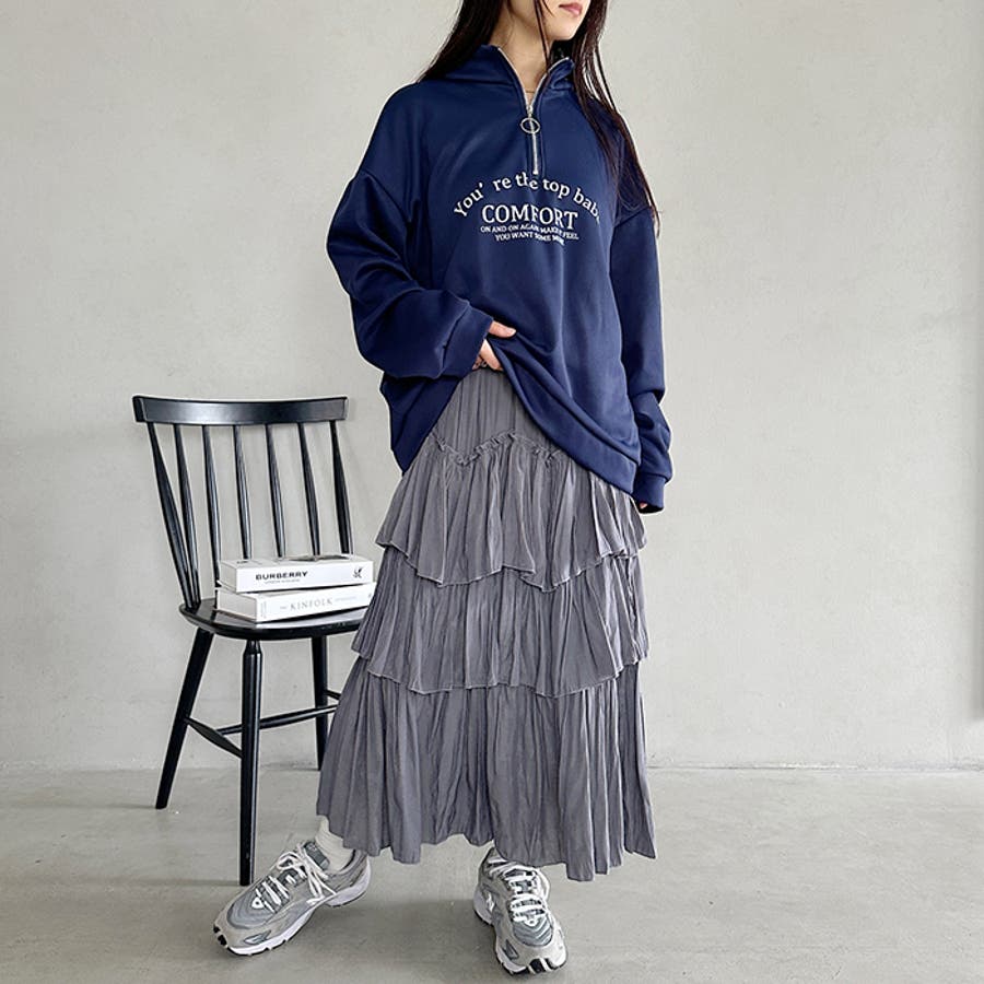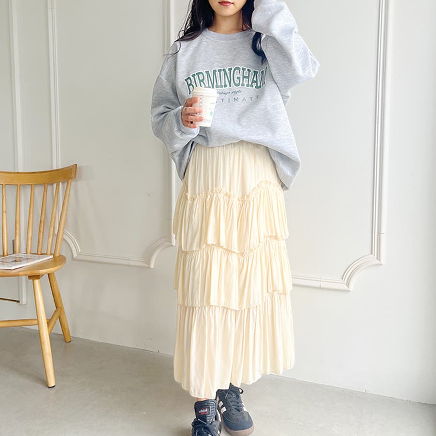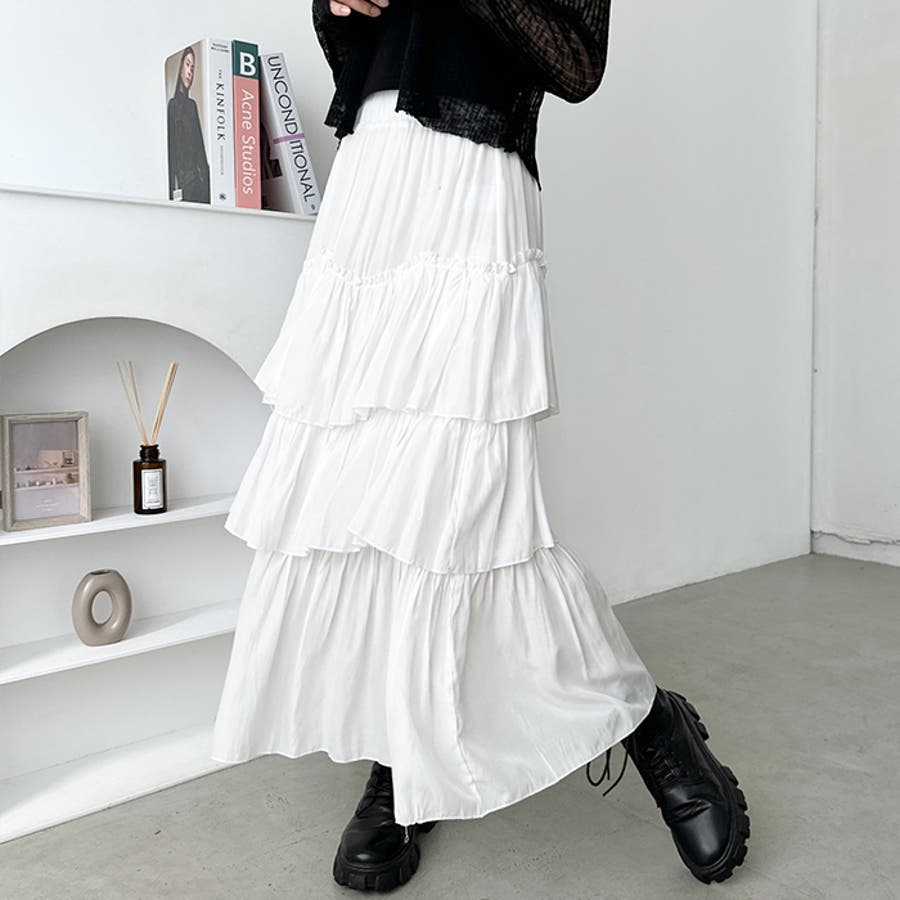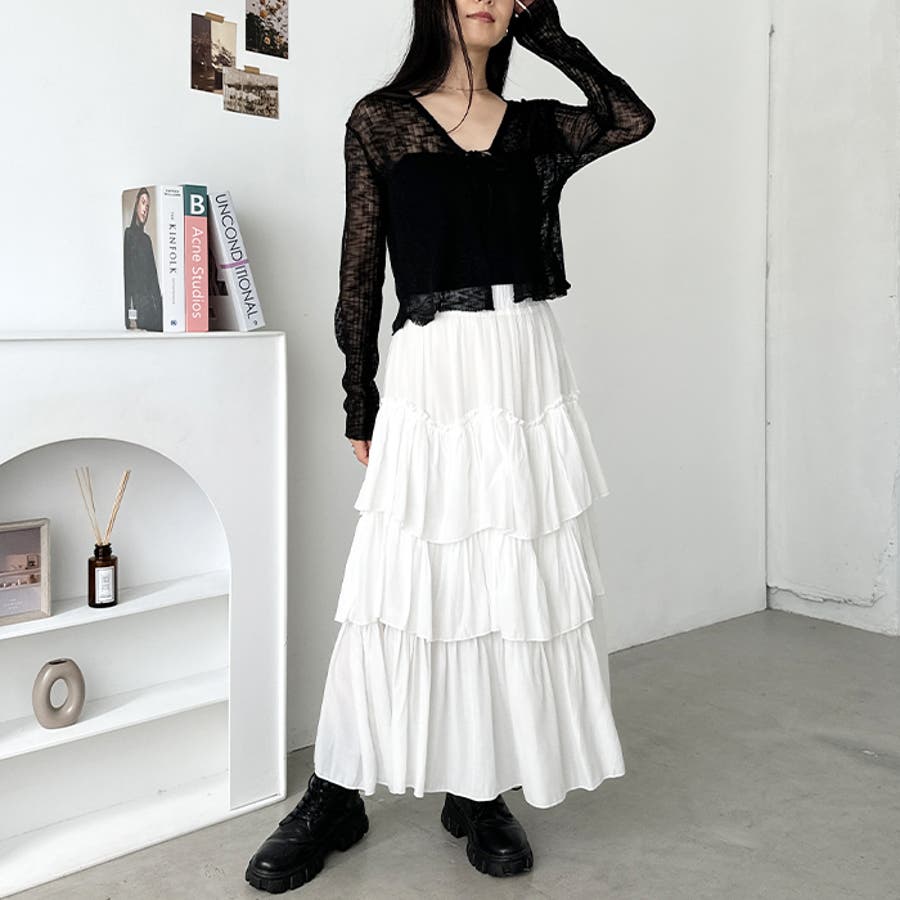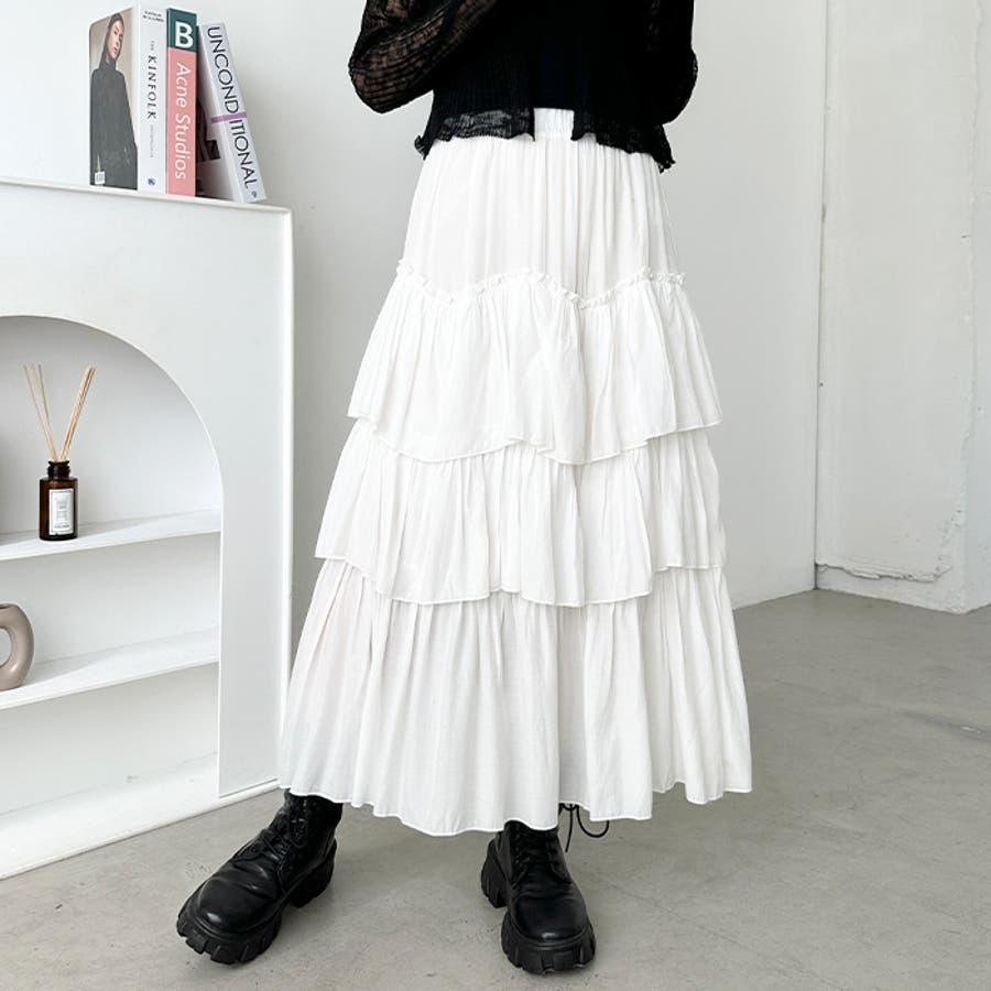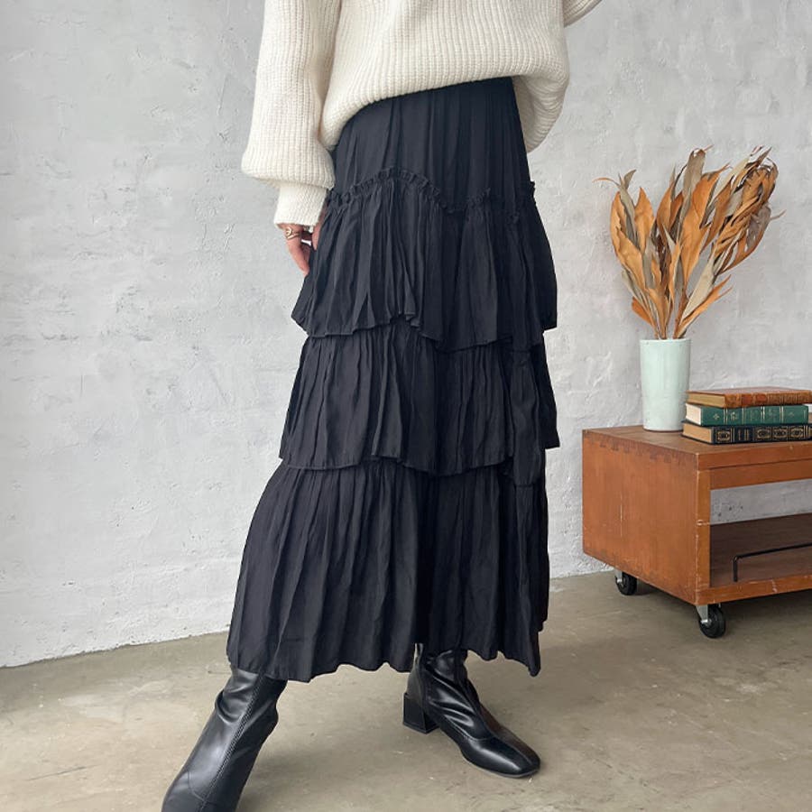歩くたびに揺れるフレア感がおしゃれなティアードスカート。