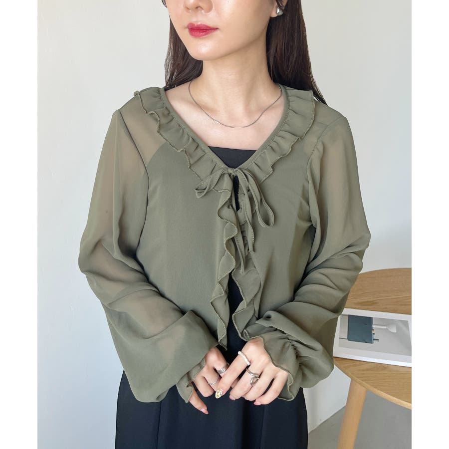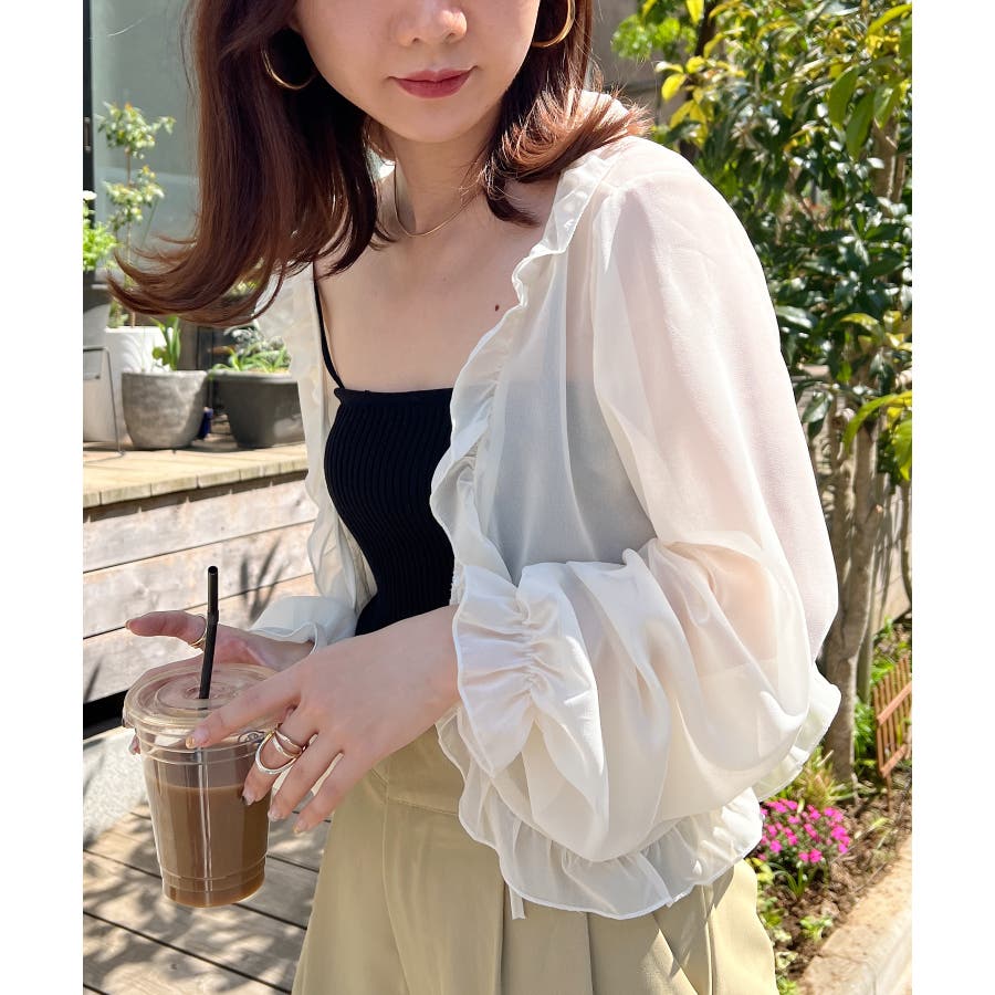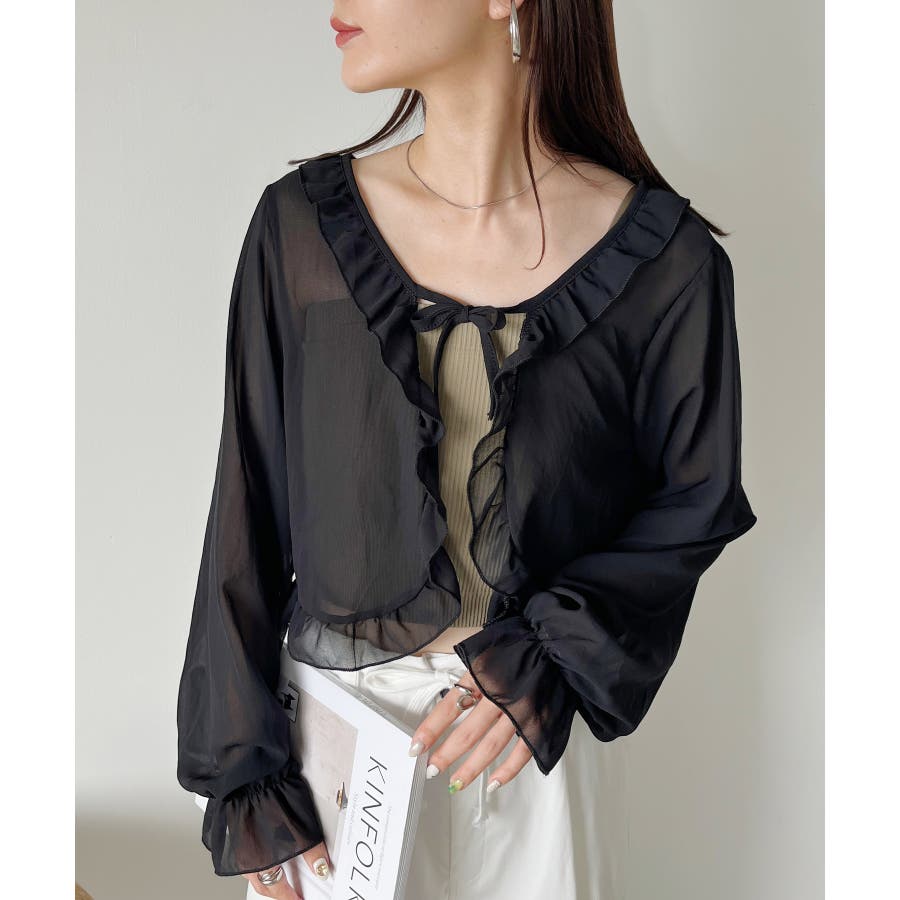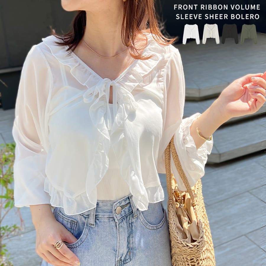 フロントリボン ボリュームスリーブシアーボレロ
