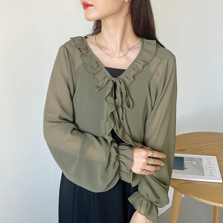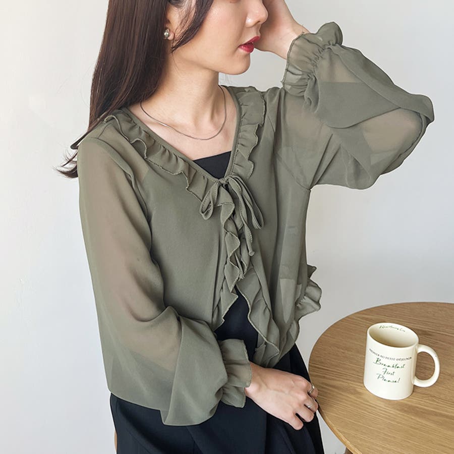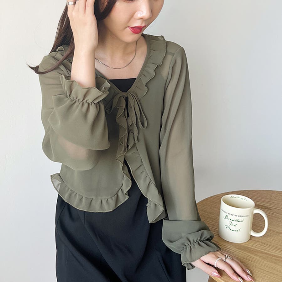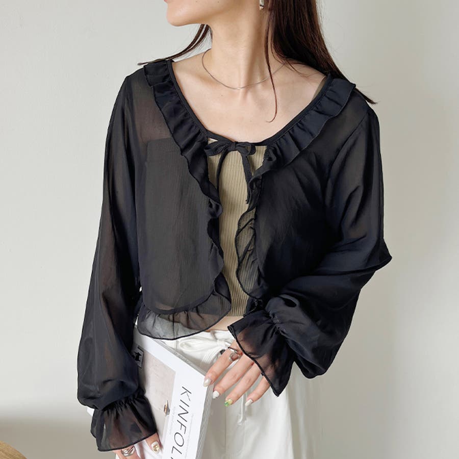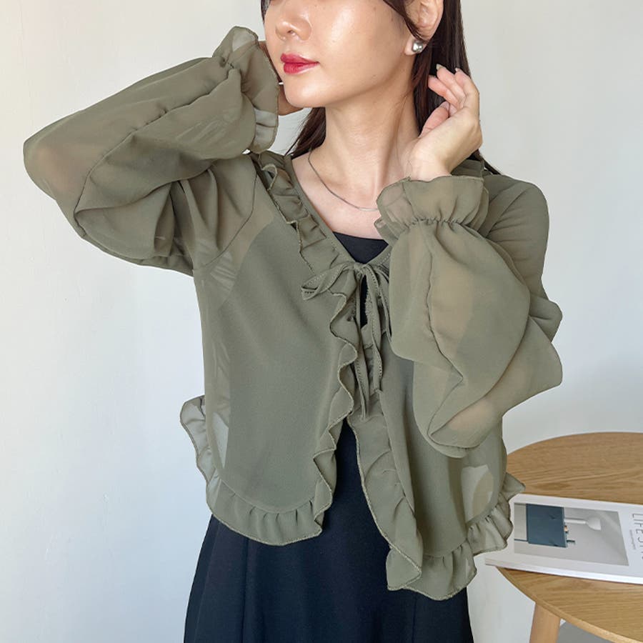 フロントリボン ボリュームスリーブシアーボレロ
