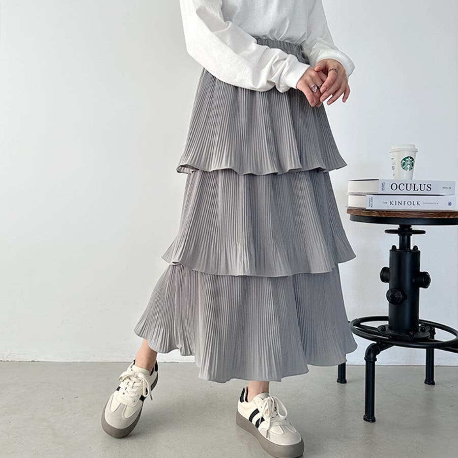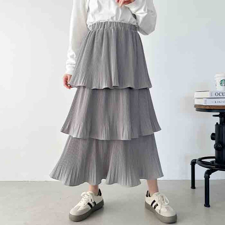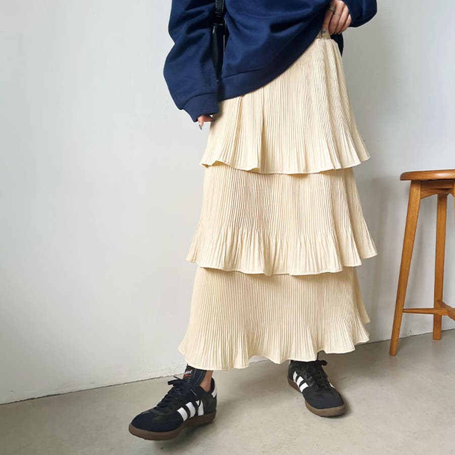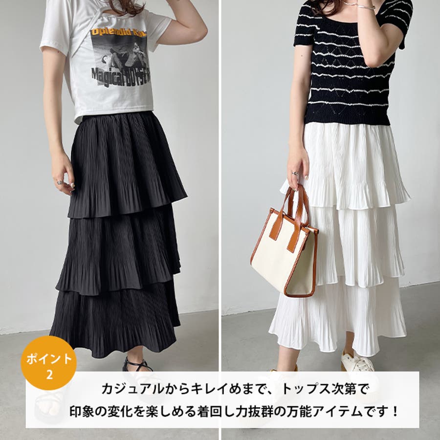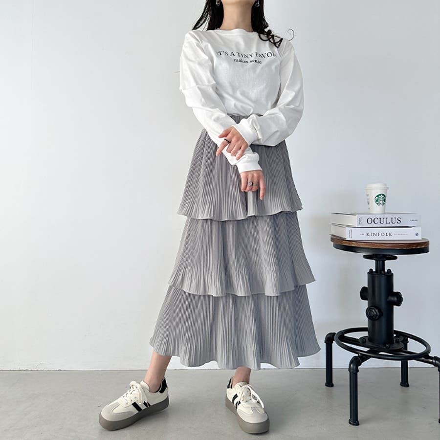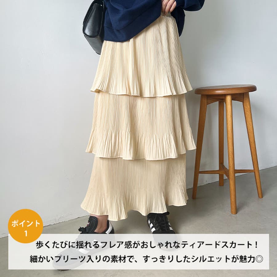 歩くたびに揺れるフレア感がおしゃれなティアードスカート◎