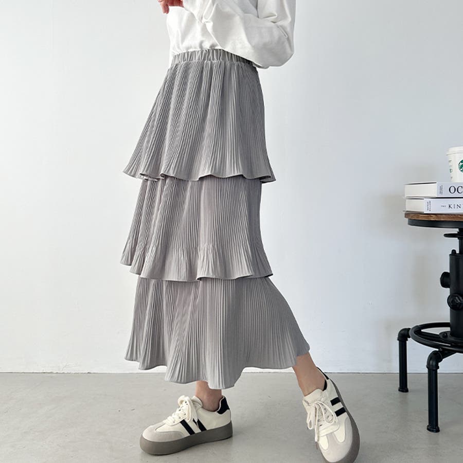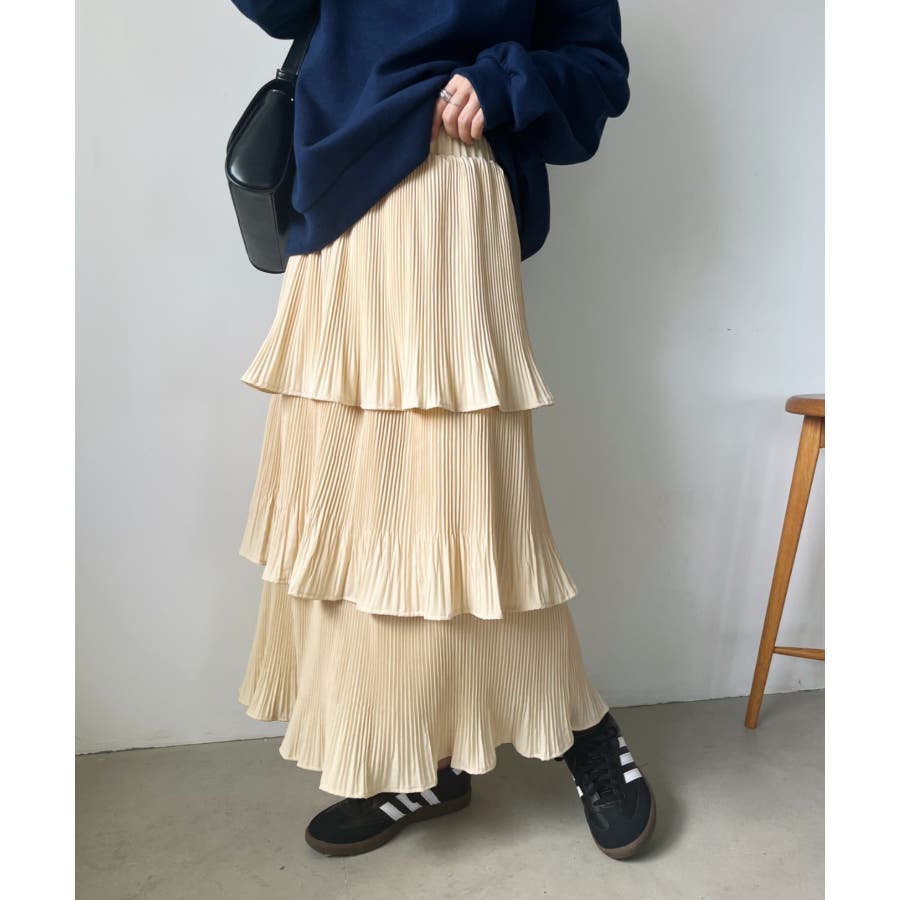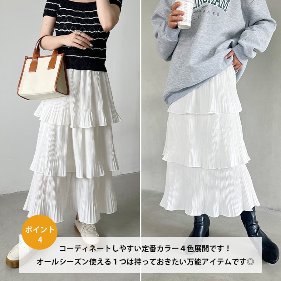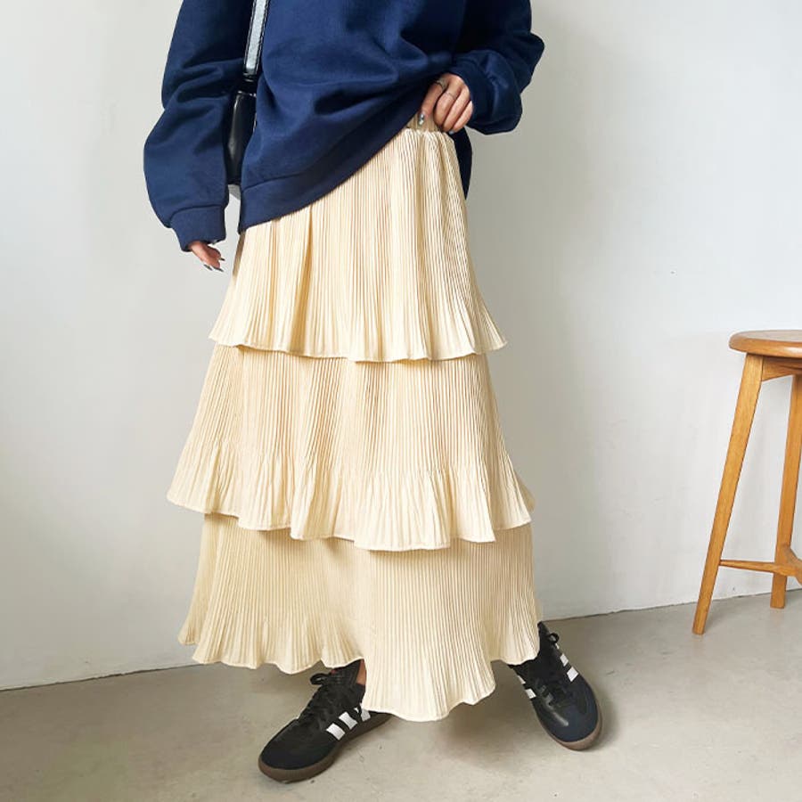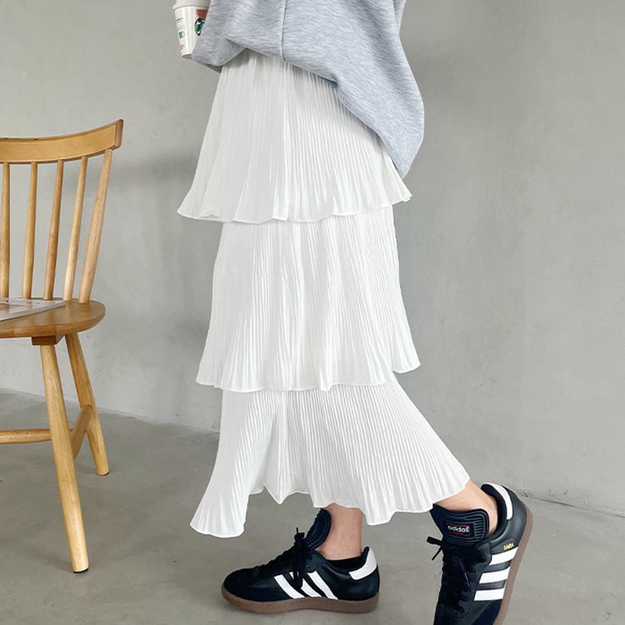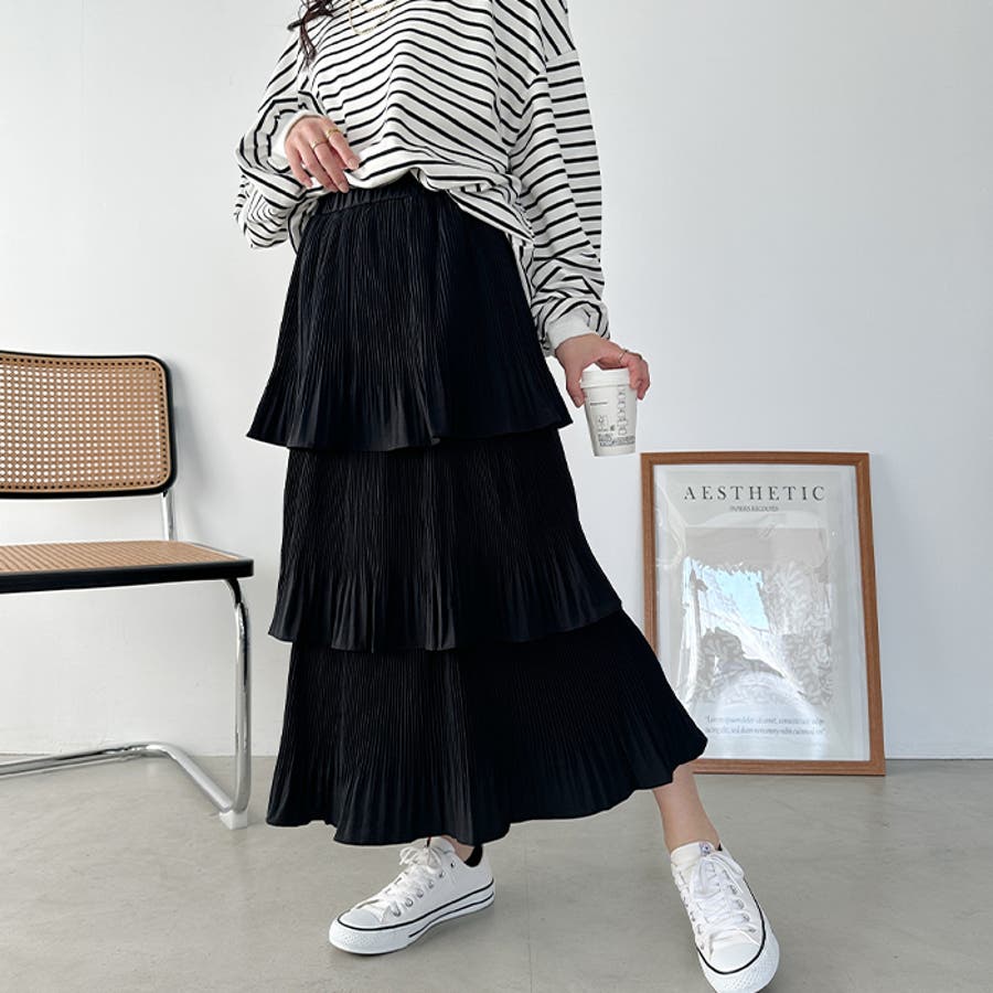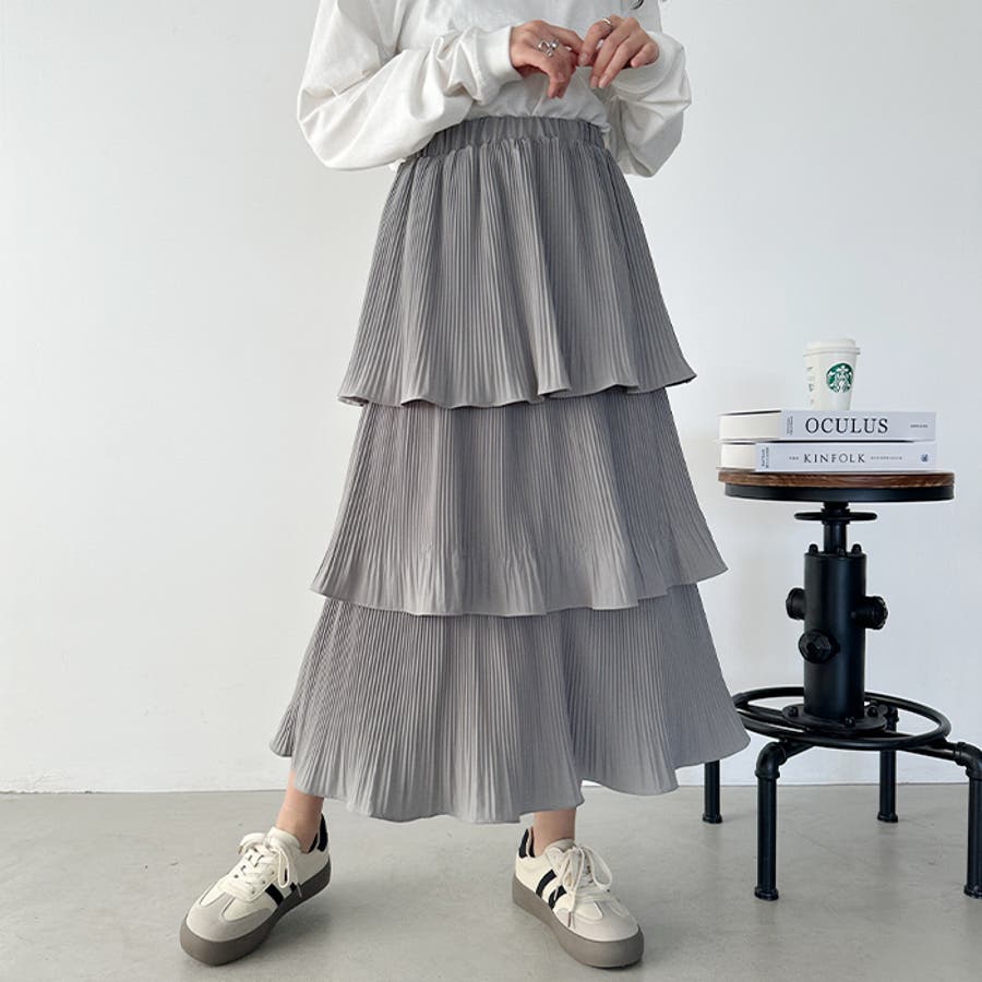 歩くたびに揺れるフレア感がおしゃれなティアードスカート◎
