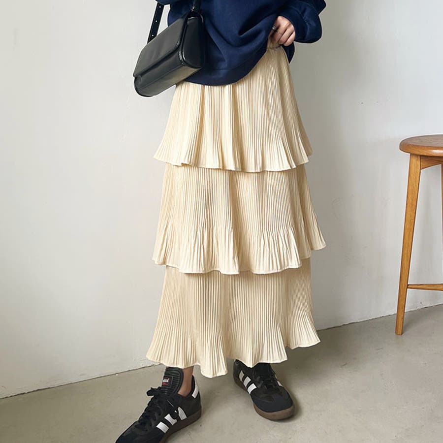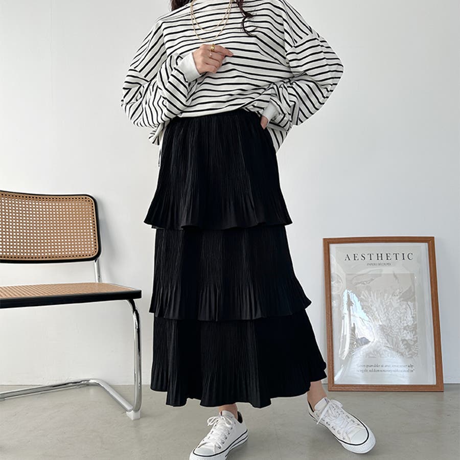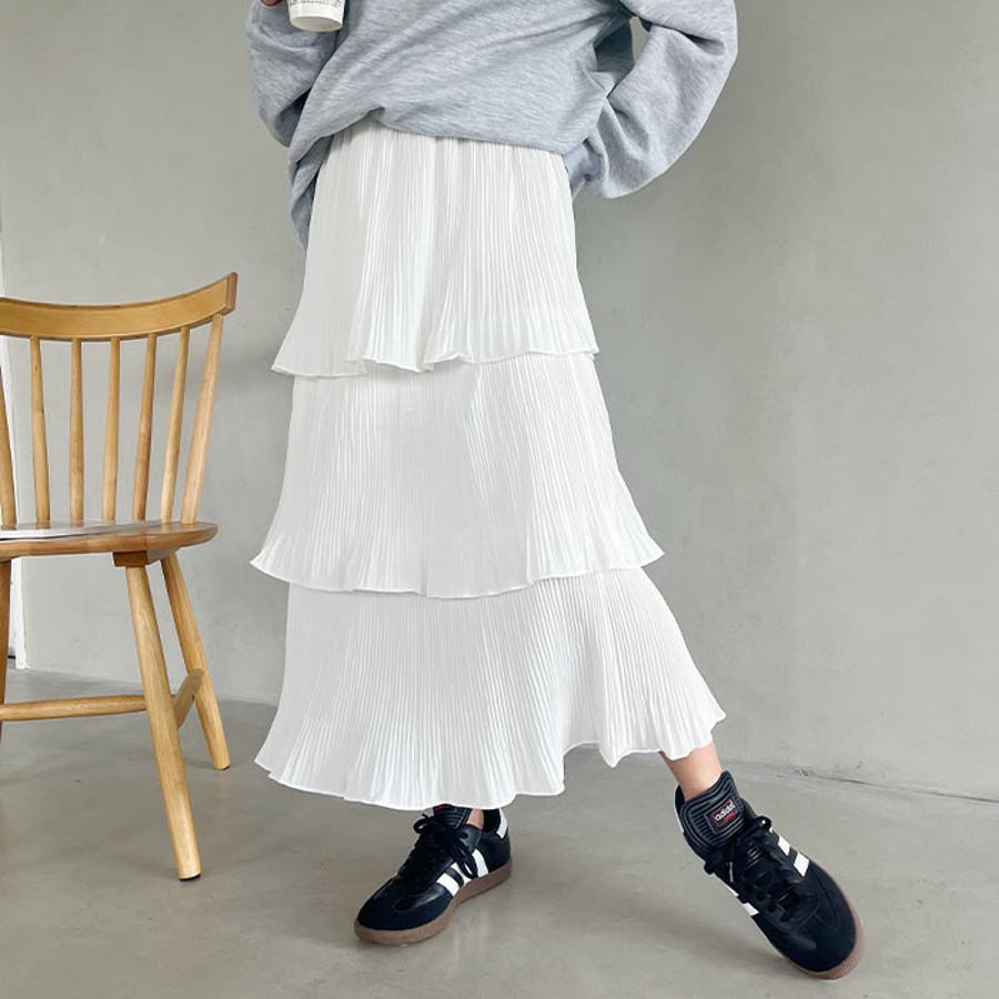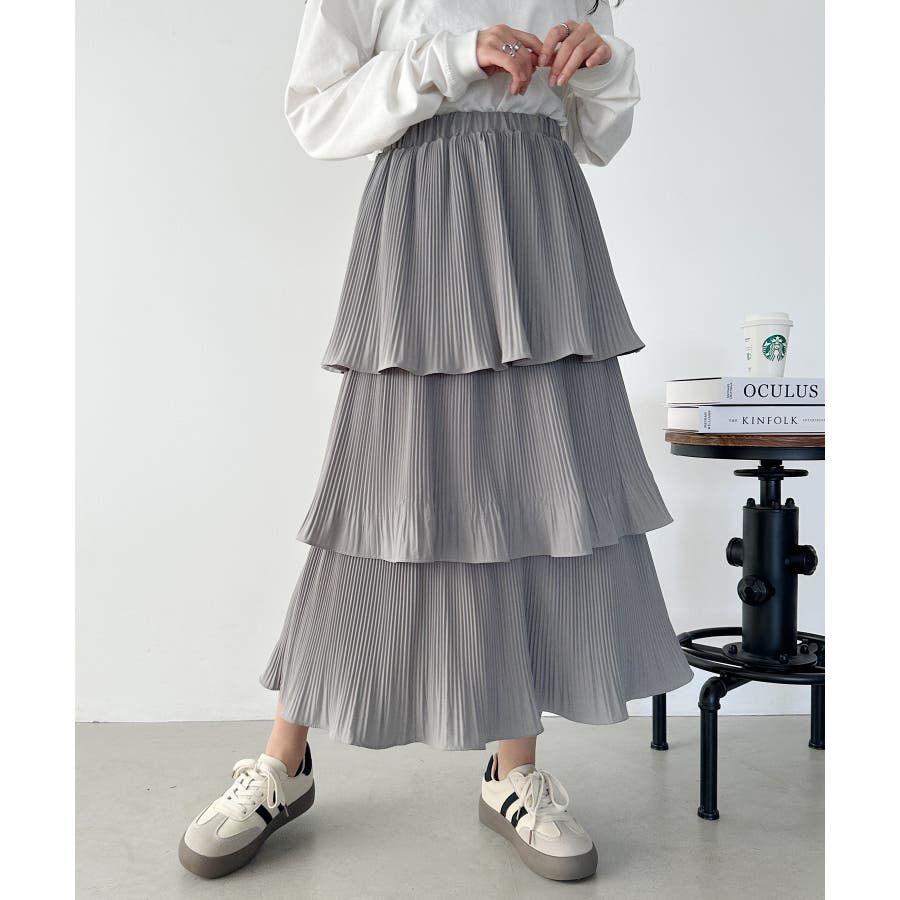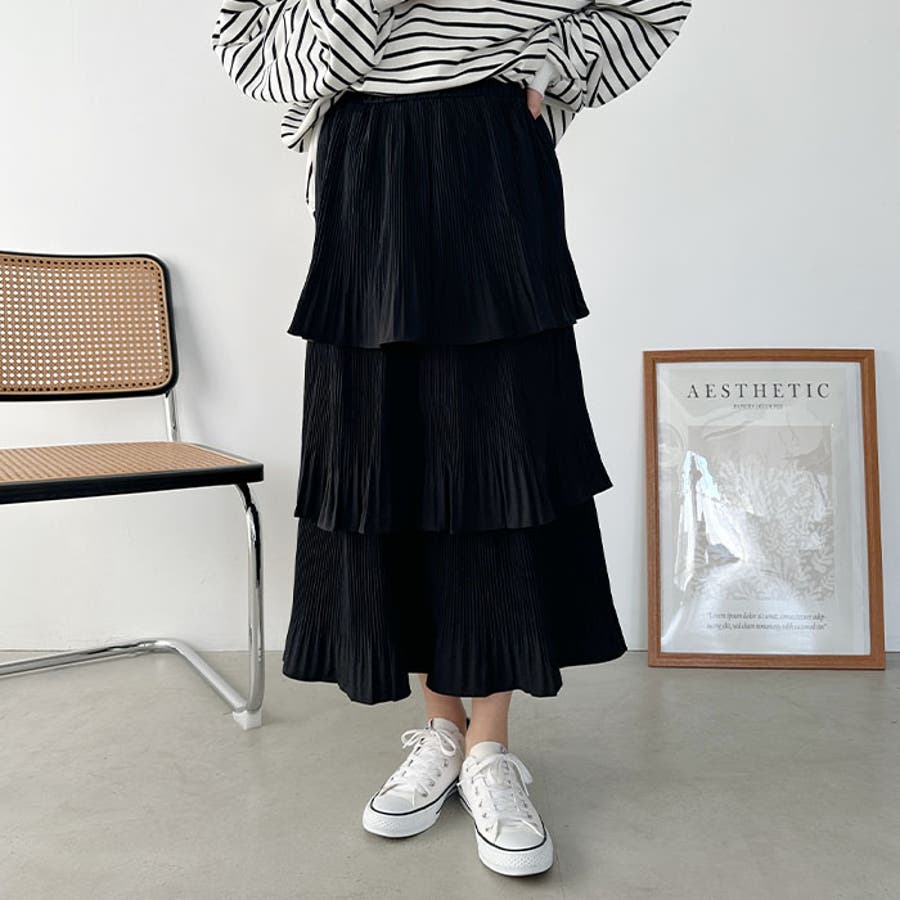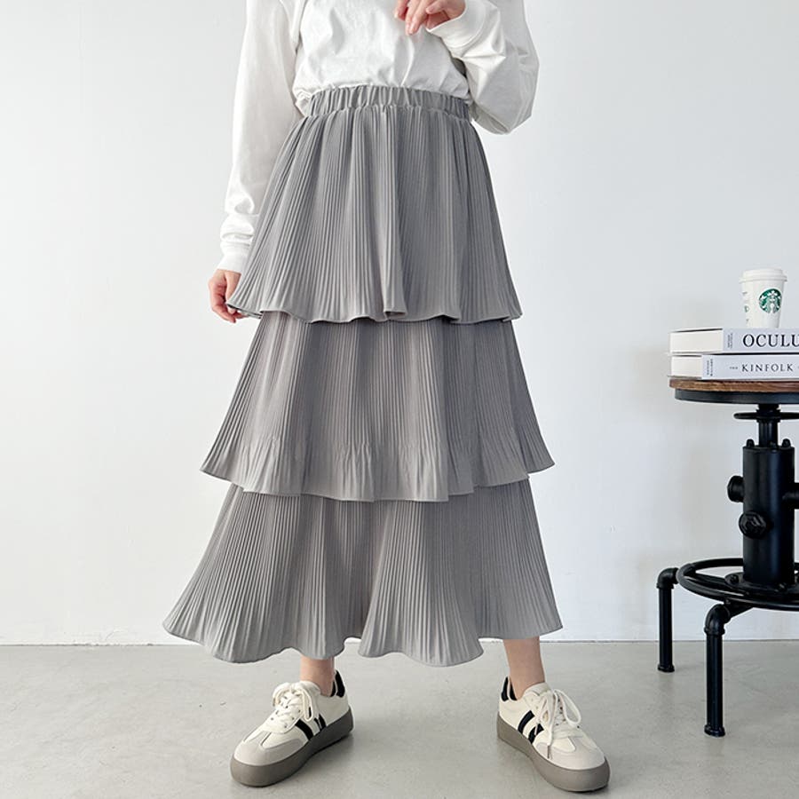 歩くたびに揺れるフレア感がおしゃれなティアードスカート◎