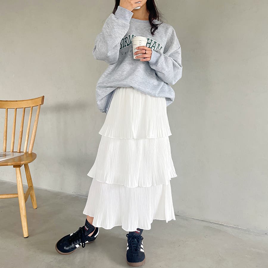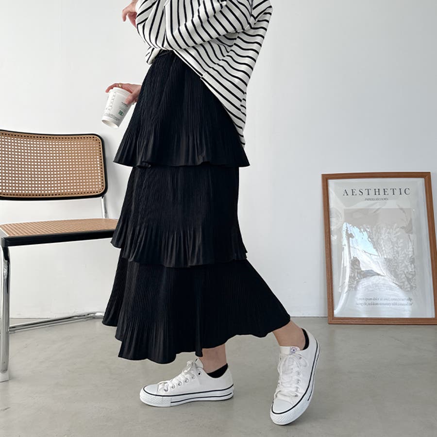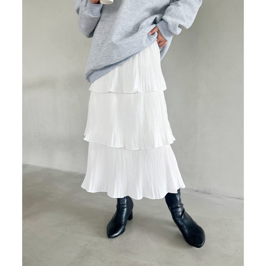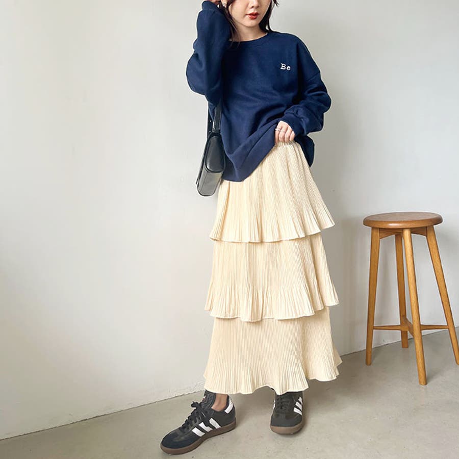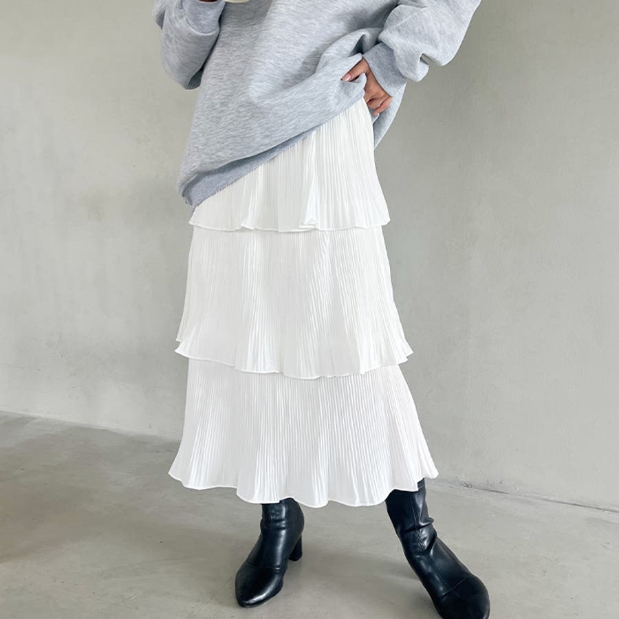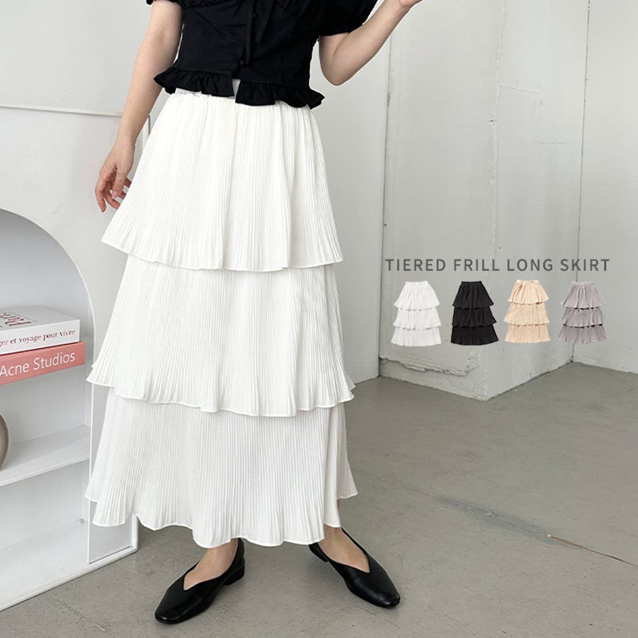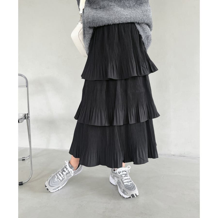 歩くたびに揺れるフレア感がおしゃれなティアードスカート◎