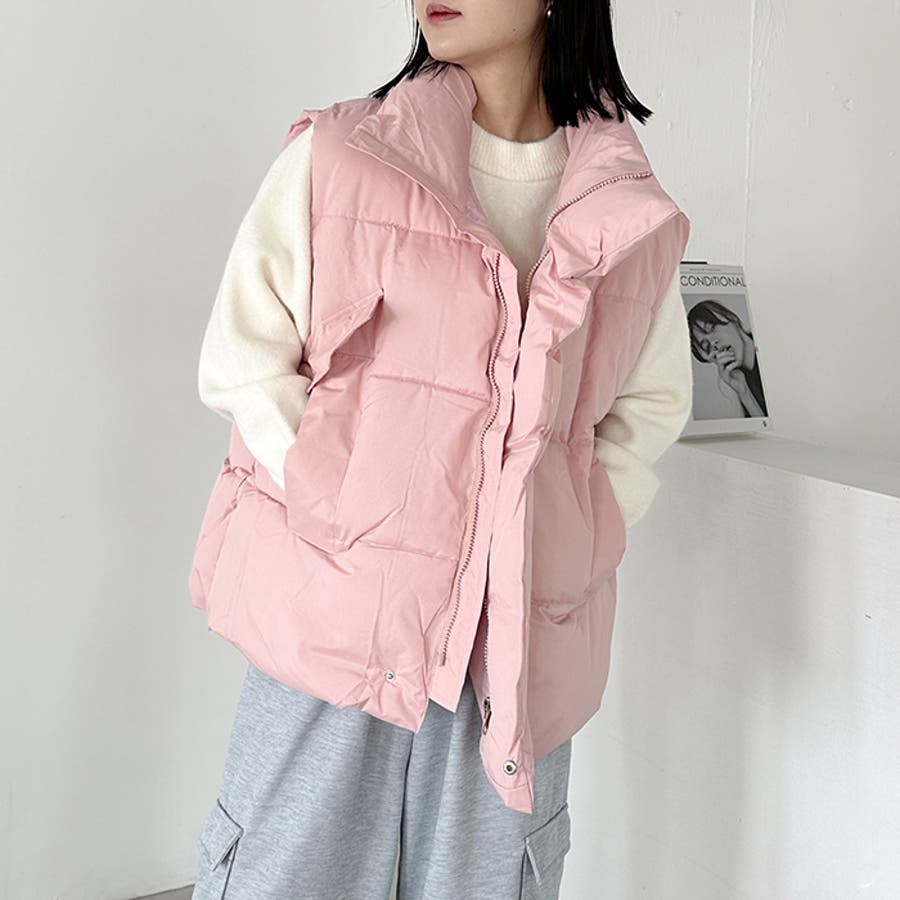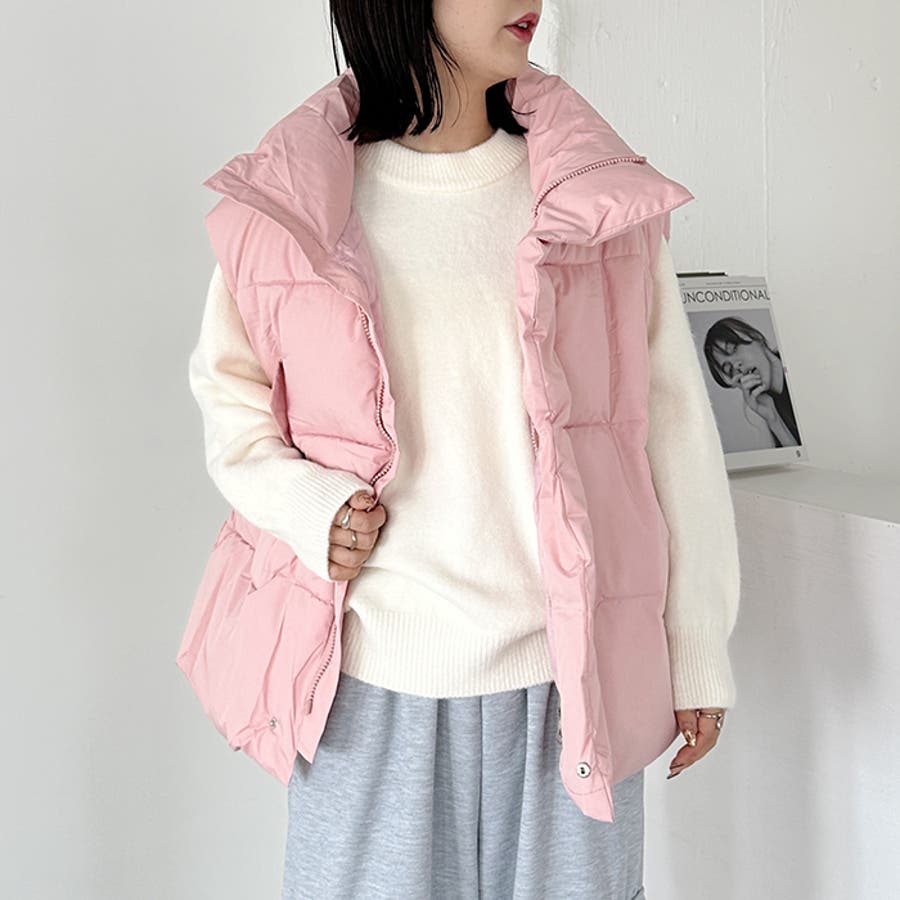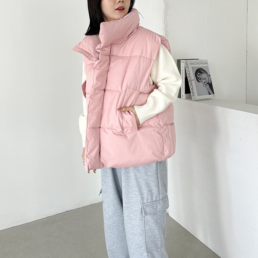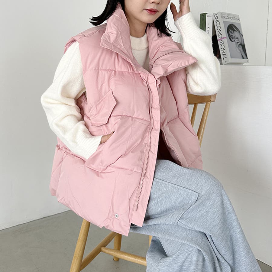 スタンドカラーフェイクダウンオーバーサイズベスト