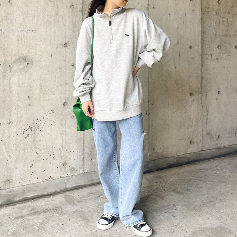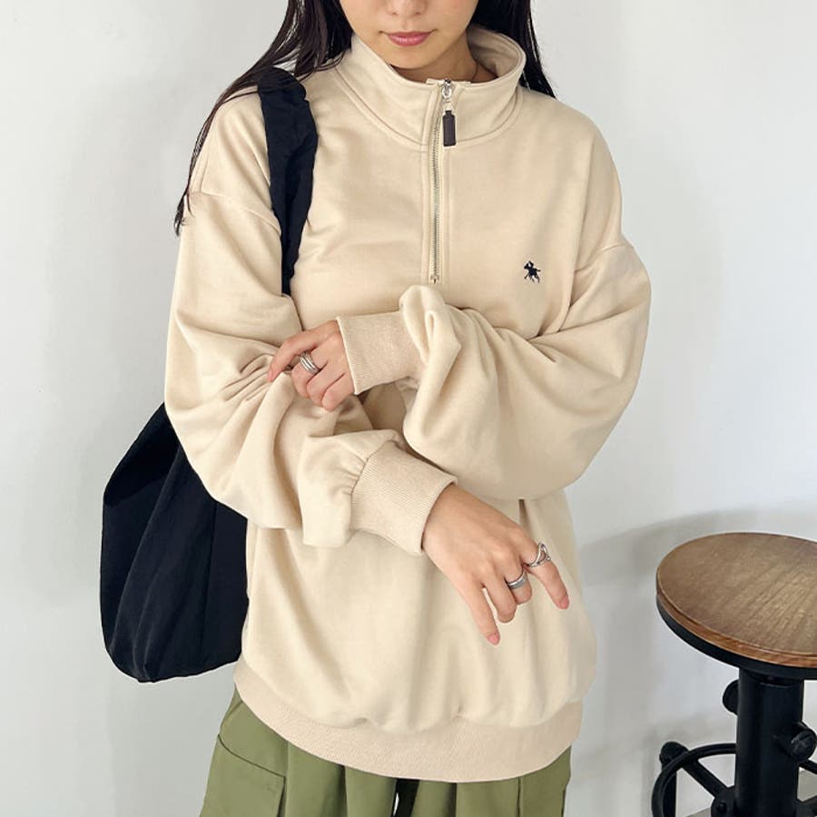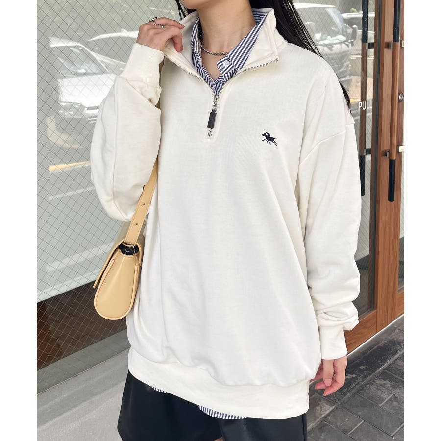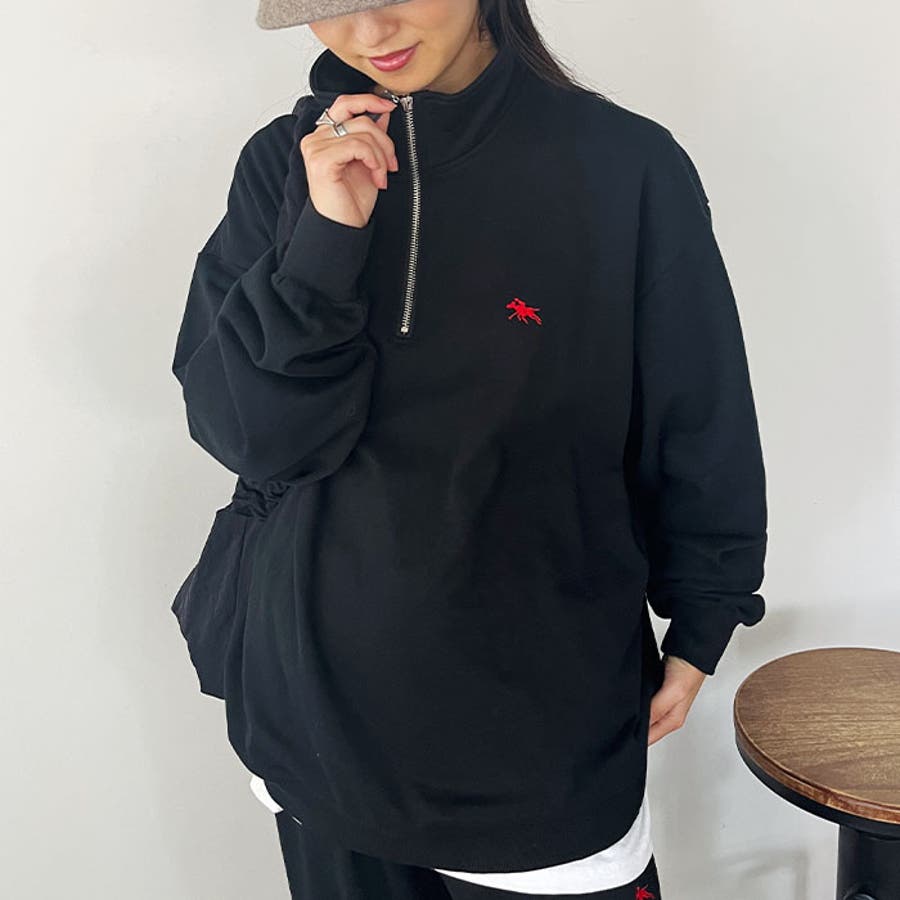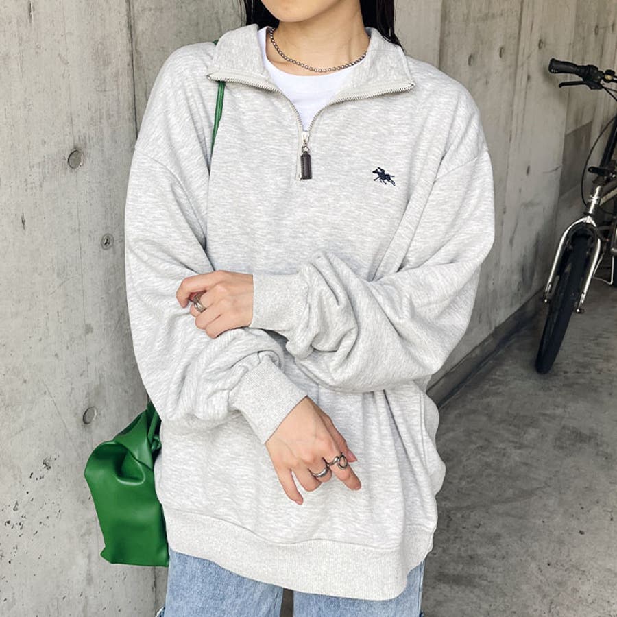 ブランドモチーフのワンポイント刺繍がアクセントになるハーフジップスウェット◎