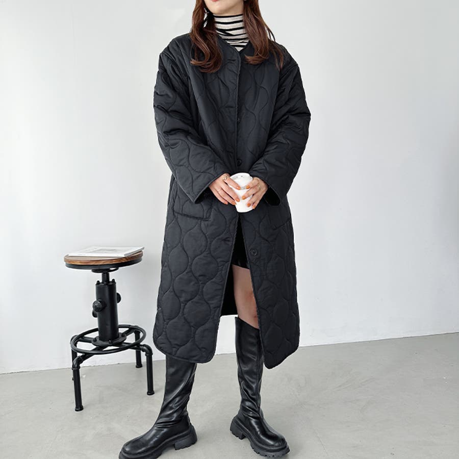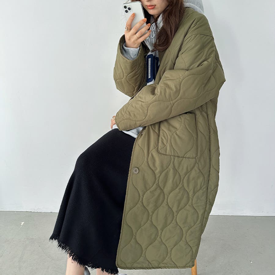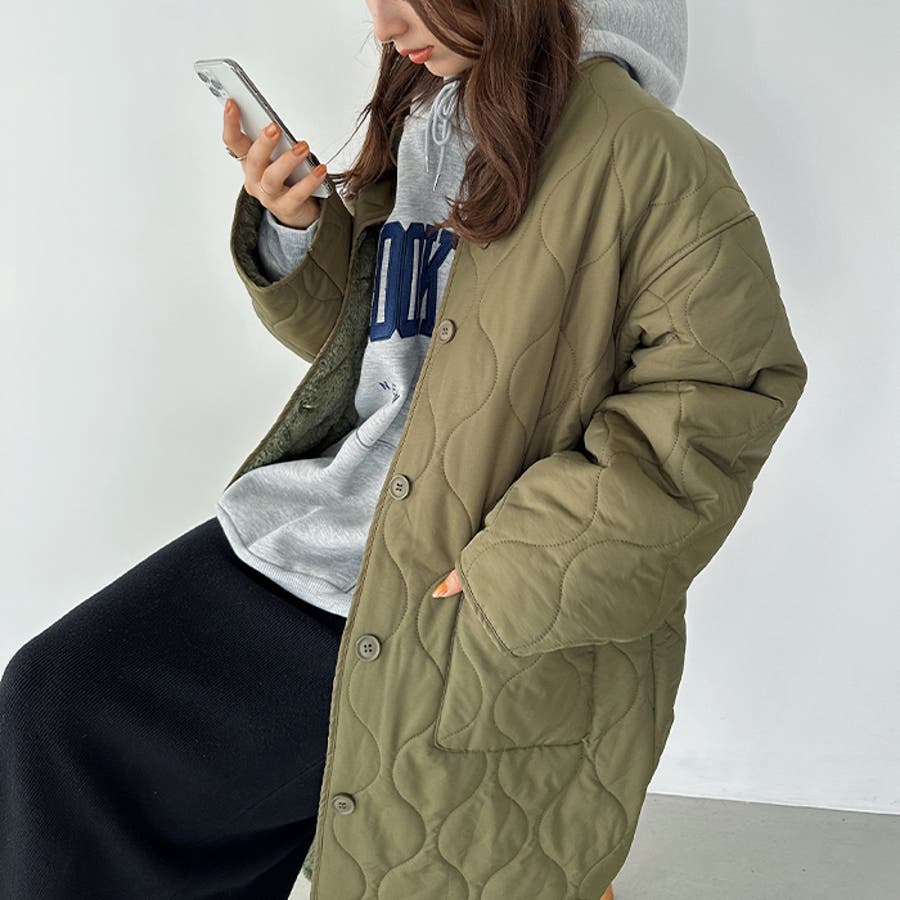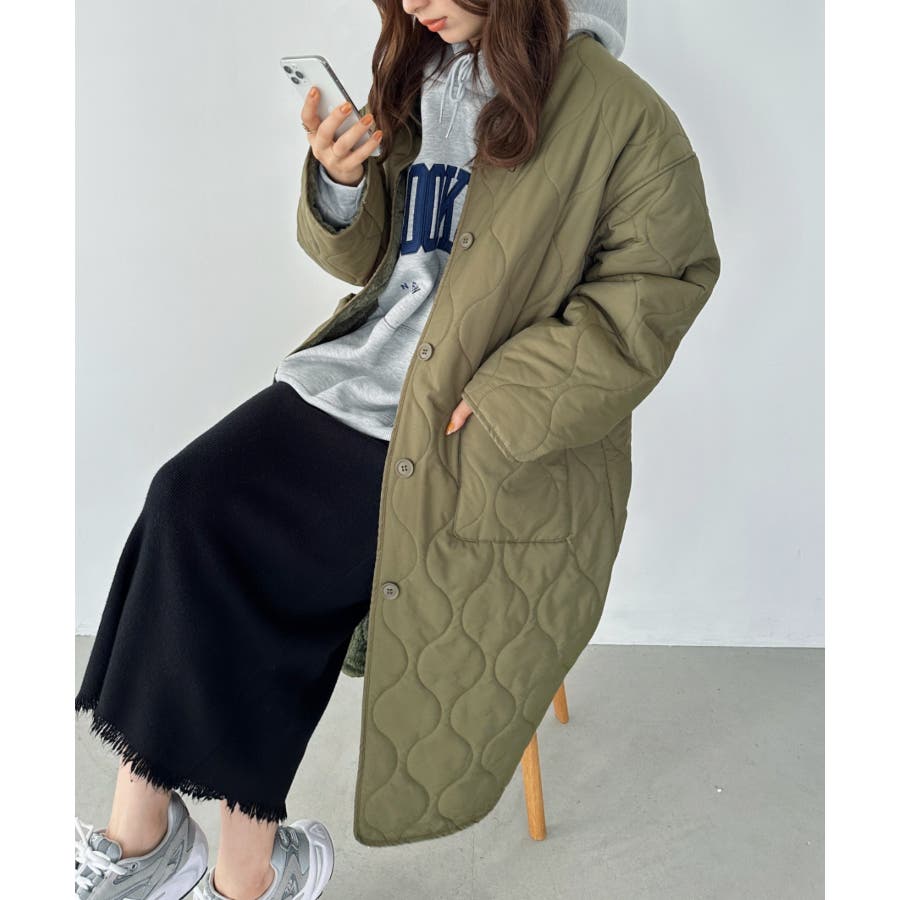 ■Pointルーズサイズ脚まで包み込んでくれるダボっと感がお洒落なキルティングコート◎