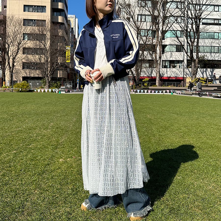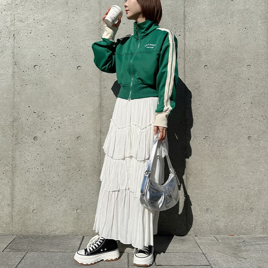 ロングのスカートやワンピース合わせて、外しアイテムとして着るのもトレンド♡