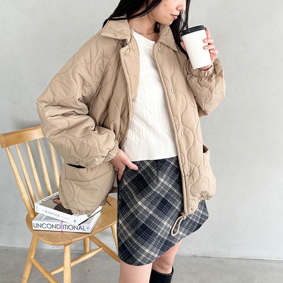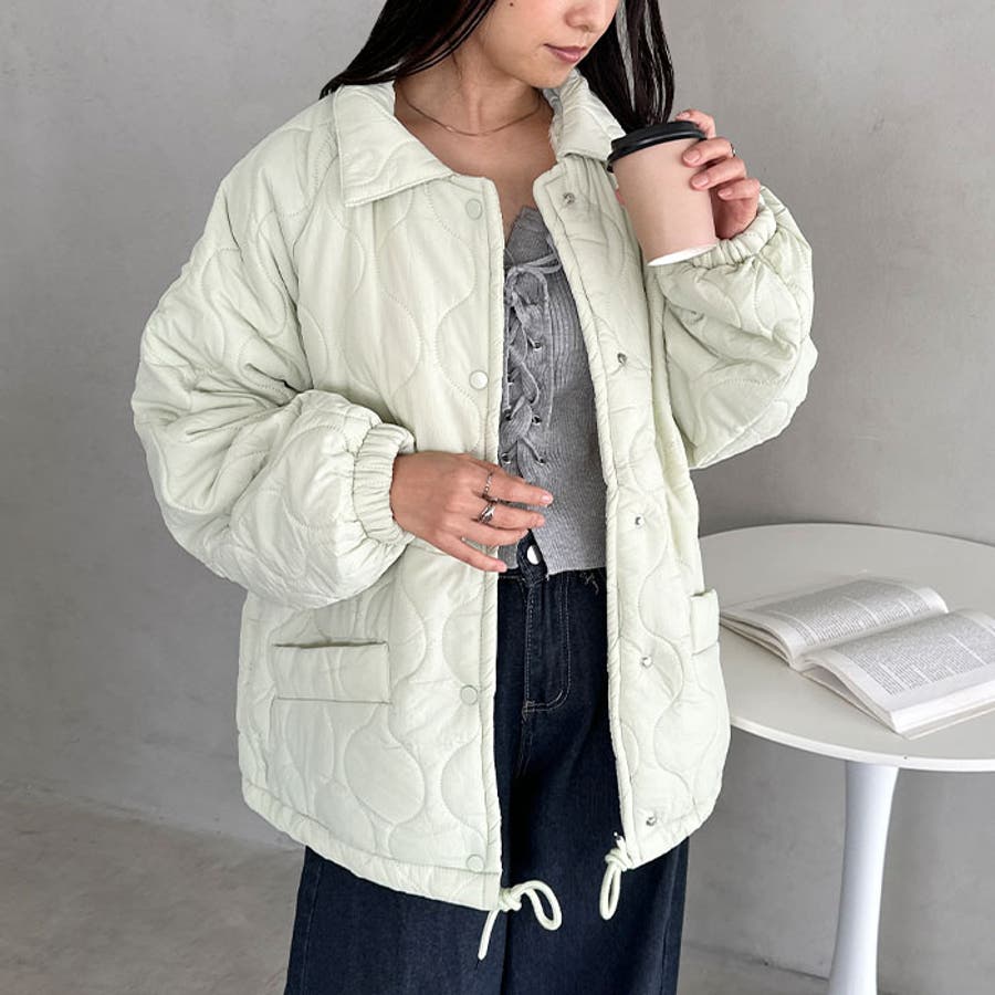 ビッグサイズで包み込んでくれるダボっと感が可愛いキルティングジャケット。