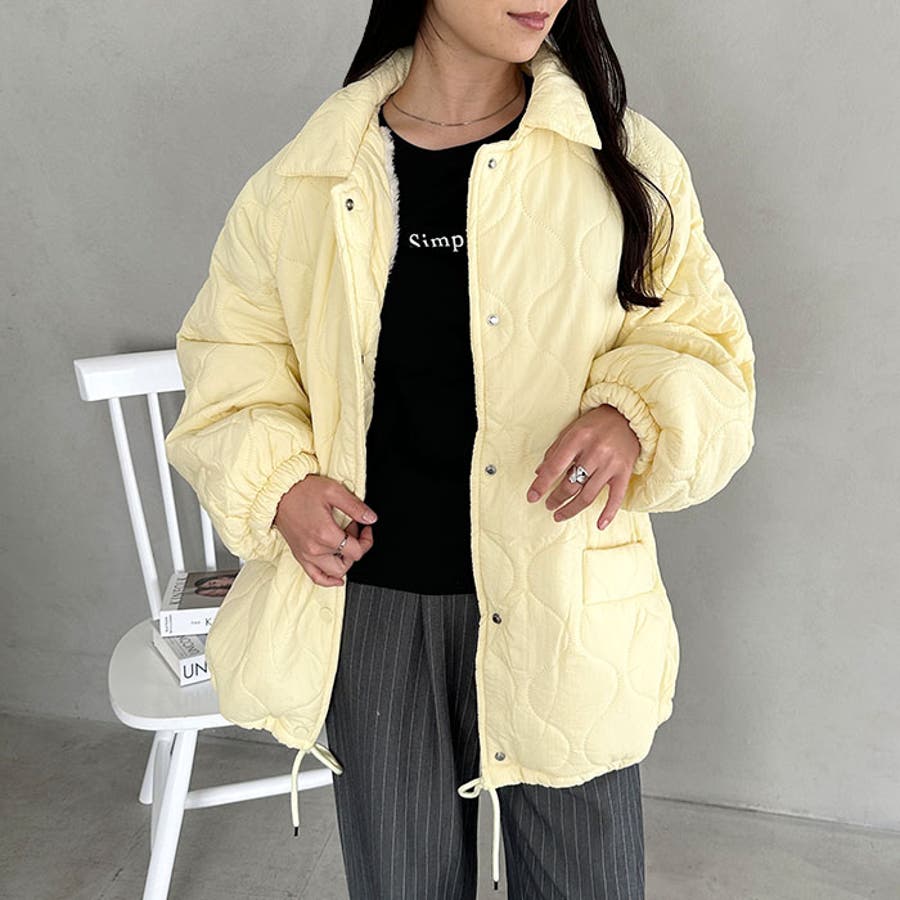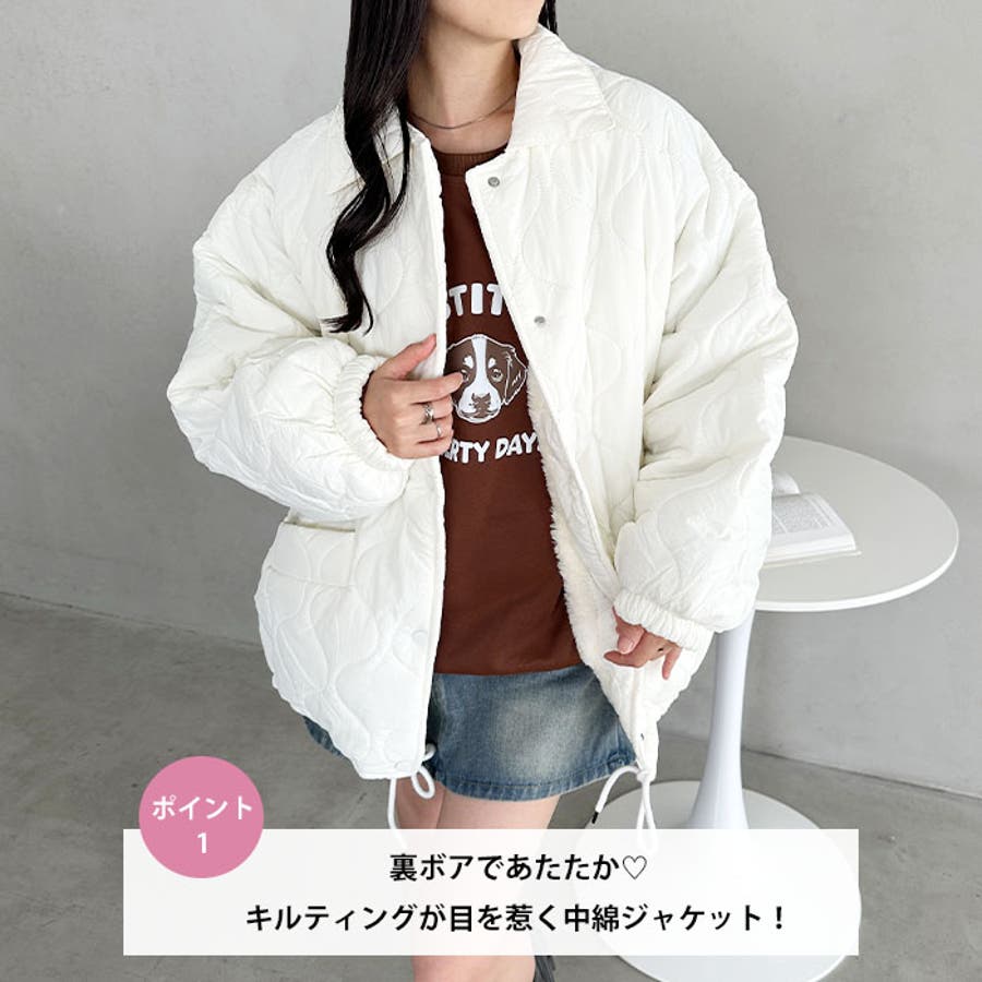 裏ボアオーバーサイズキルティングジャケット/中綿コート