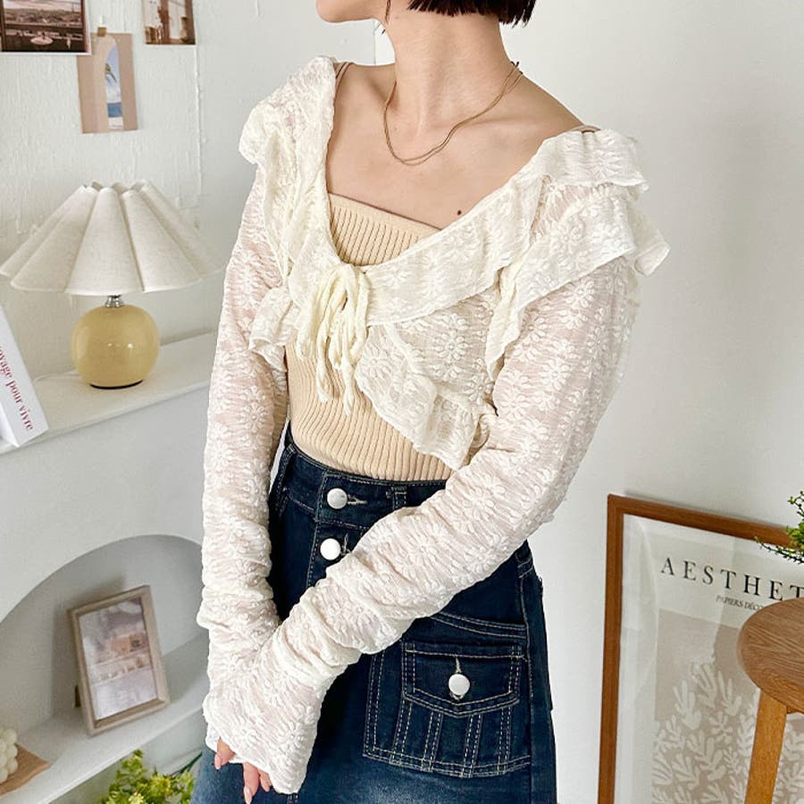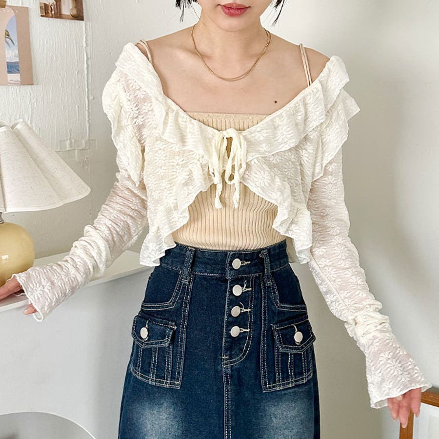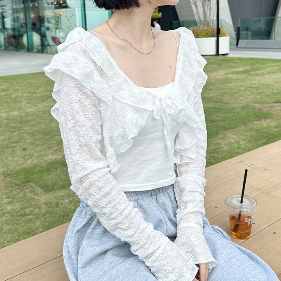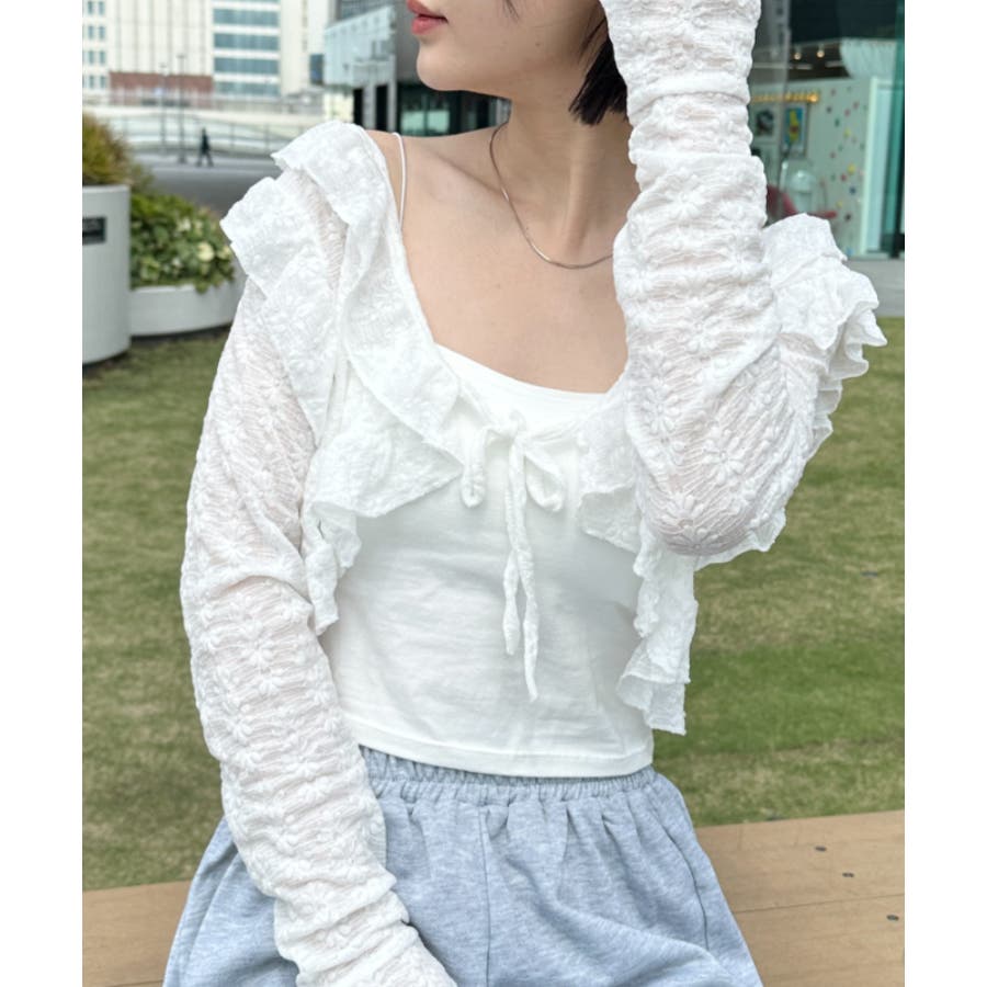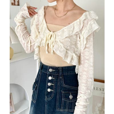 ラッフルフリルクロップド丈レースボレロ