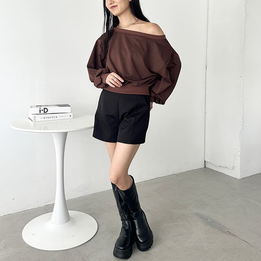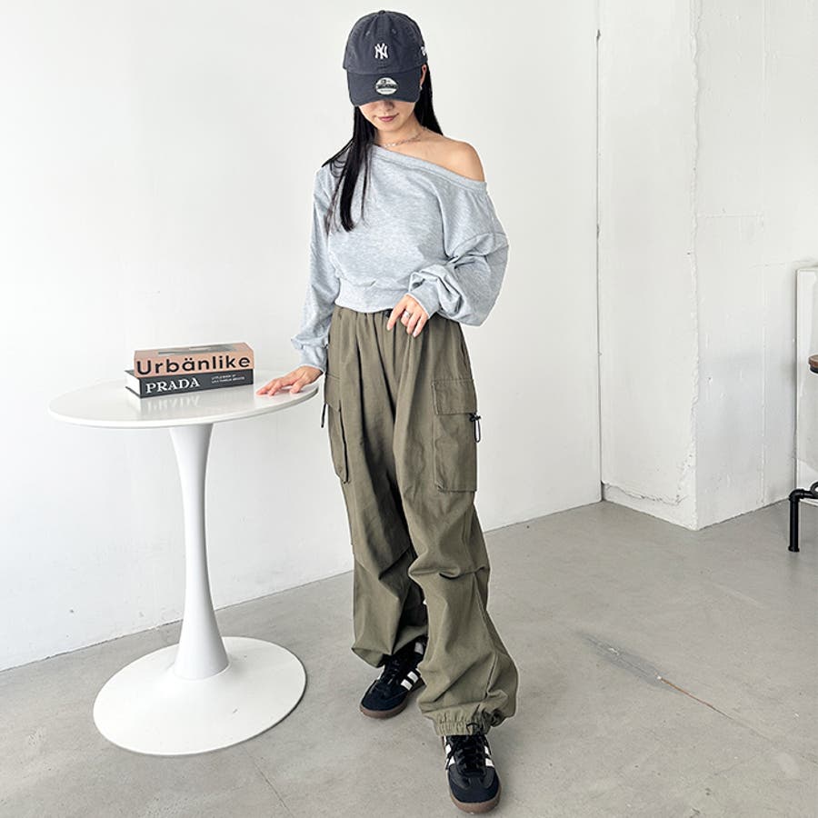ショート丈なのでハイウエストパンツと合わせるコーデもおすすめです。