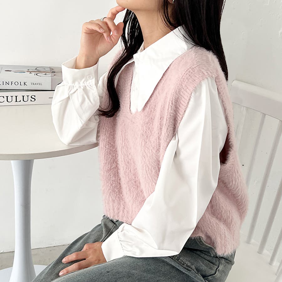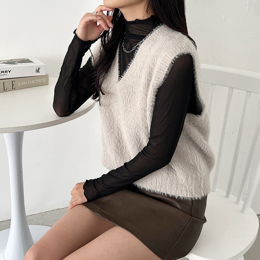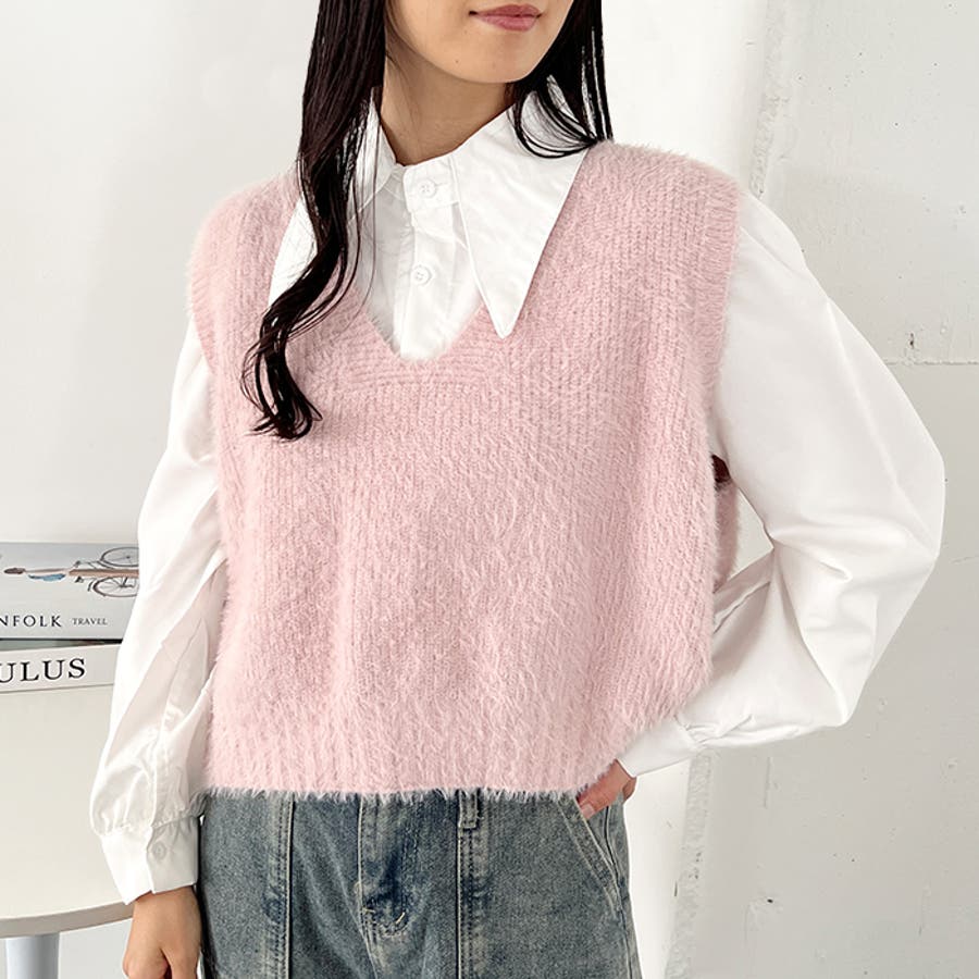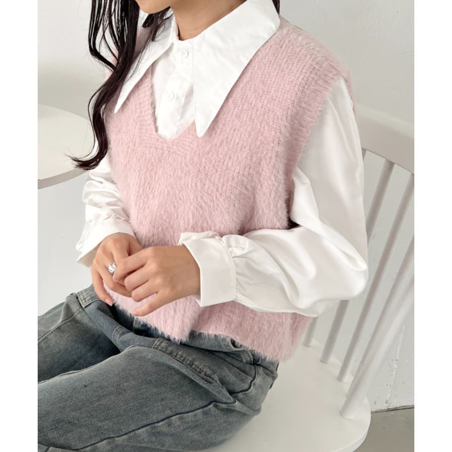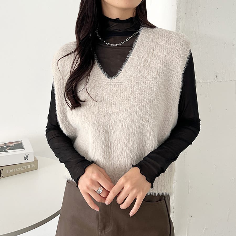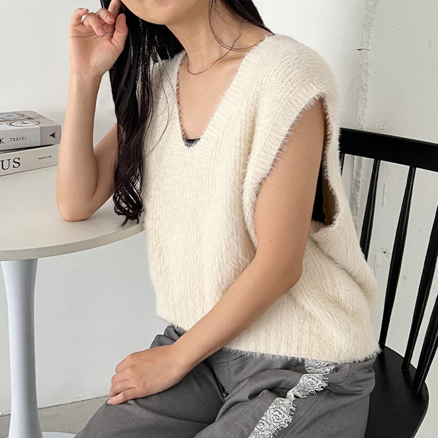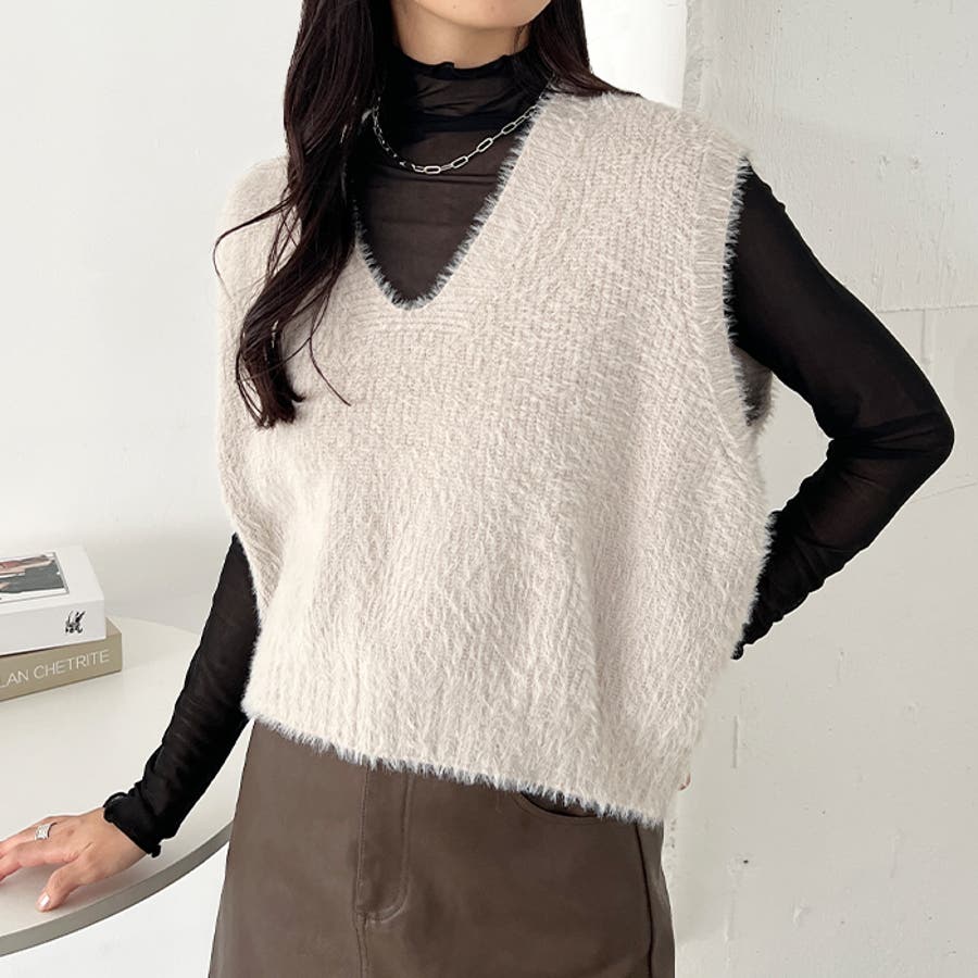 シャギーVネックニットベスト