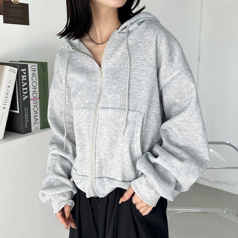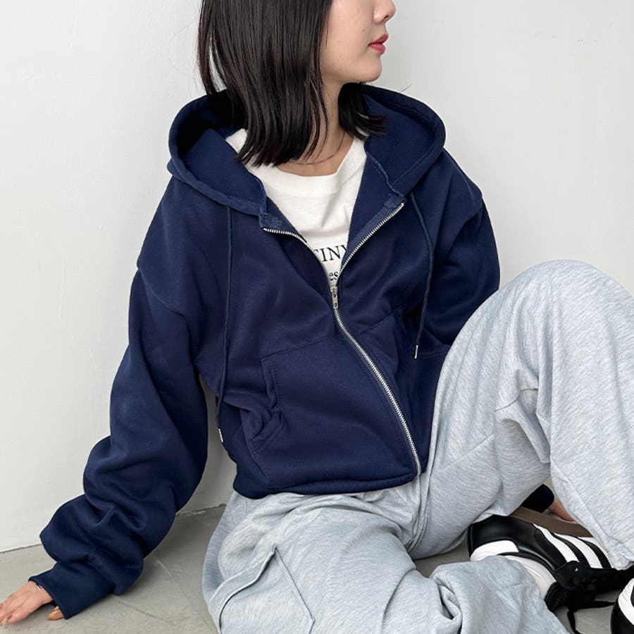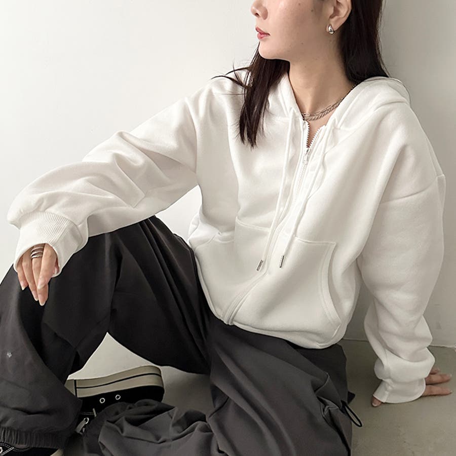 一枚で着るのも◎ジップを開けてレイヤードをチラ見せするのもおすすめ!