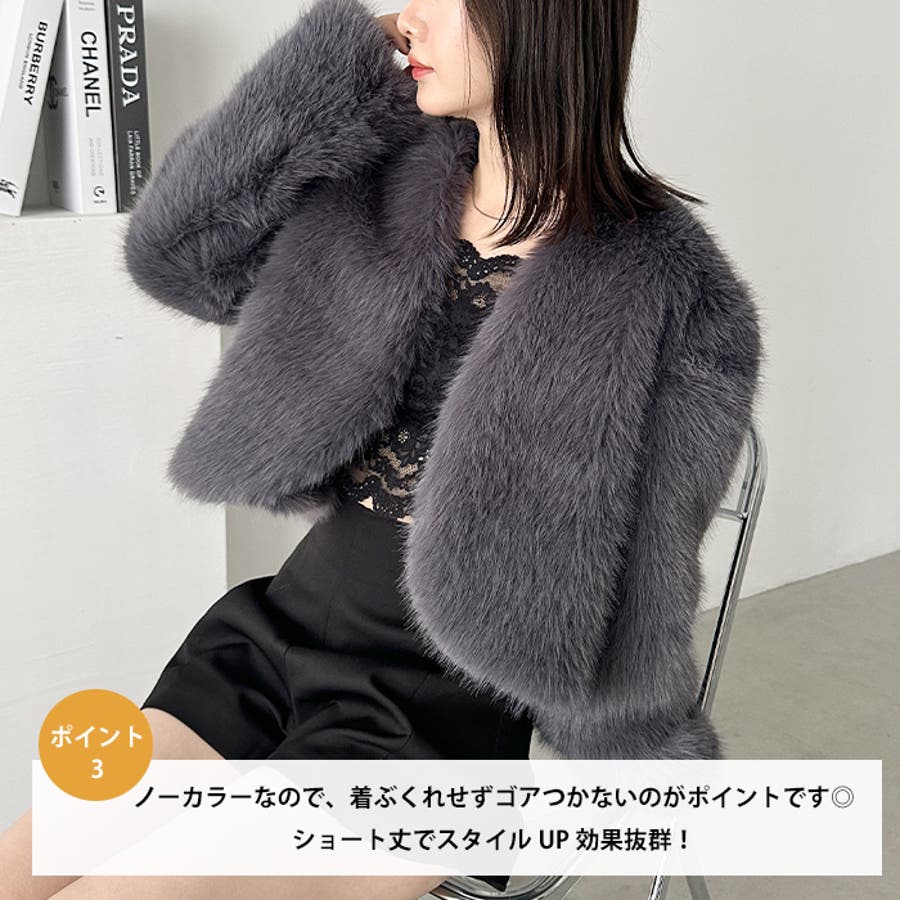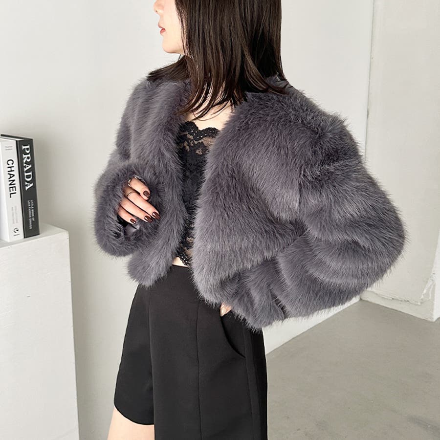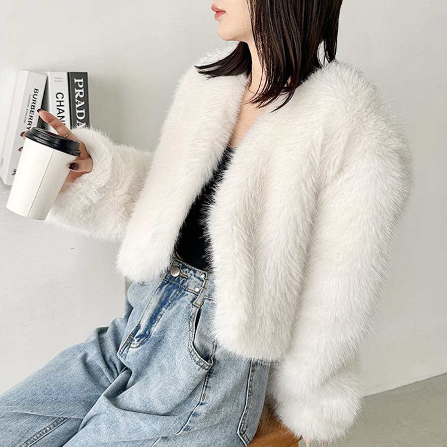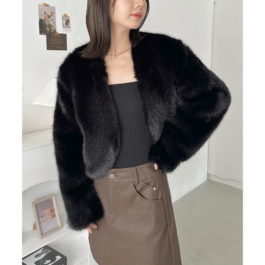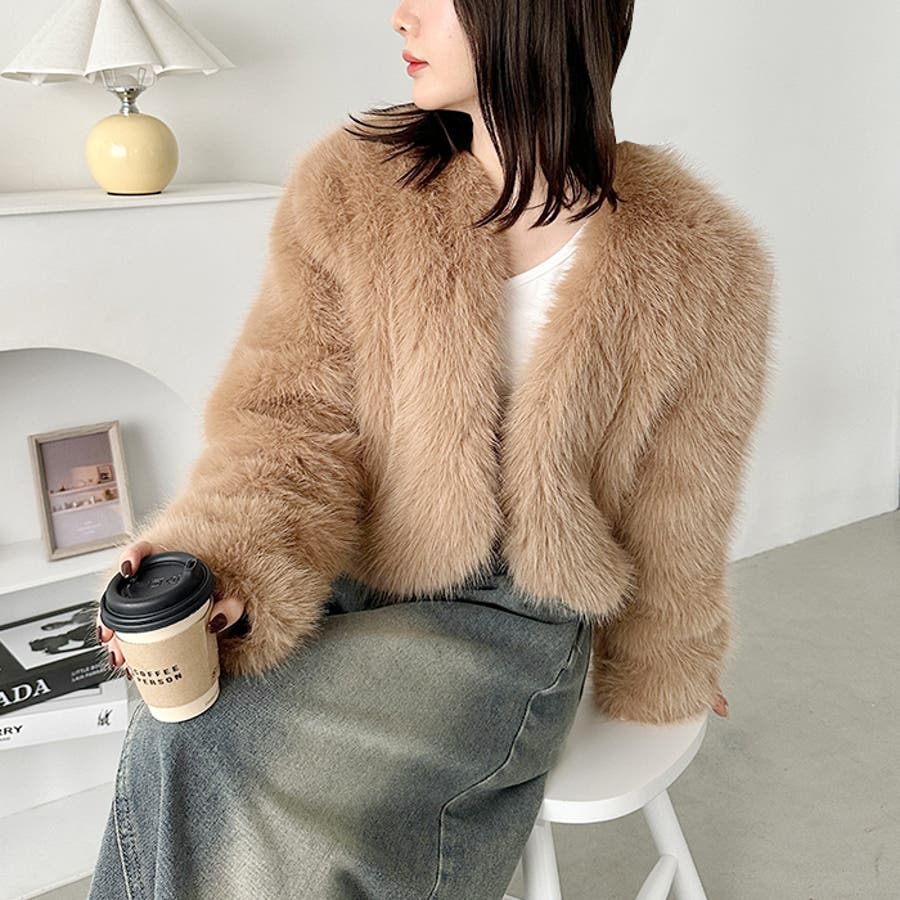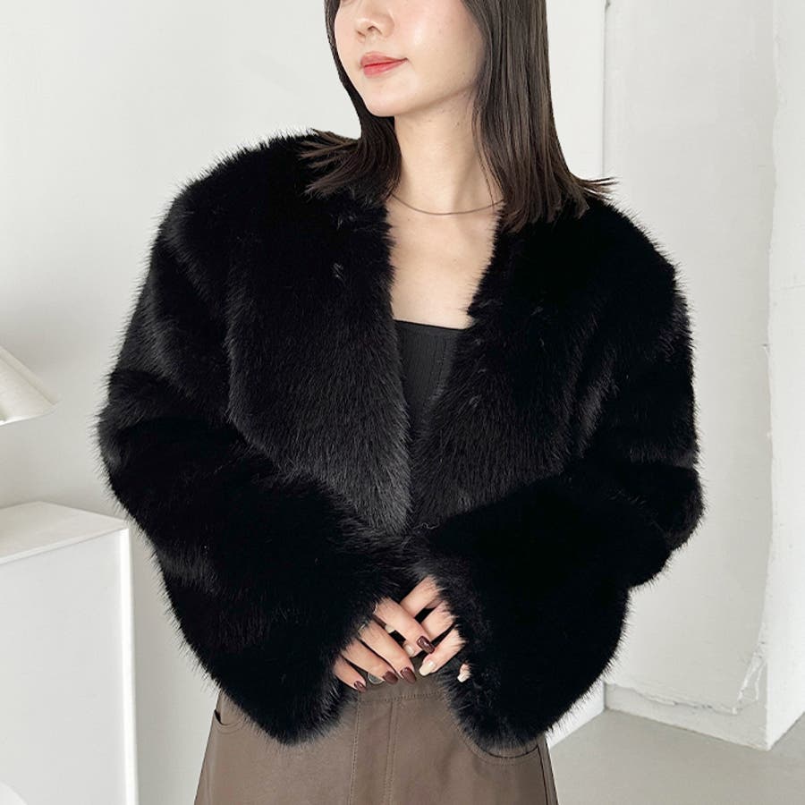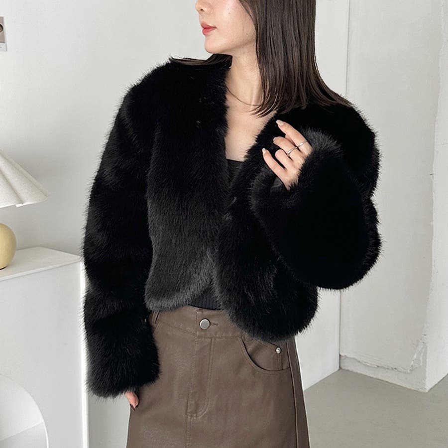 ノーカラーショートフェイクファーコート