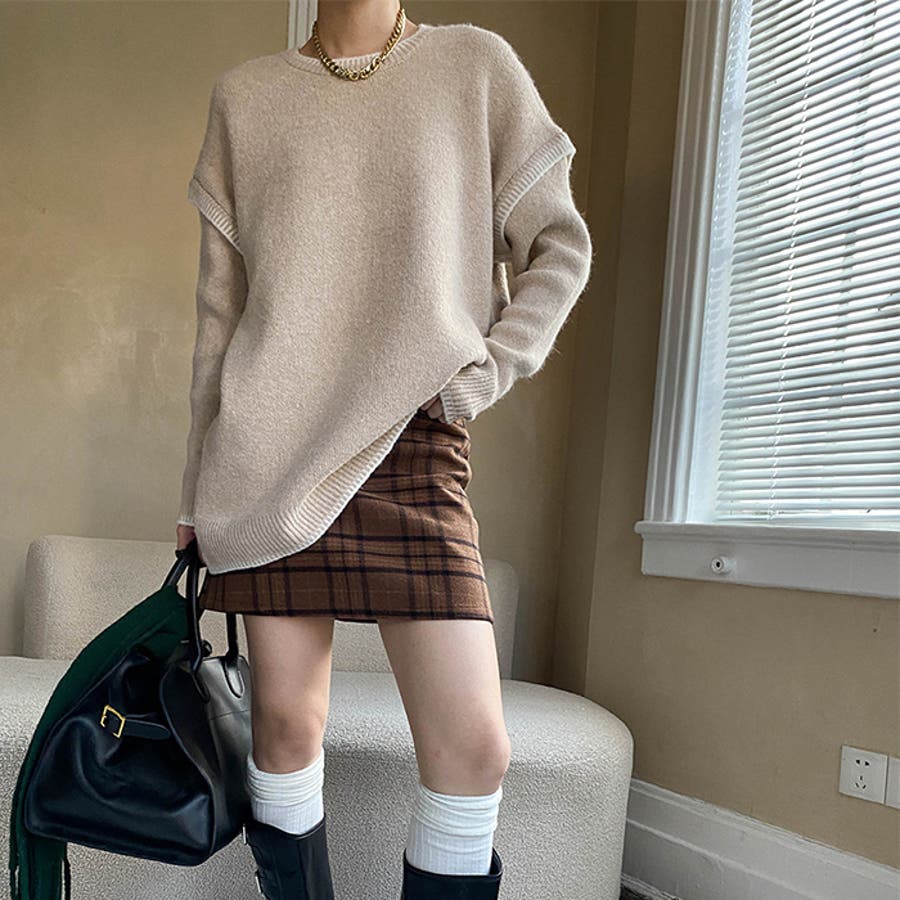オーバーサイズのニットと合わせて裾からチラ見せさせたり
