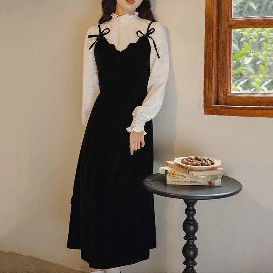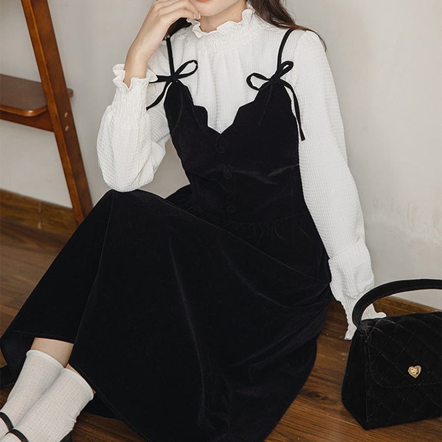 ベロアリボンミニキャミワンピース