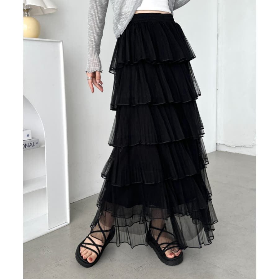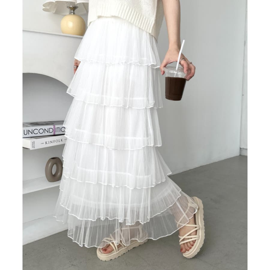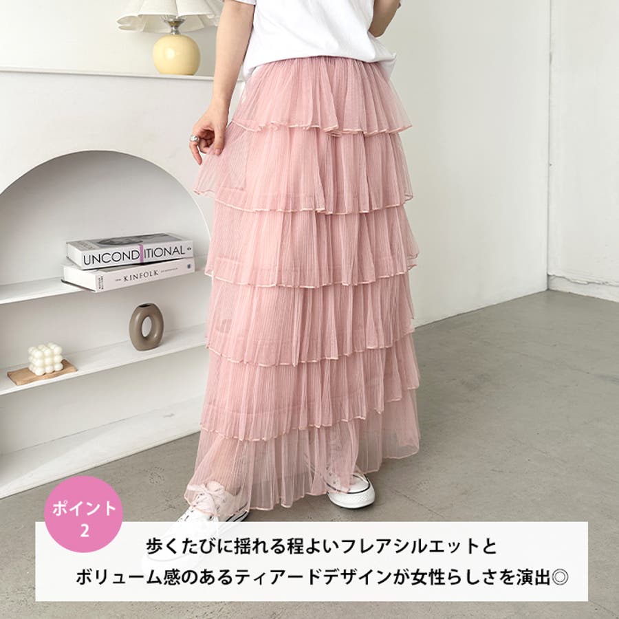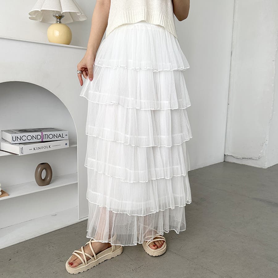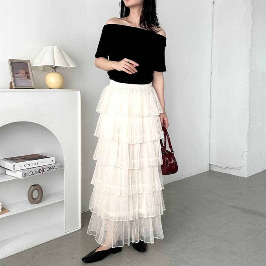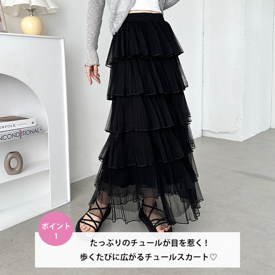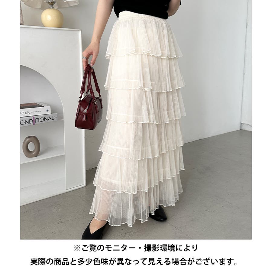 裾にかけて広がるティアードスカートは、インスタイル・アウトスタイルどちらも相性抜群◎合わせるトップス次第でオールシーズン活躍します♪