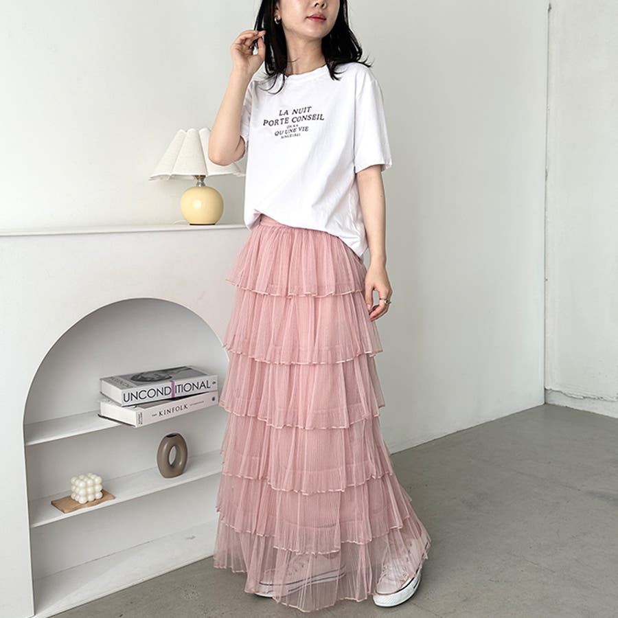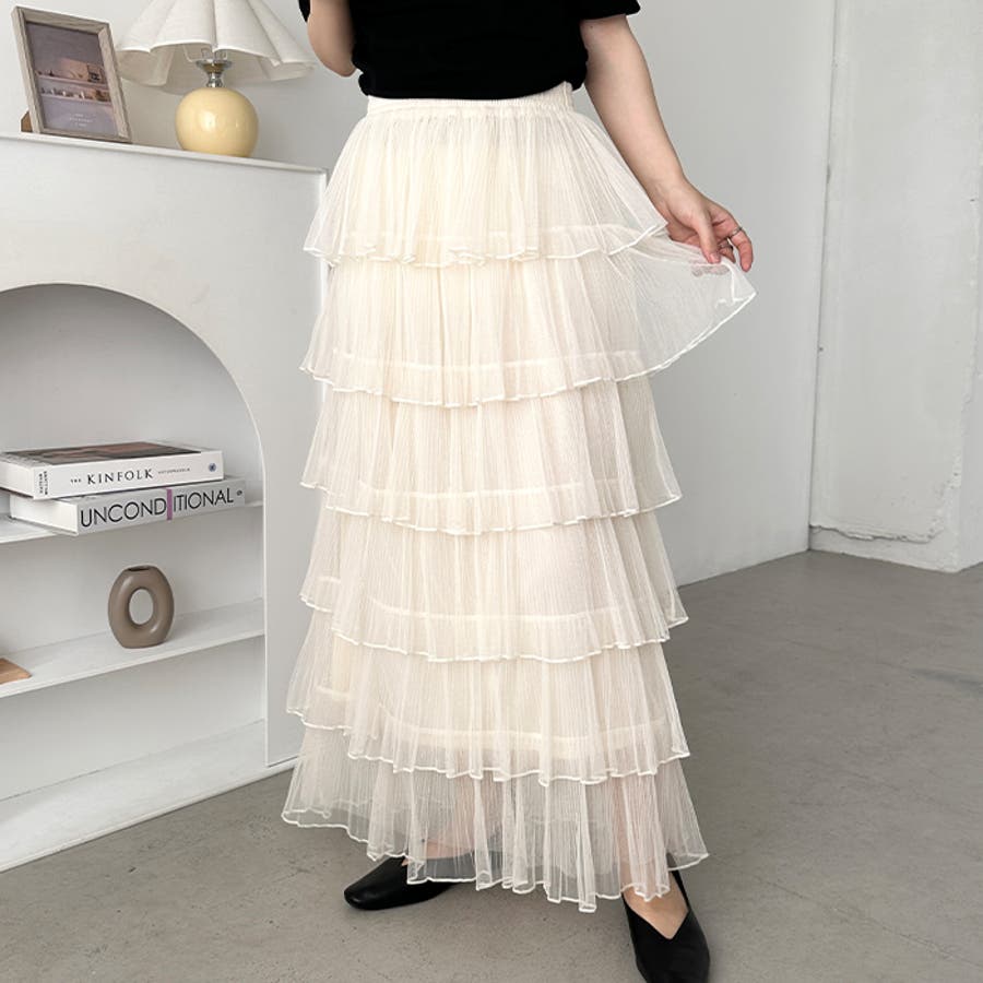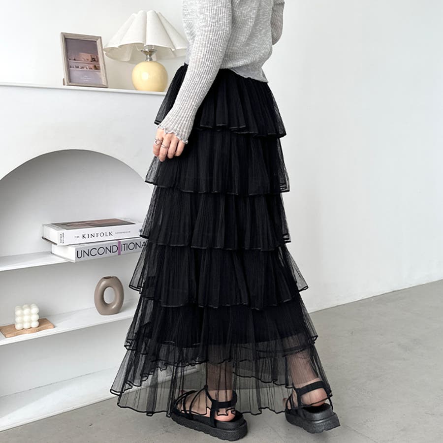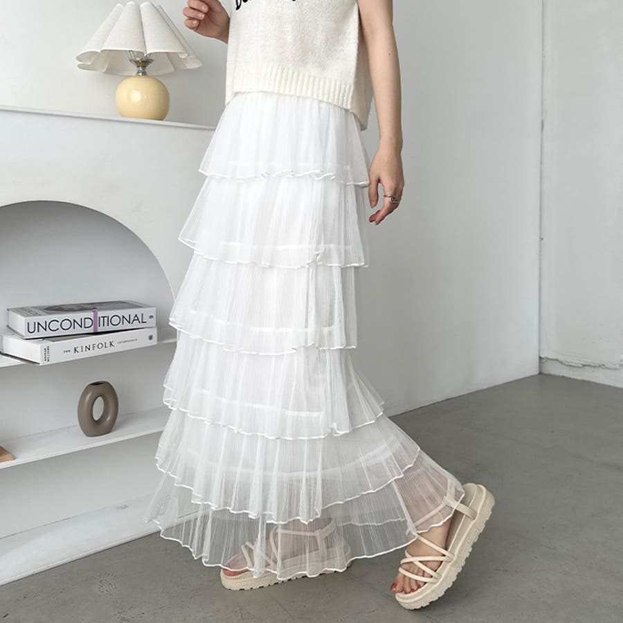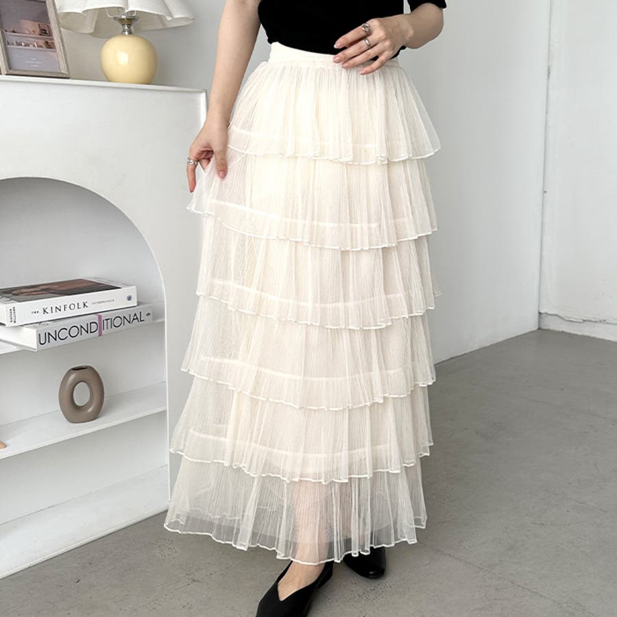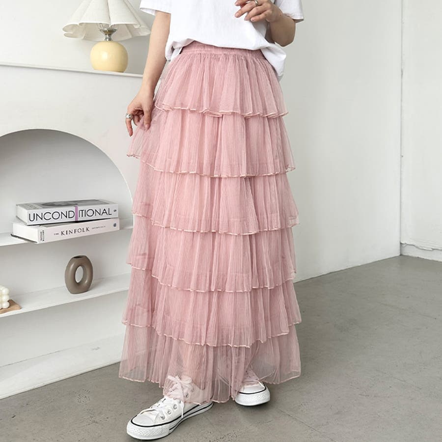 裾にかけて広がるティアードスカートは、インスタイル・アウトスタイルどちらも相性抜群◎合わせるトップス次第でオールシーズン活躍します♪