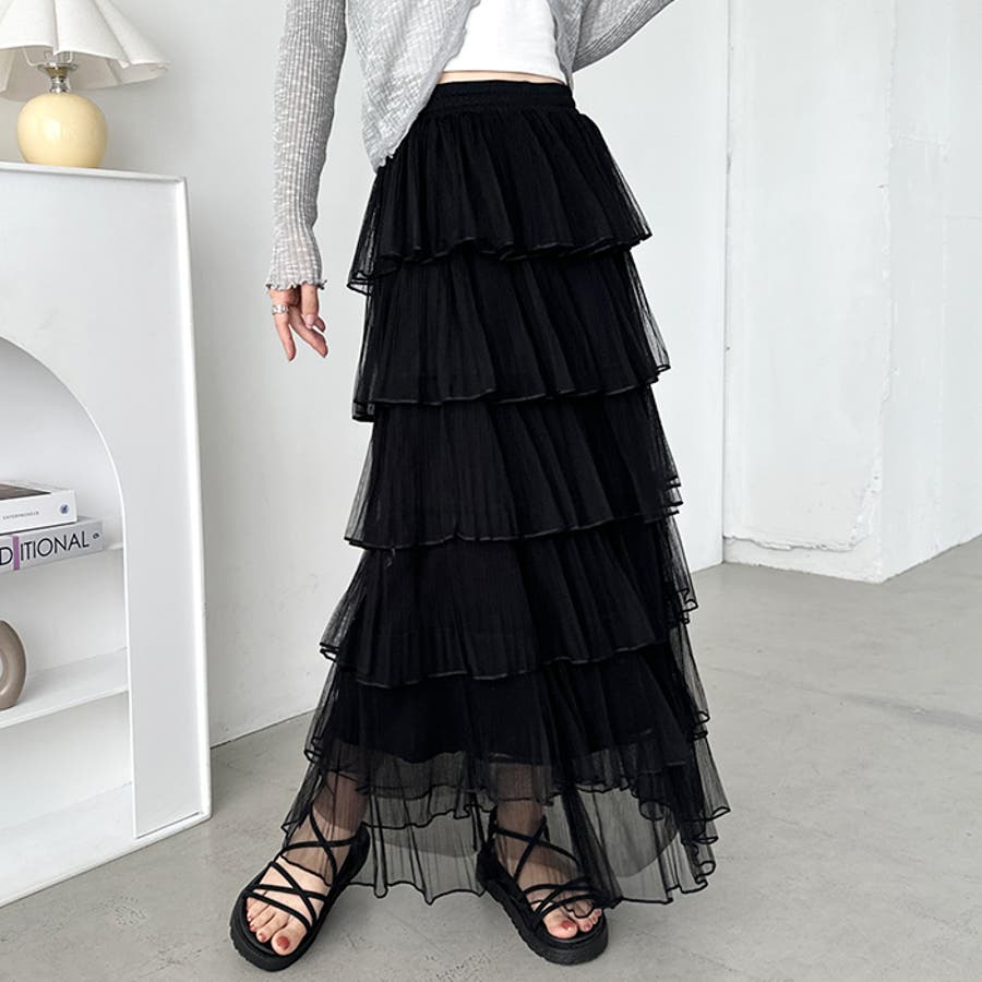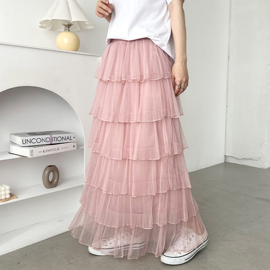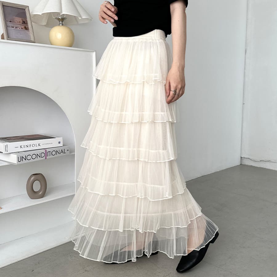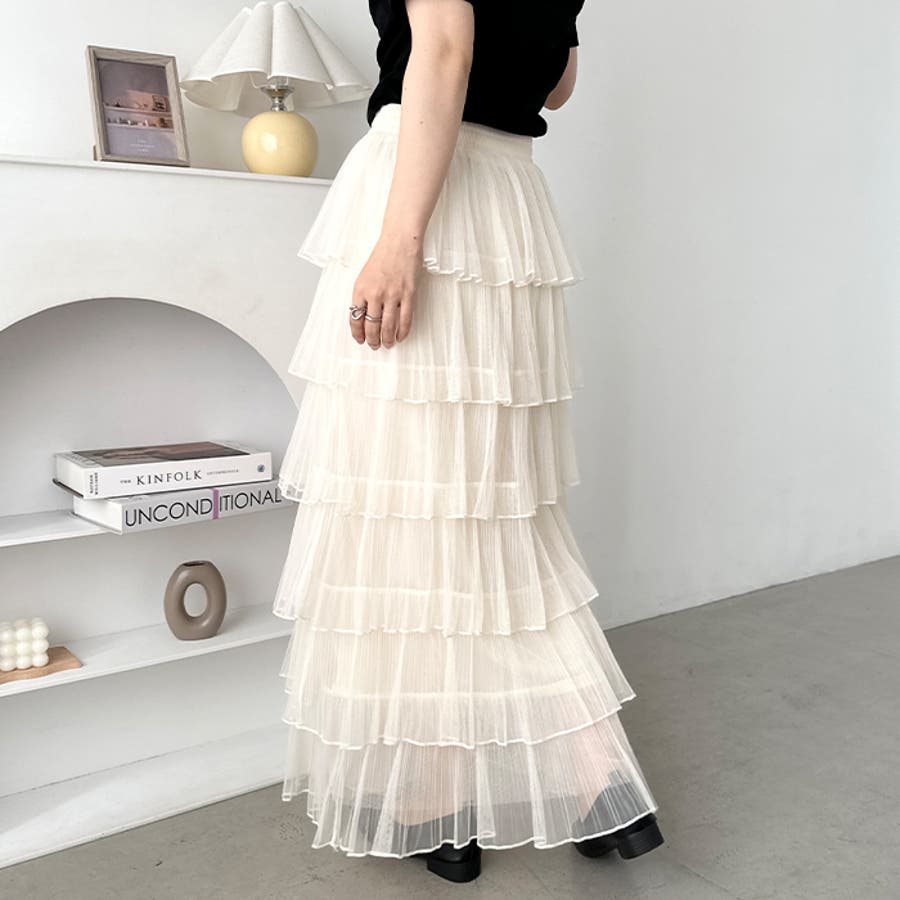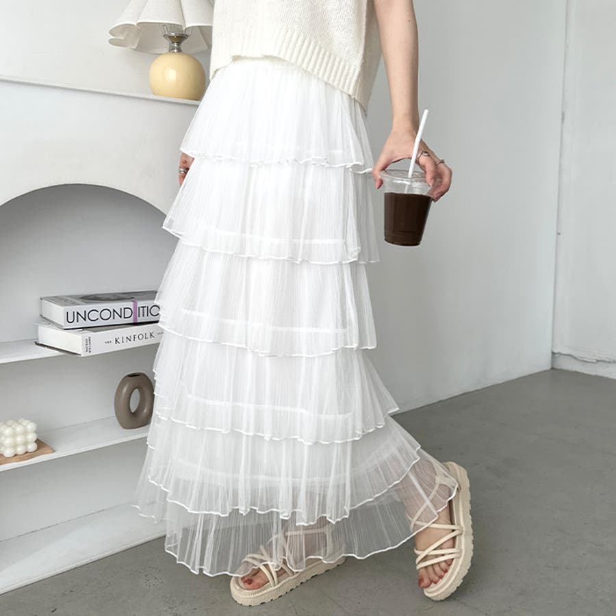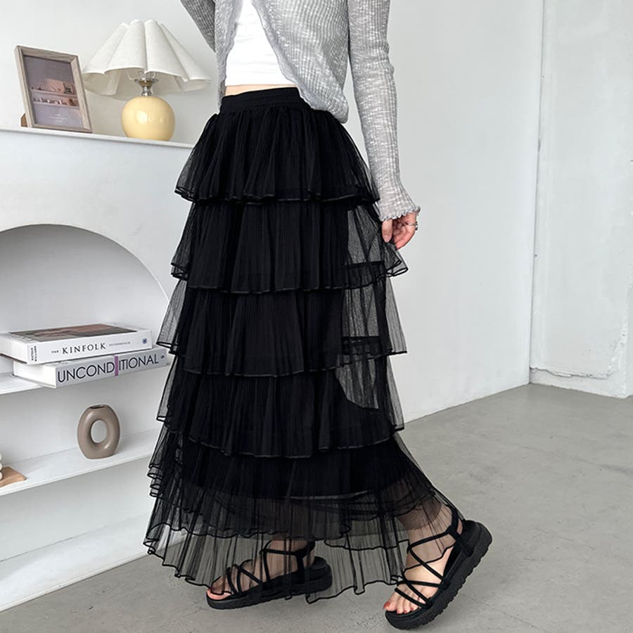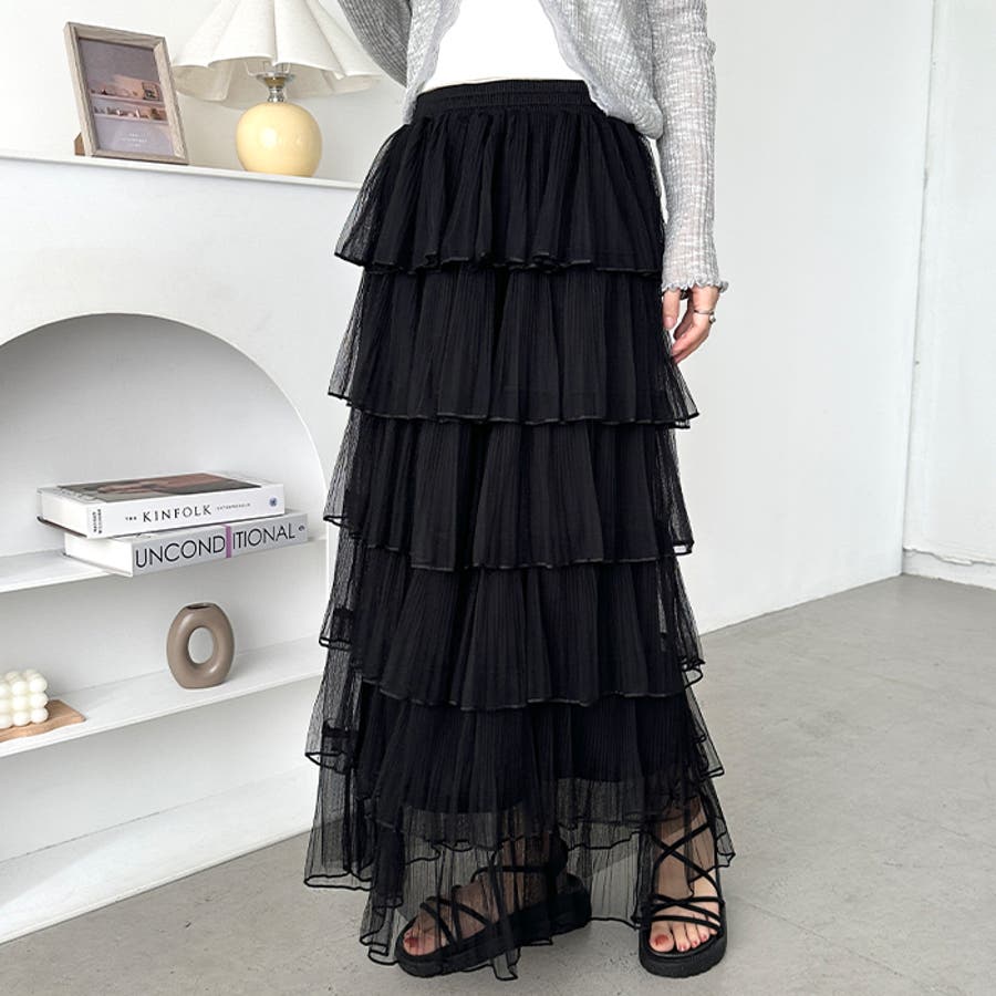 裾にかけて広がるティアードスカートは、インスタイル・アウトスタイルどちらも相性抜群◎合わせるトップス次第でオールシーズン活躍します♪