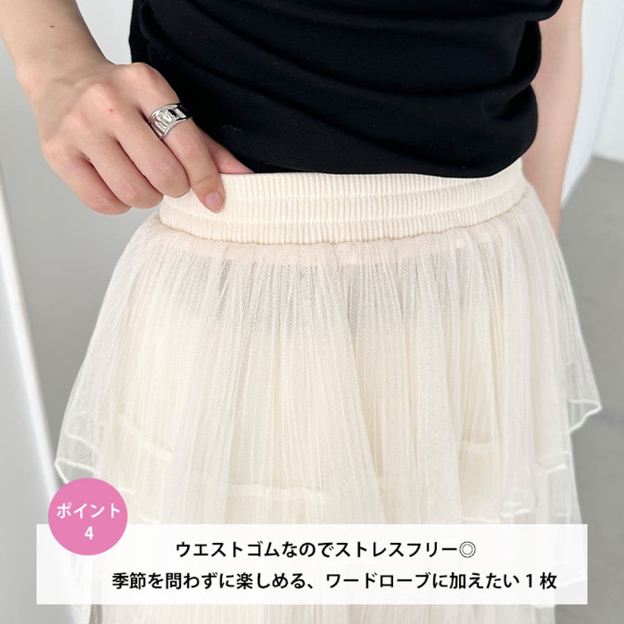 透け感のあるチュールが柔らかいソフトな風合いで履き心地がよく、