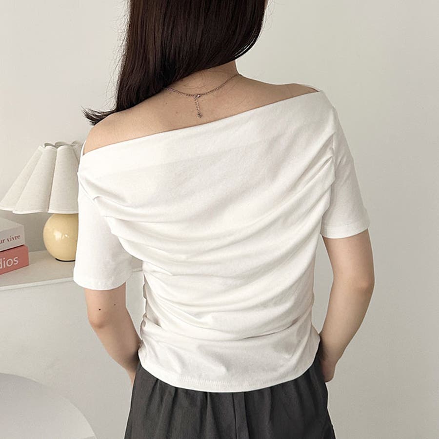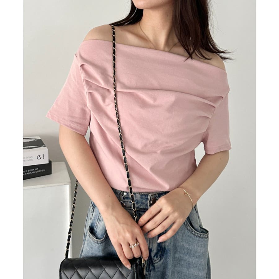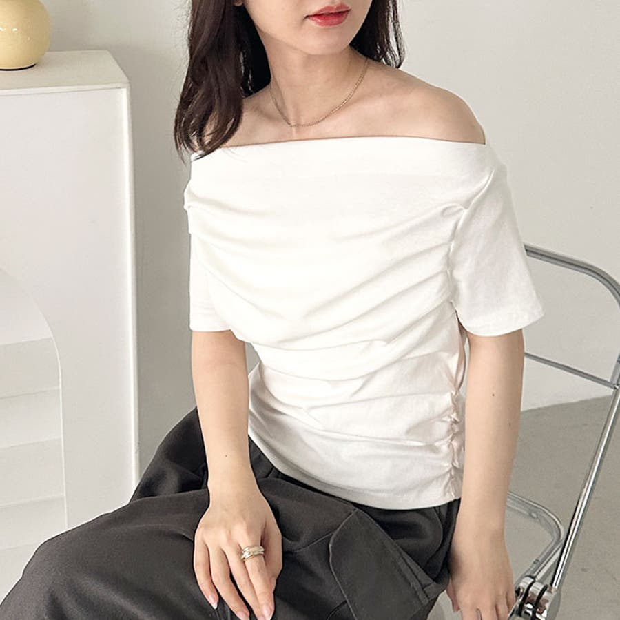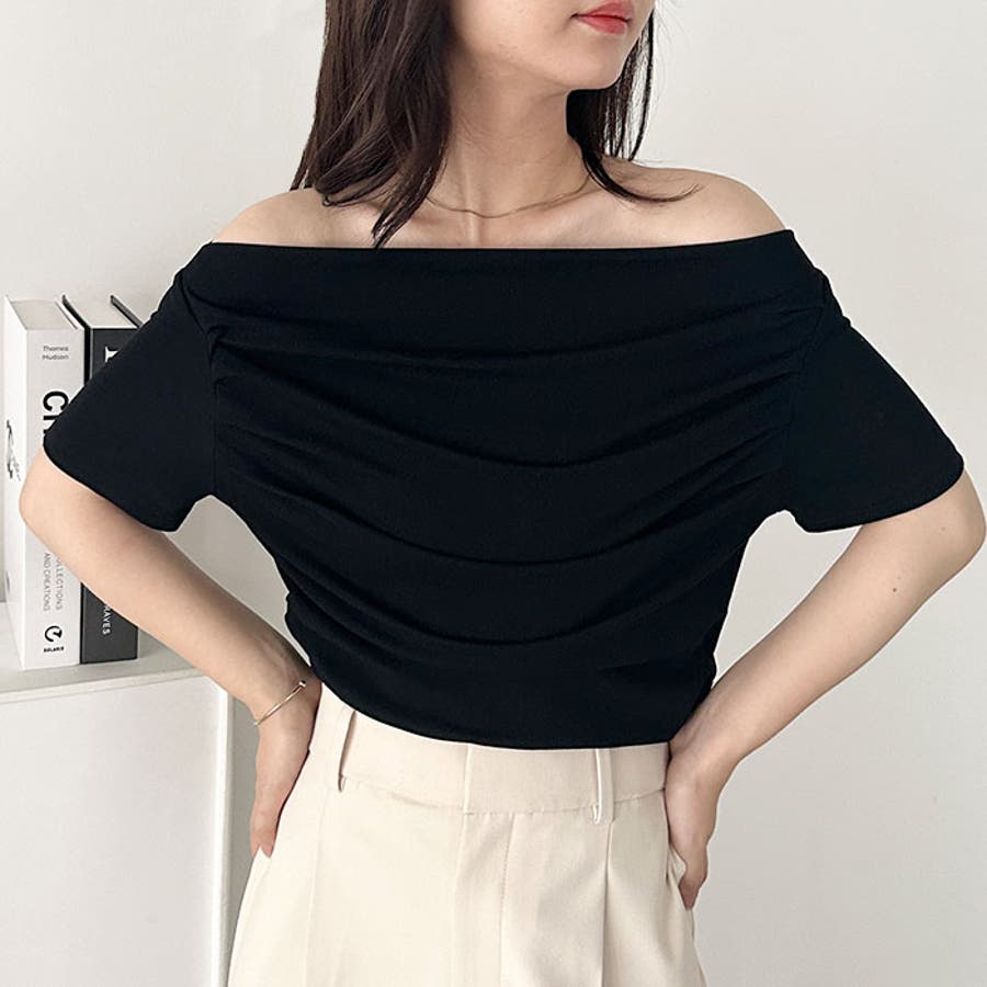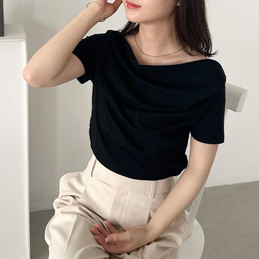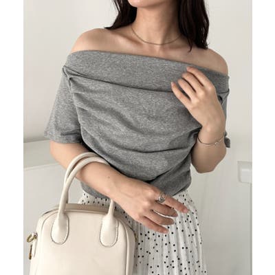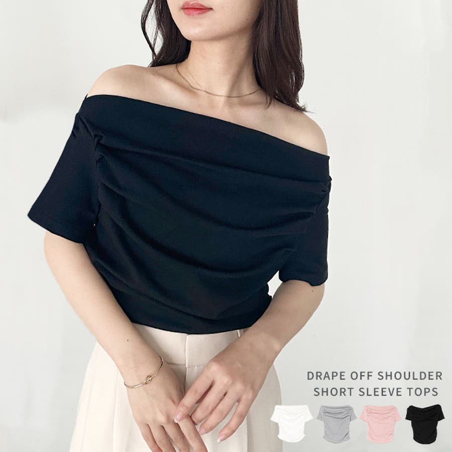 ドレープオフショルダー半袖トップス