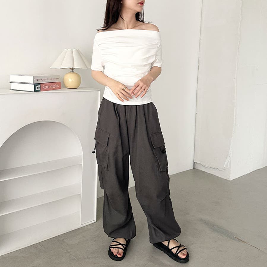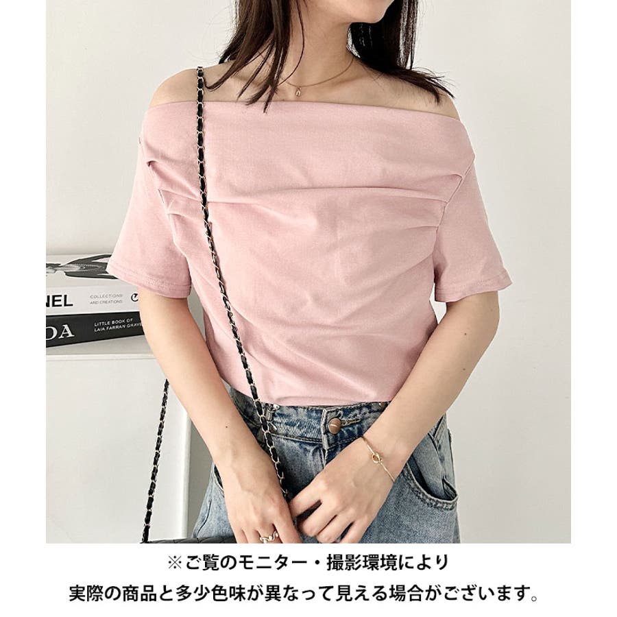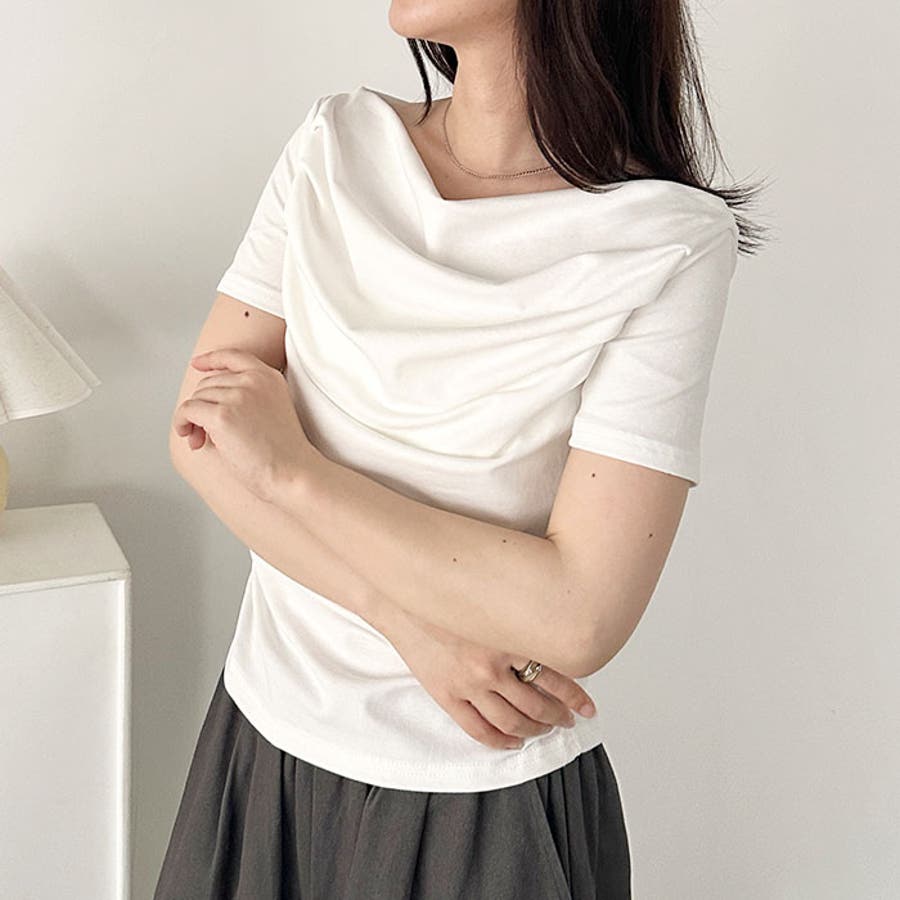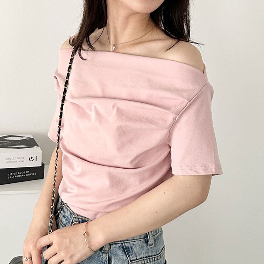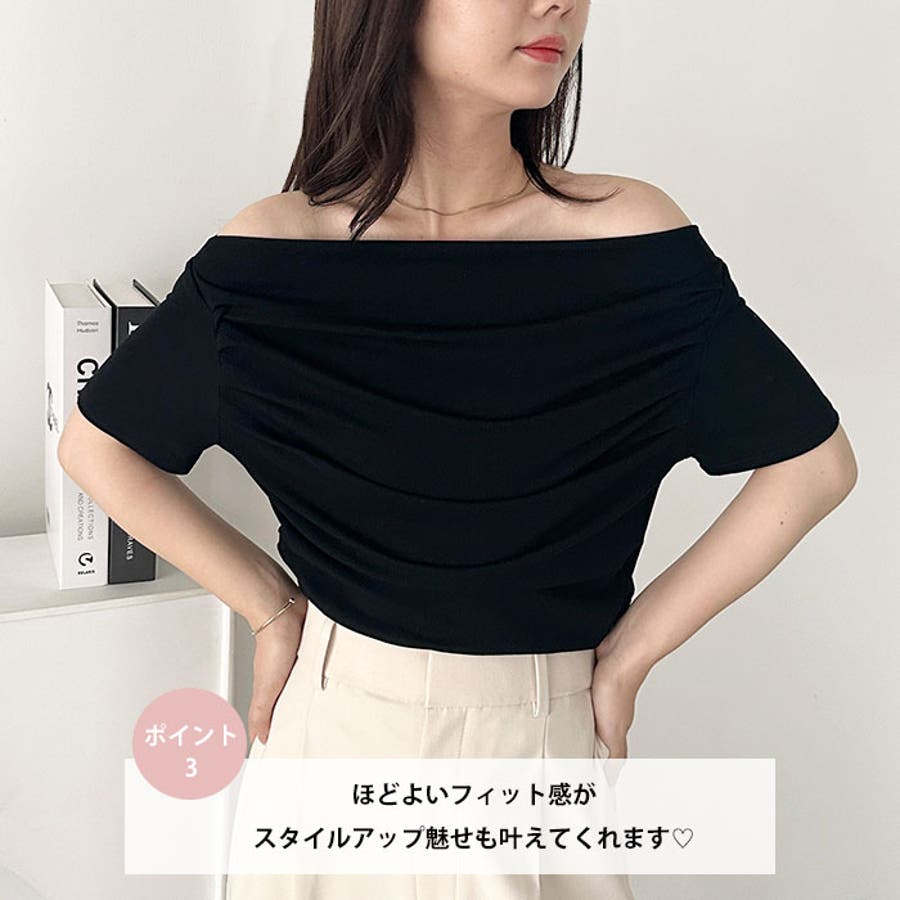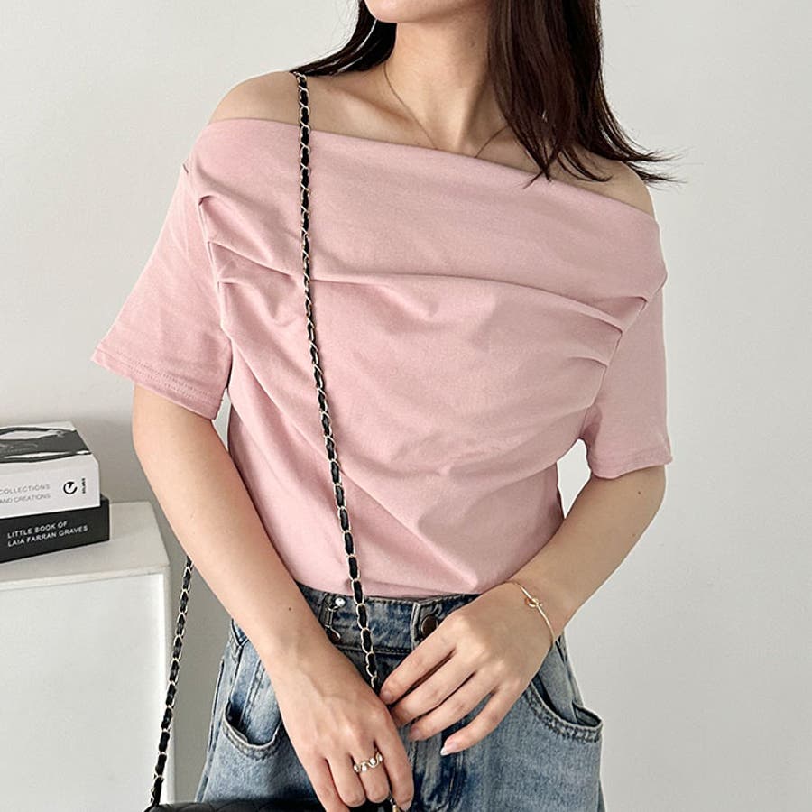 ドレープオフショルダー半袖トップス